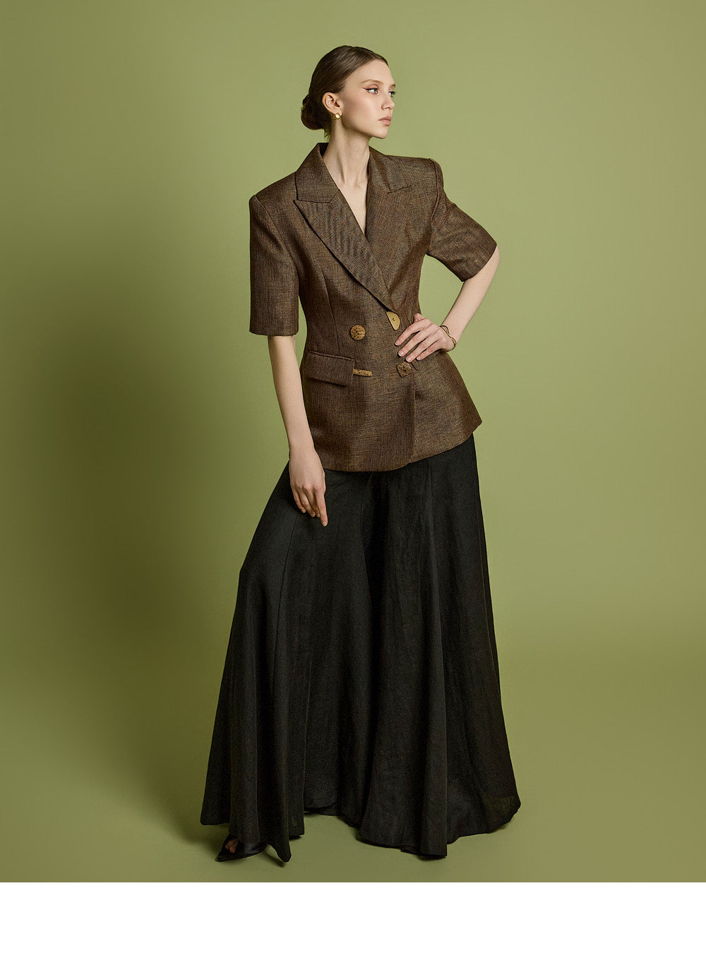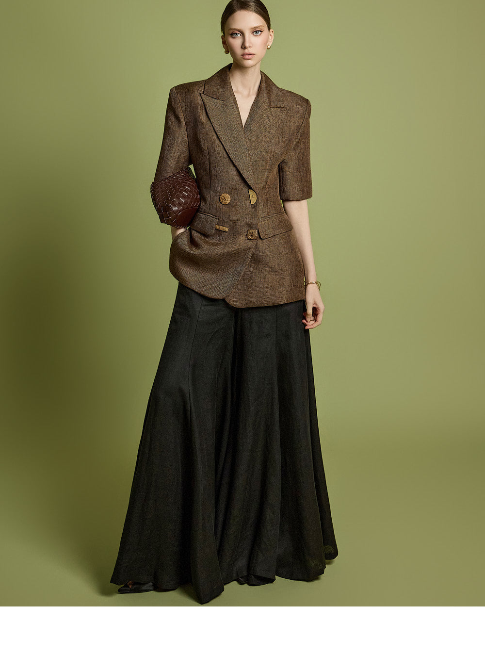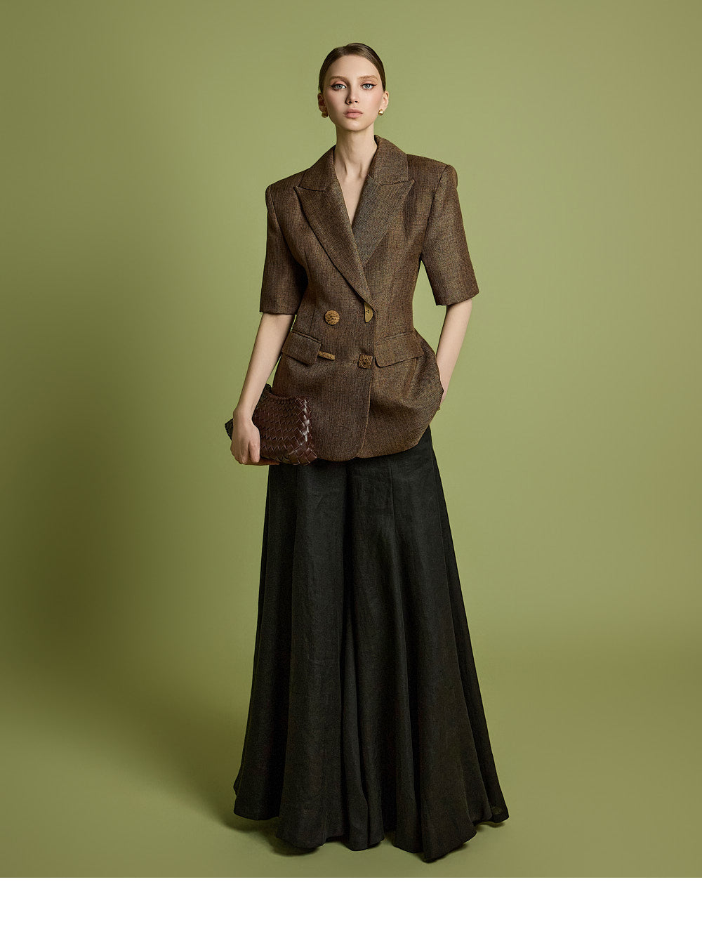 スリムなウエストラインが体型をさりげなく引き立て、洗練された仕上がりを実現します。