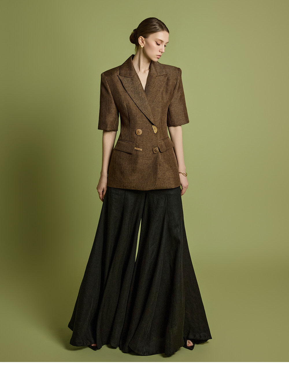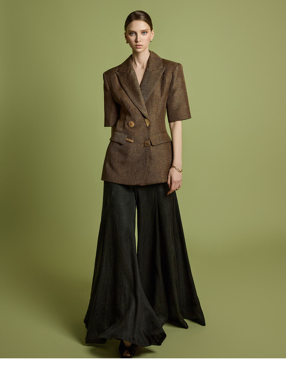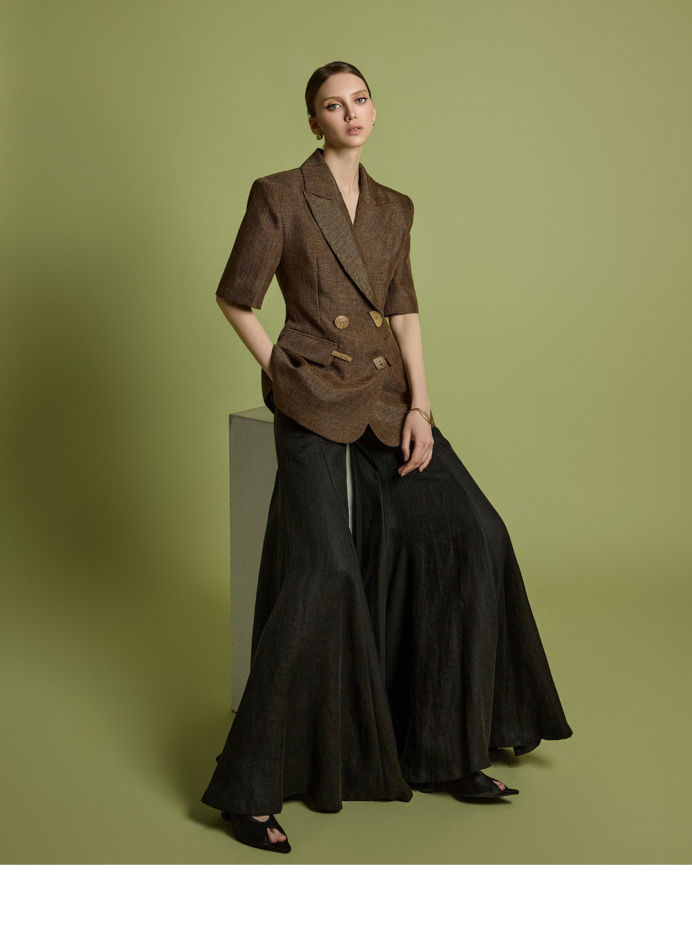 スリムなウエストラインが体型をさりげなく引き立て、洗練された仕上がりを実現します。