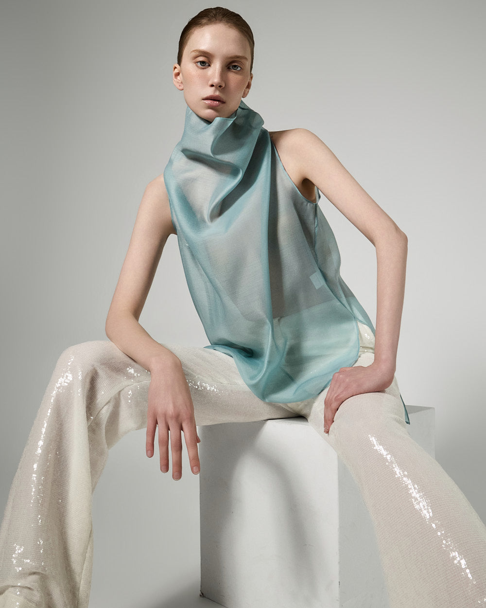 スパンコール素材を使用しているのでシックなスタイリングが楽しめます。