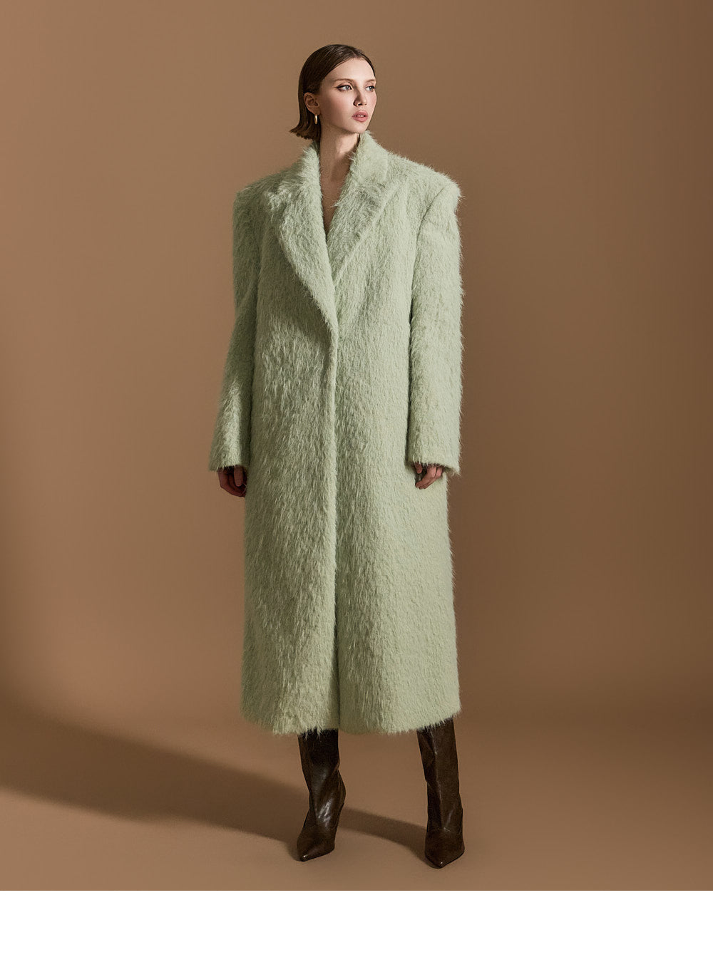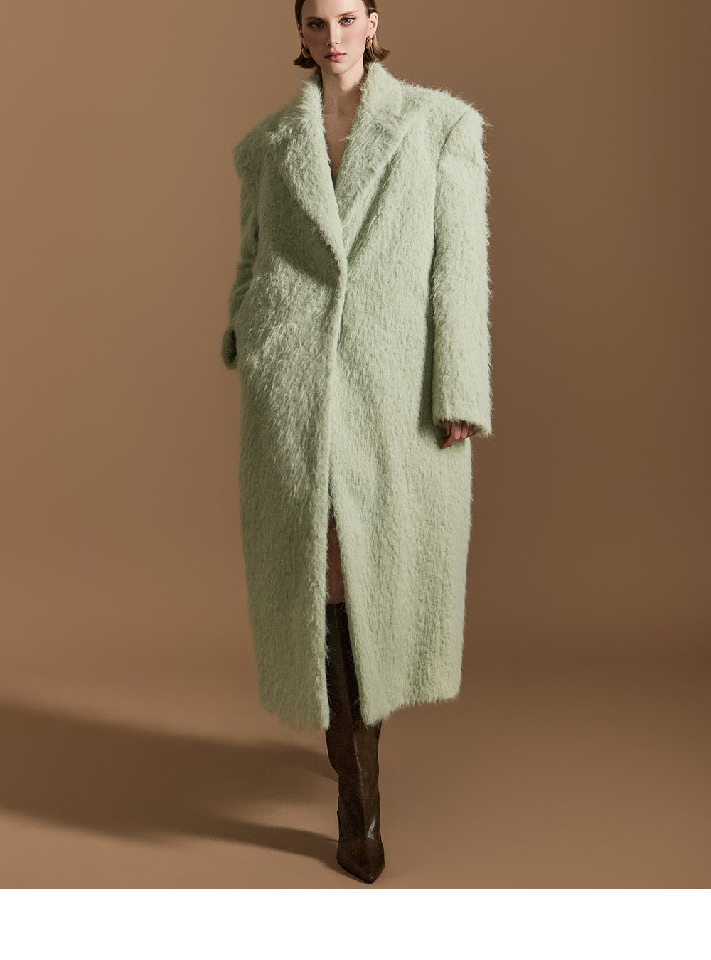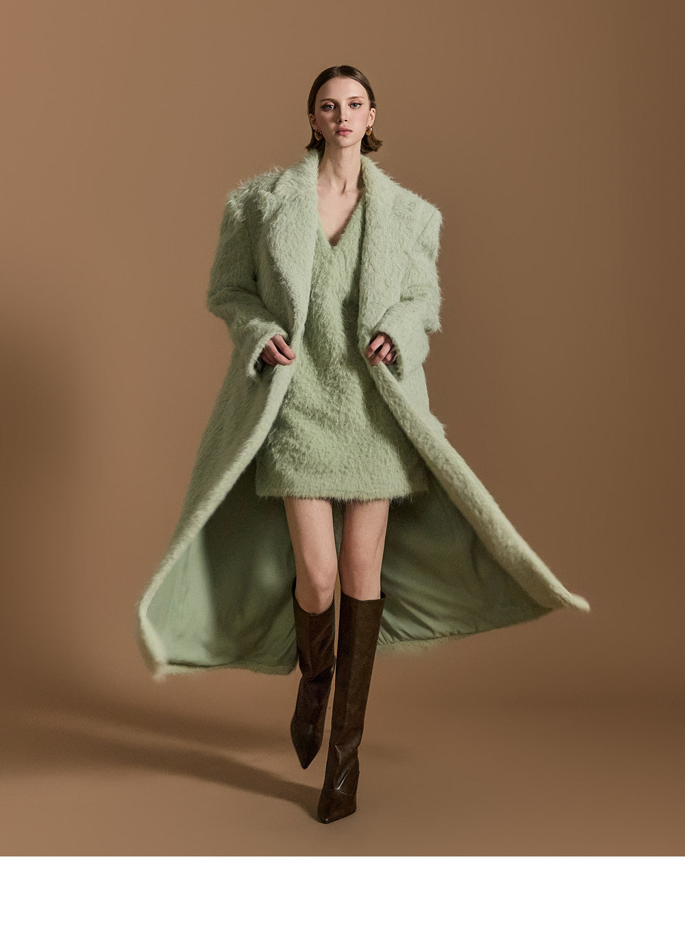 モデル身長174cm、MINTのONE-SIZEコートを着用しております。