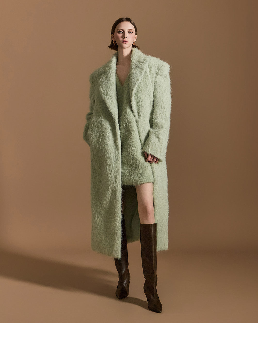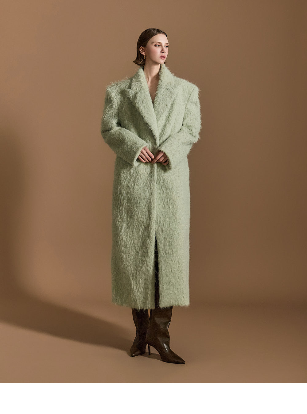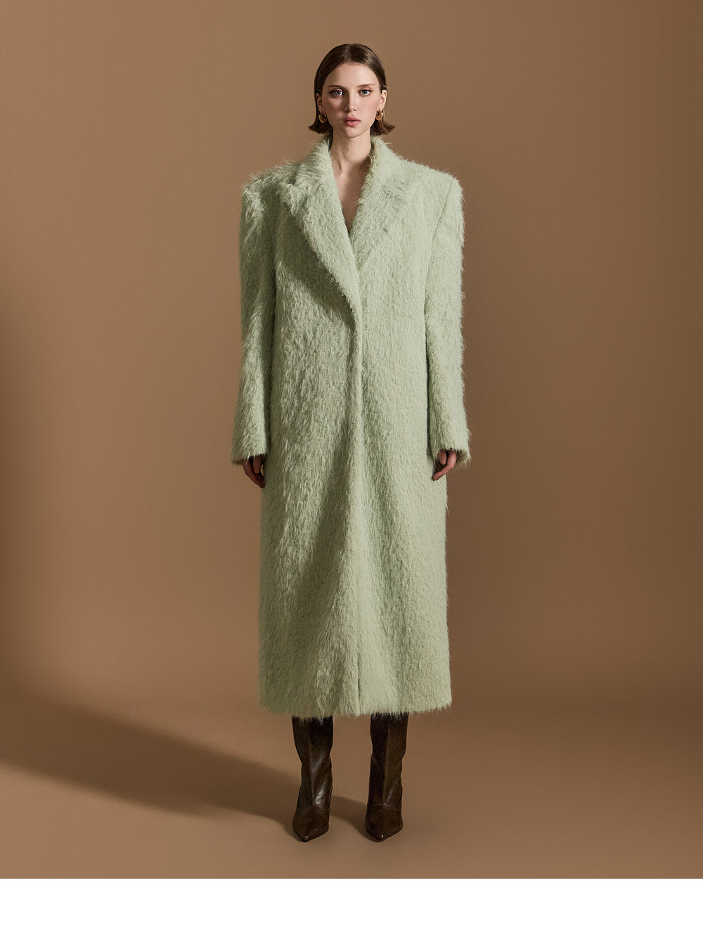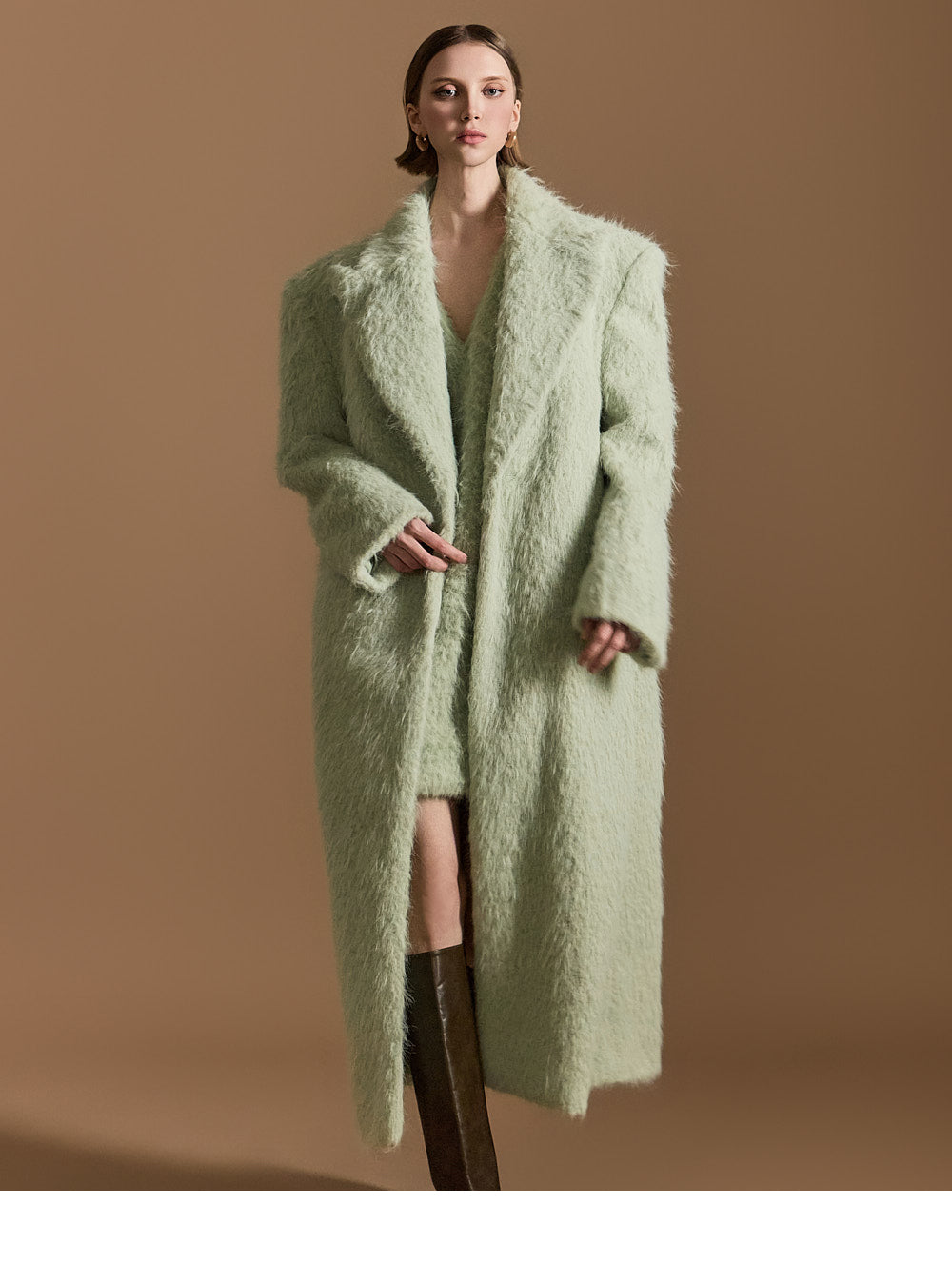 モデル身長174cm、MINTのONE-SIZEコートを着用しております。