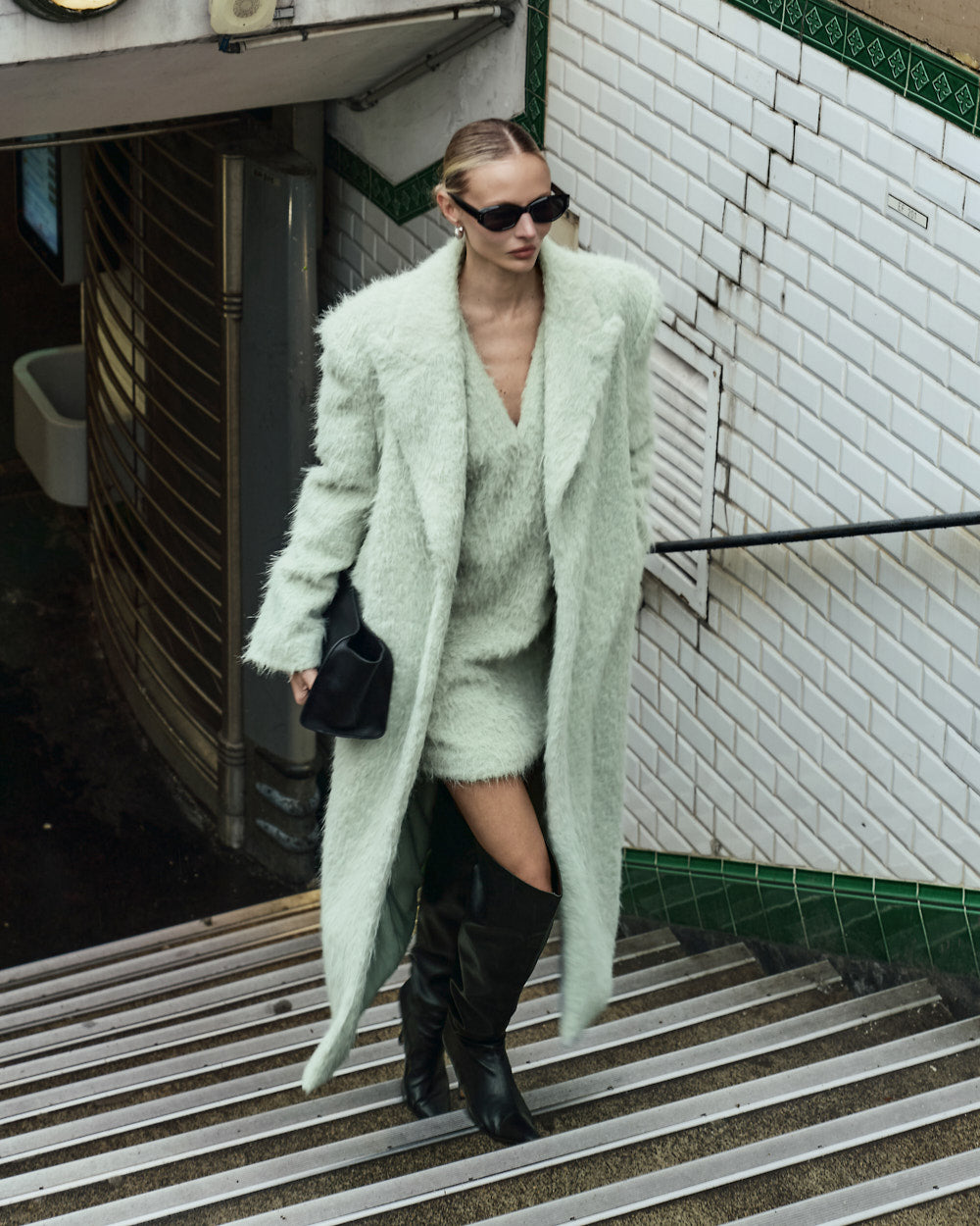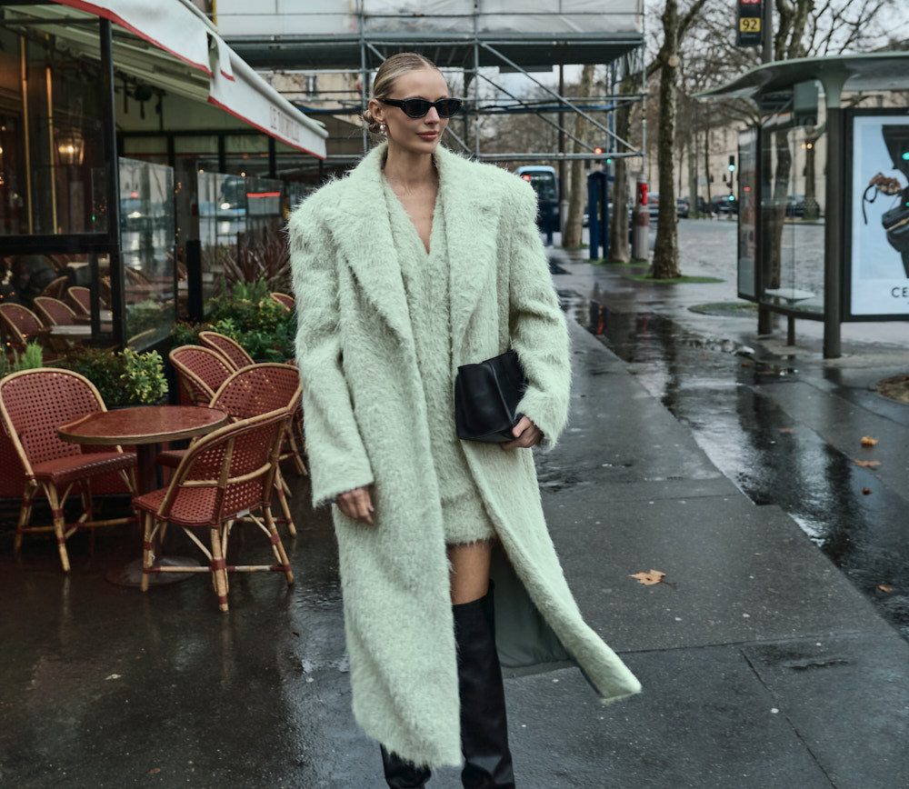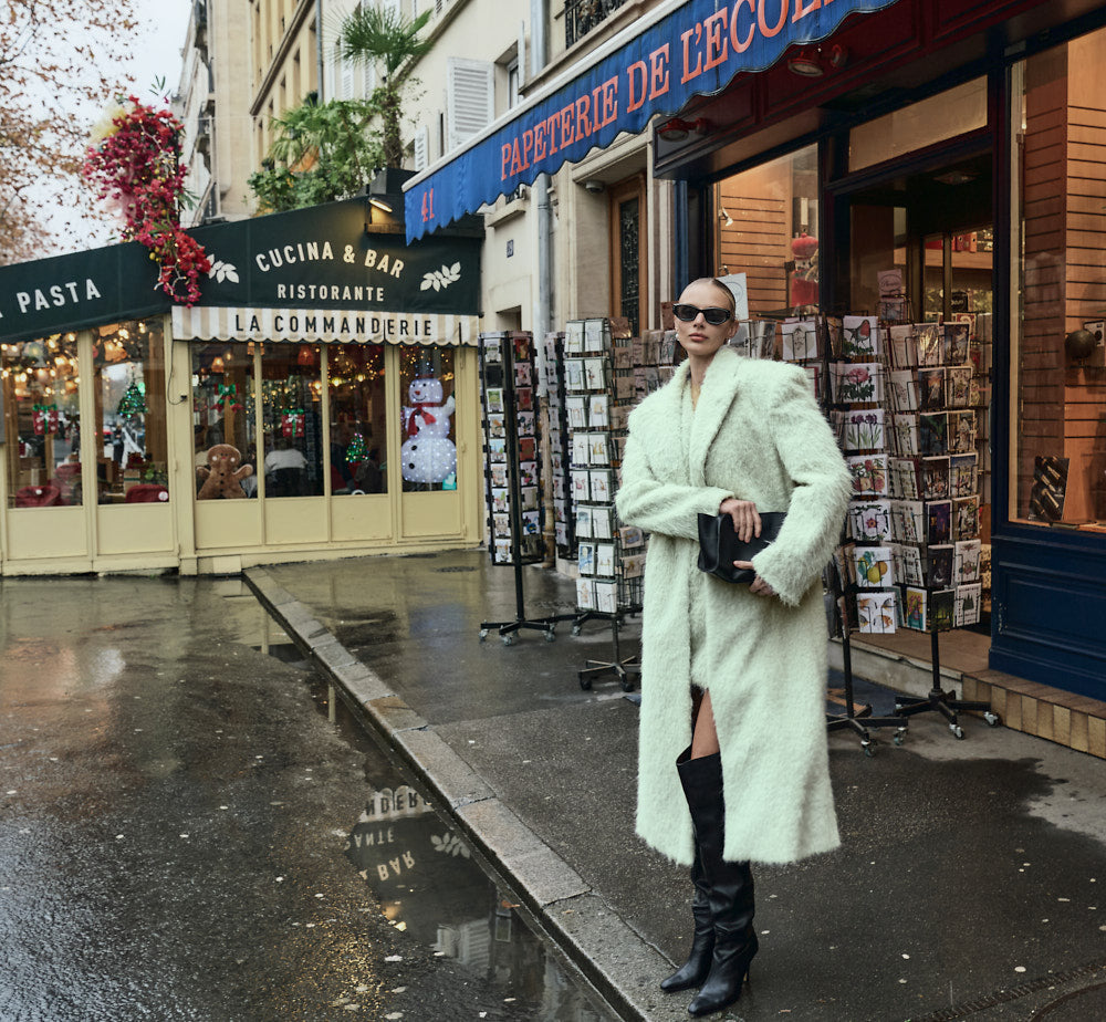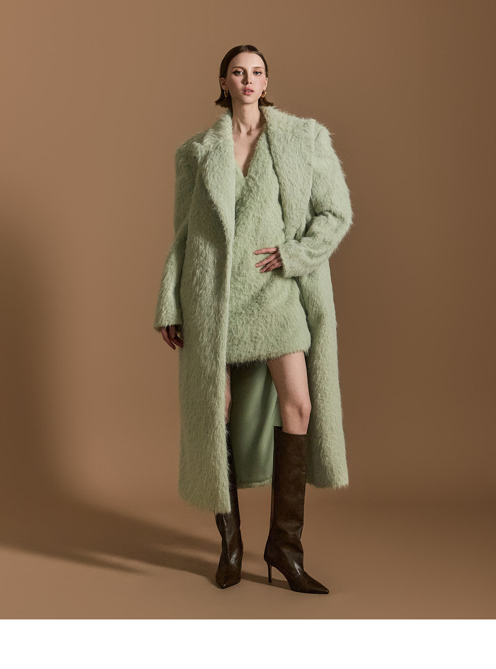 モデル身長174cm、MINTのONE-SIZEコートを着用しております。