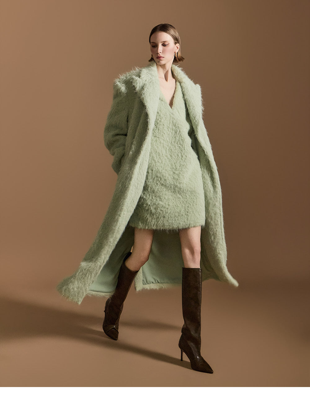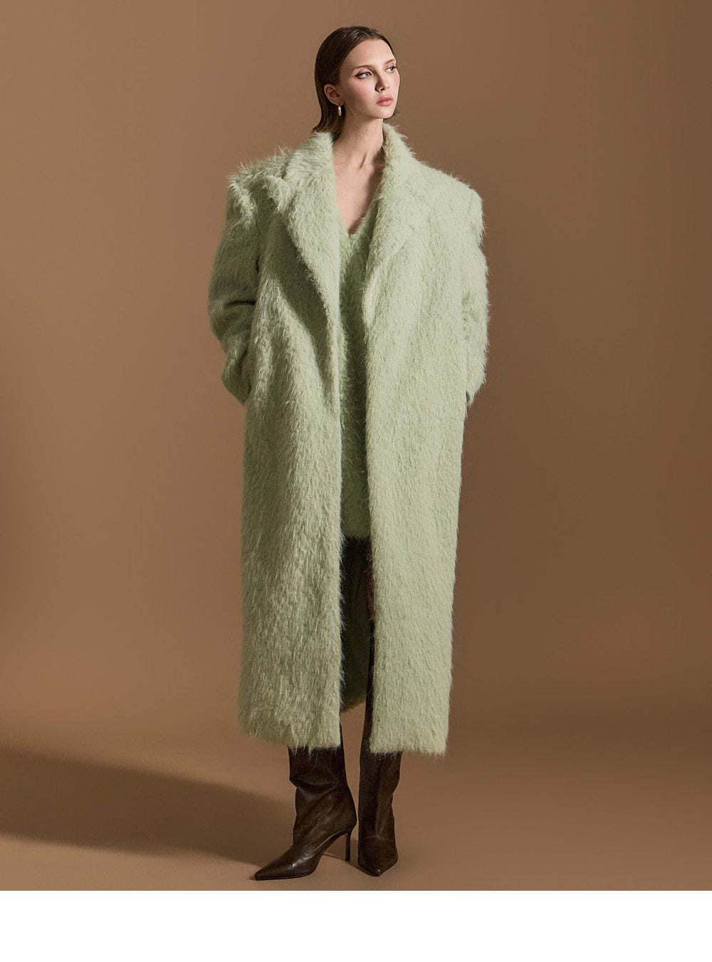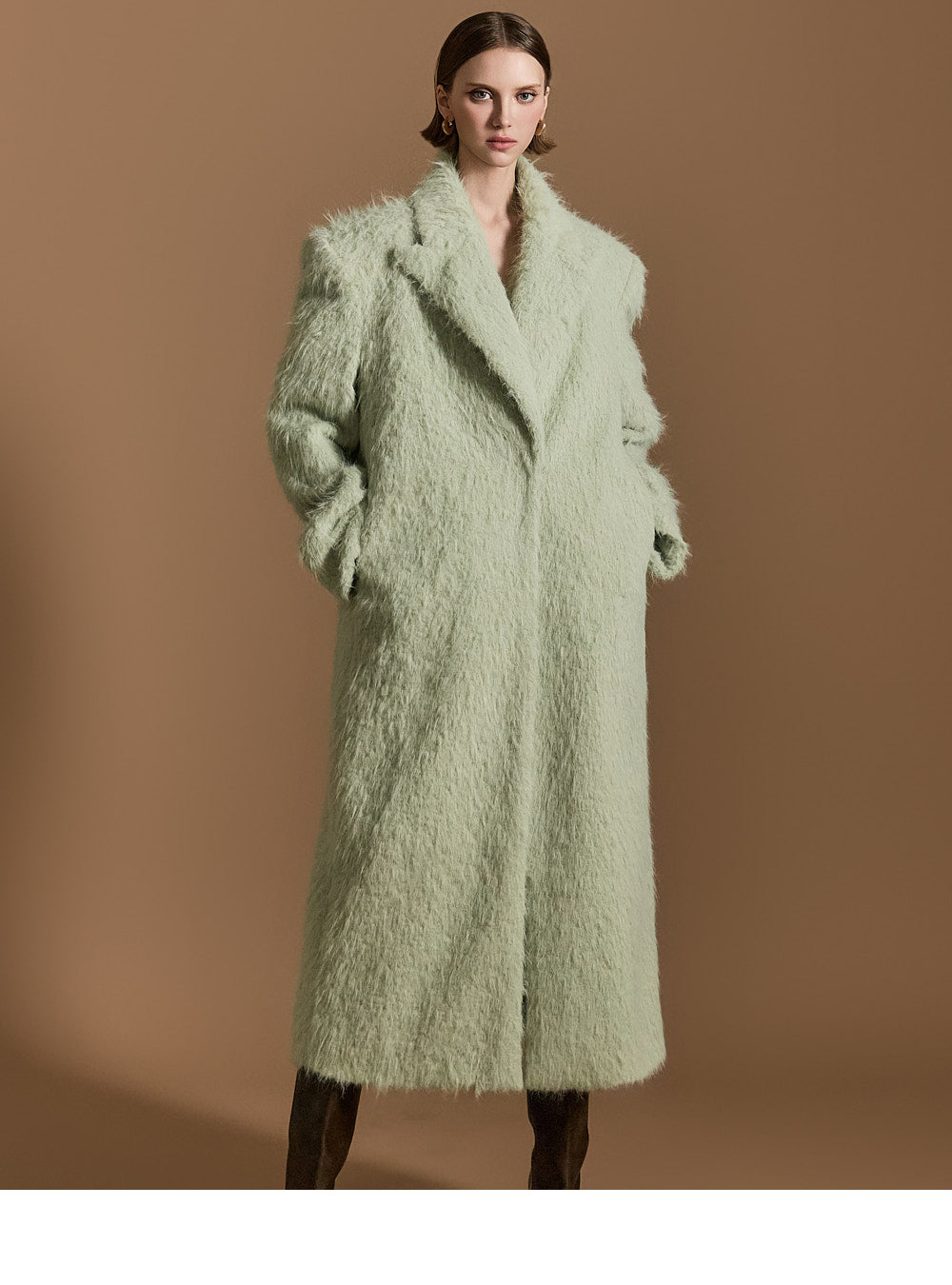 長めのブークレ生地で暖かさもアップ。