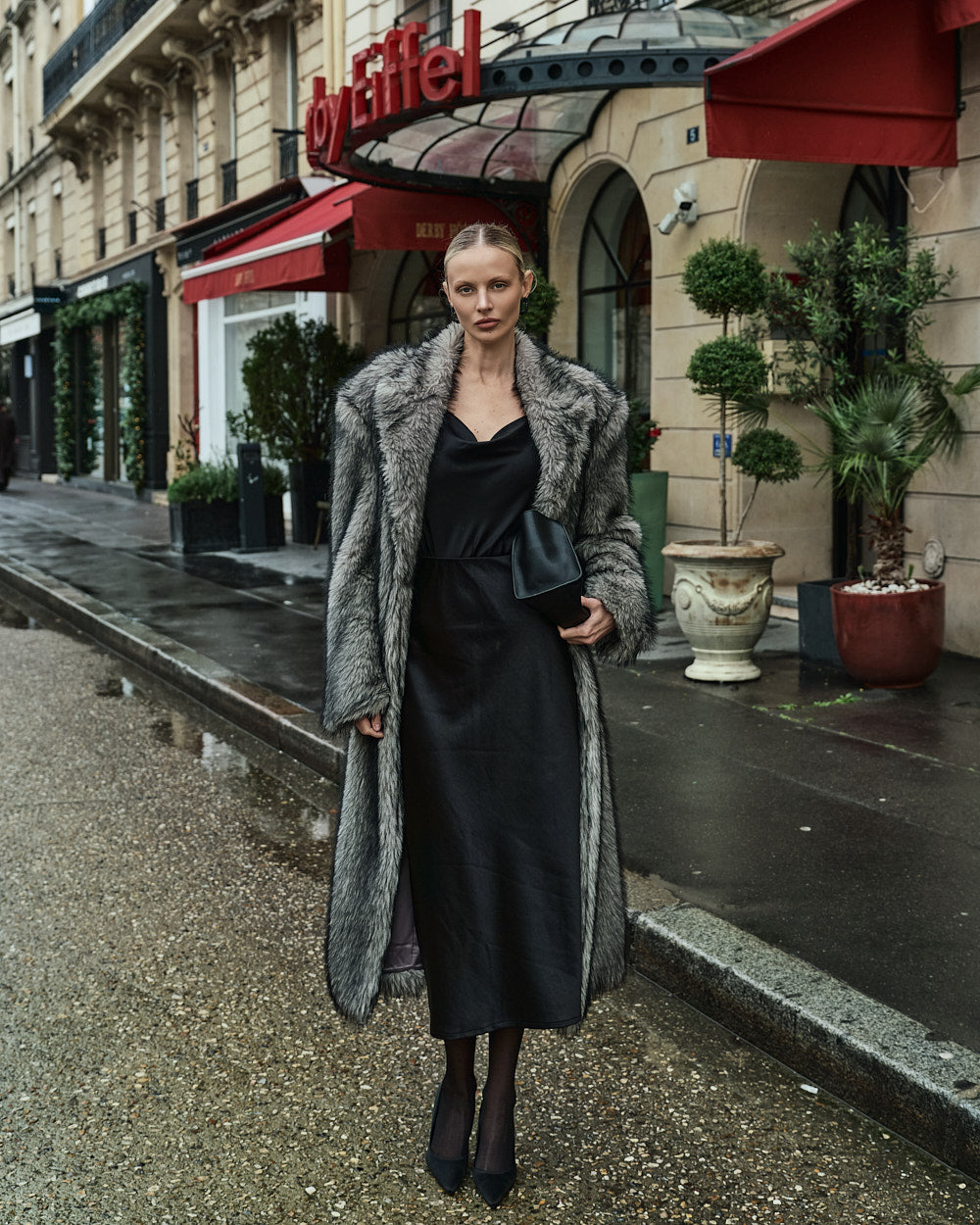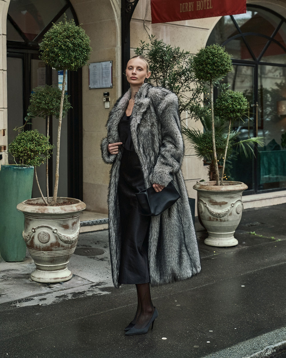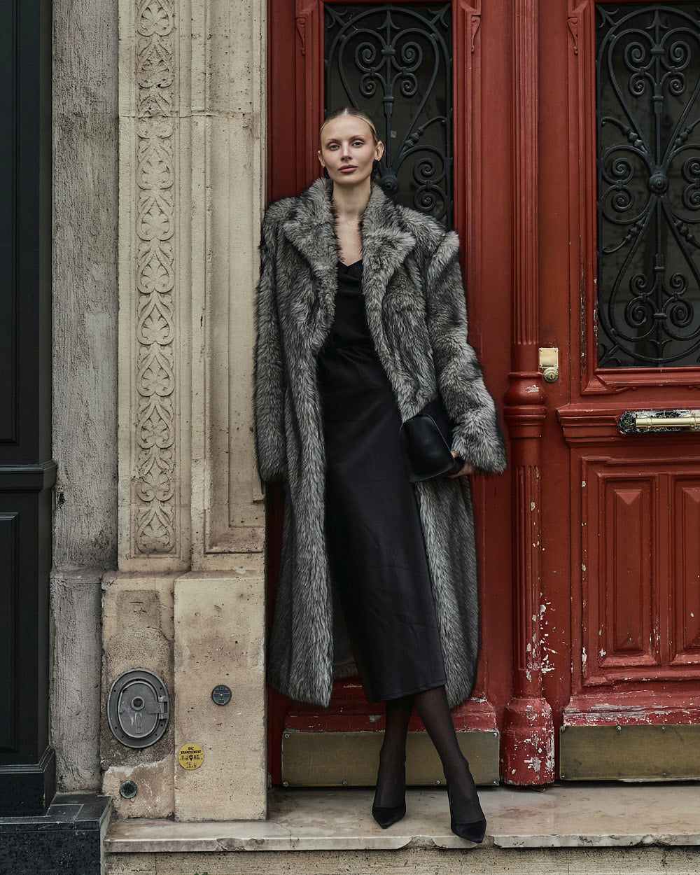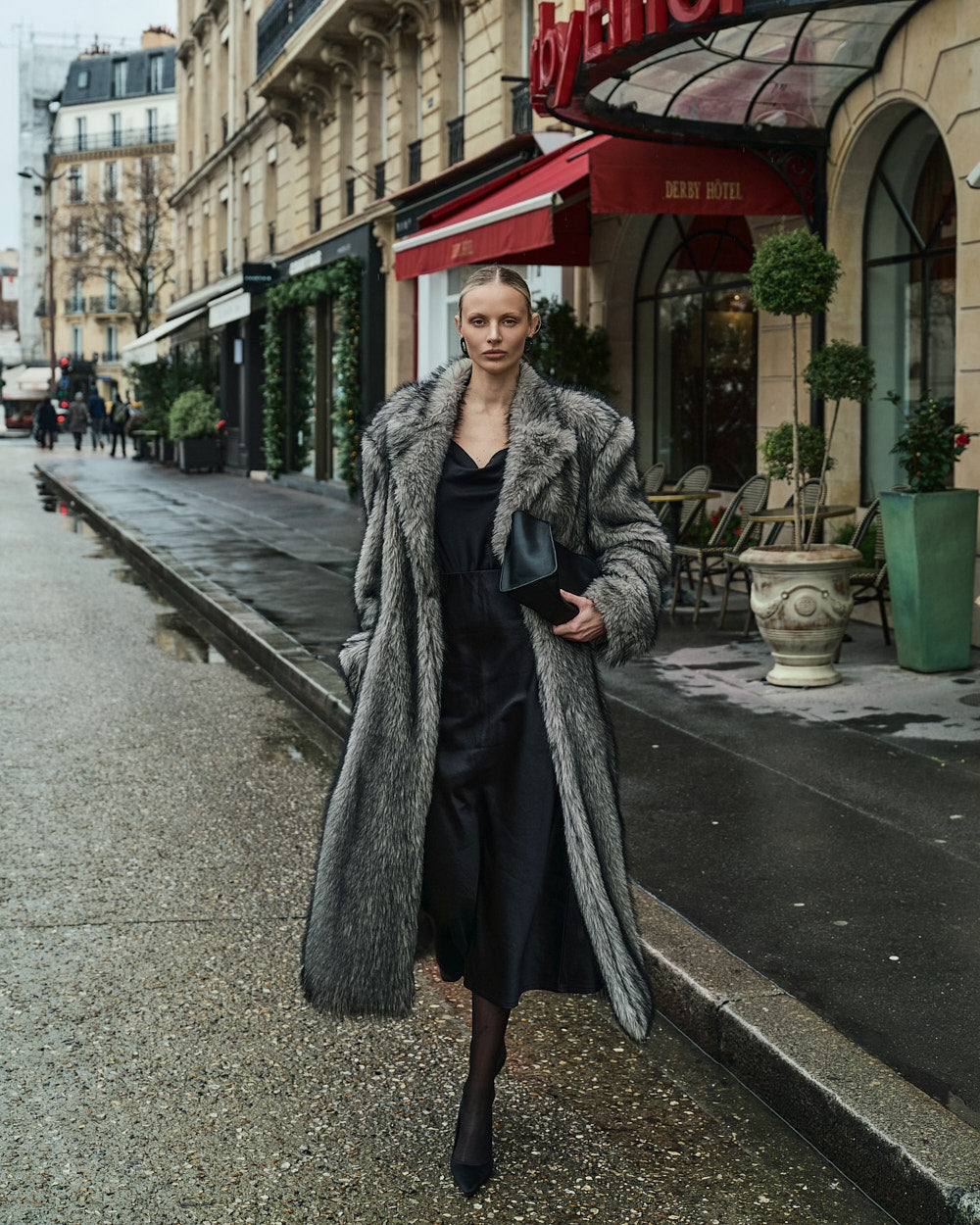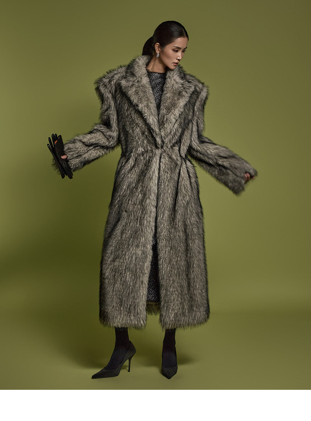 肩パッドがたるみのないすっきりとしたシルエットを演出します。
