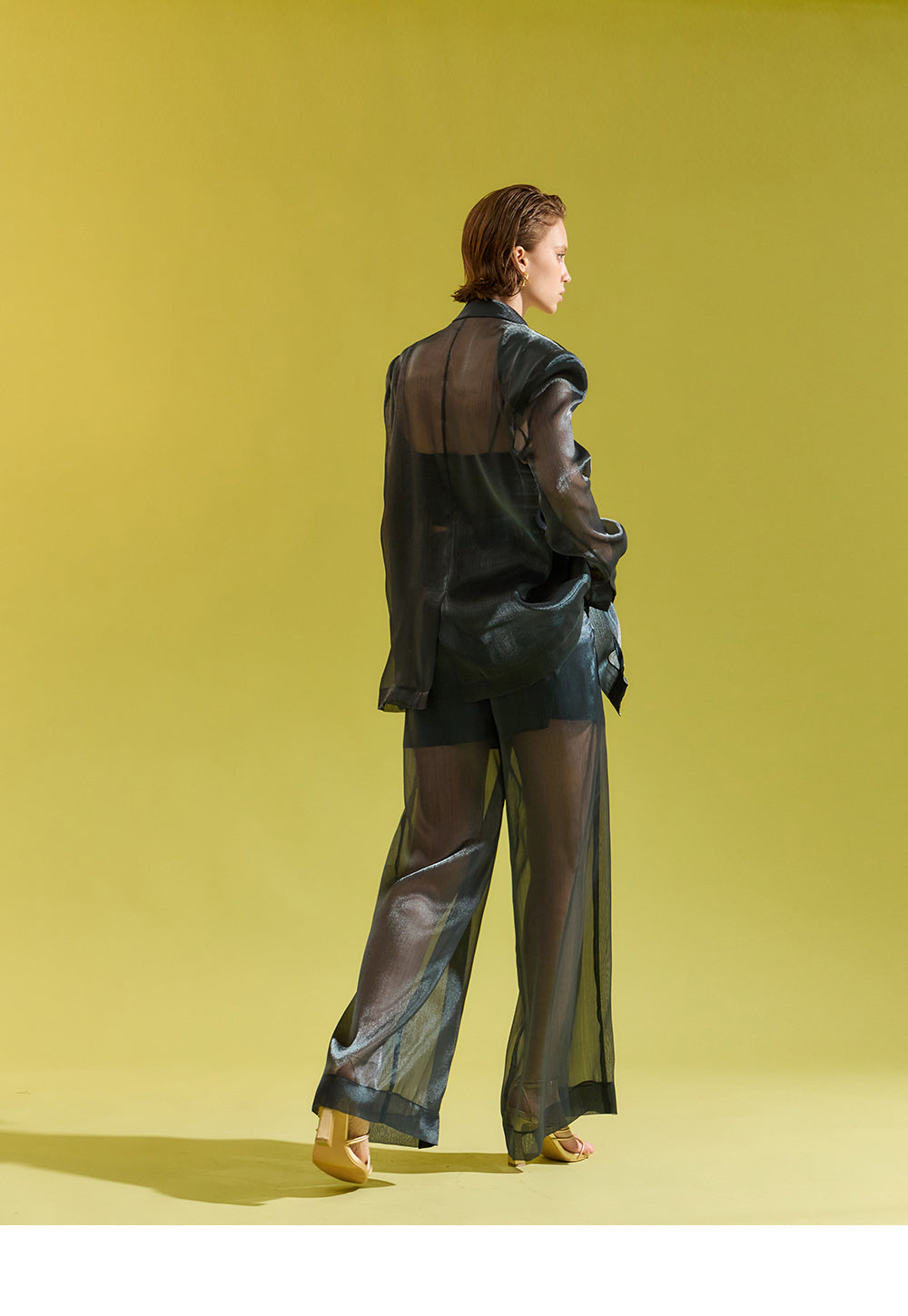 フロントのシースルー生地がスタイリッシュな装いを演出します。