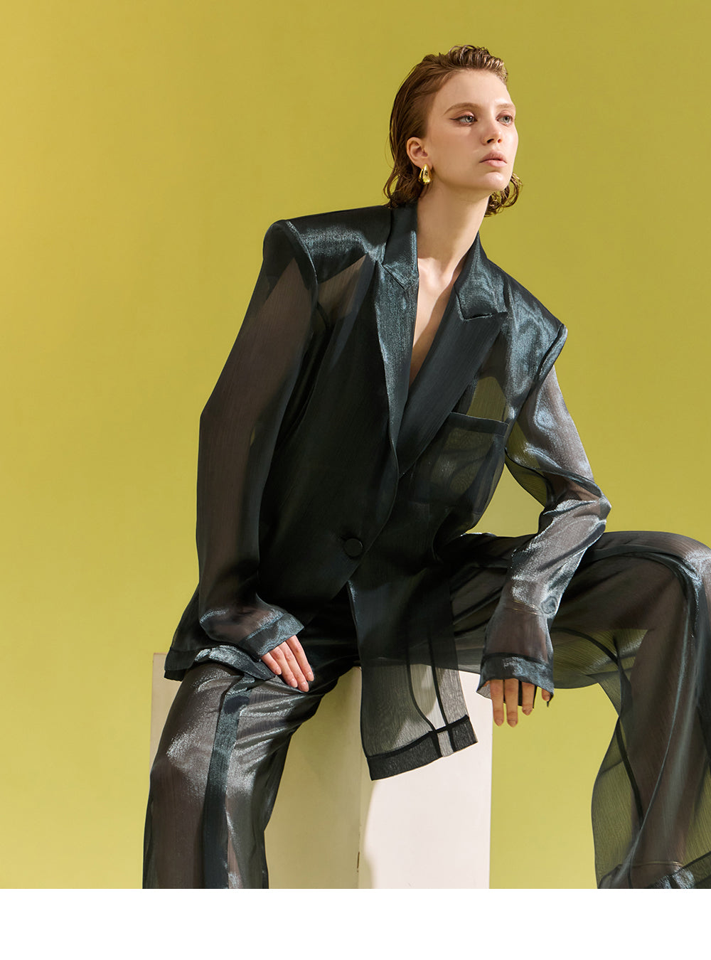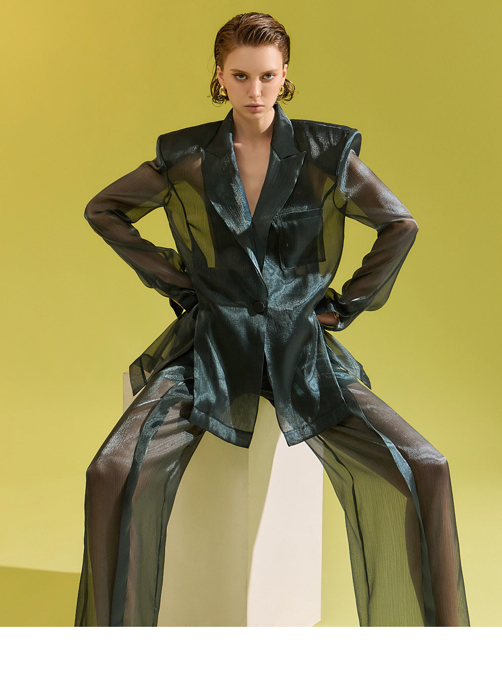 「シースルーワンボタンハーフシングルジャケット」