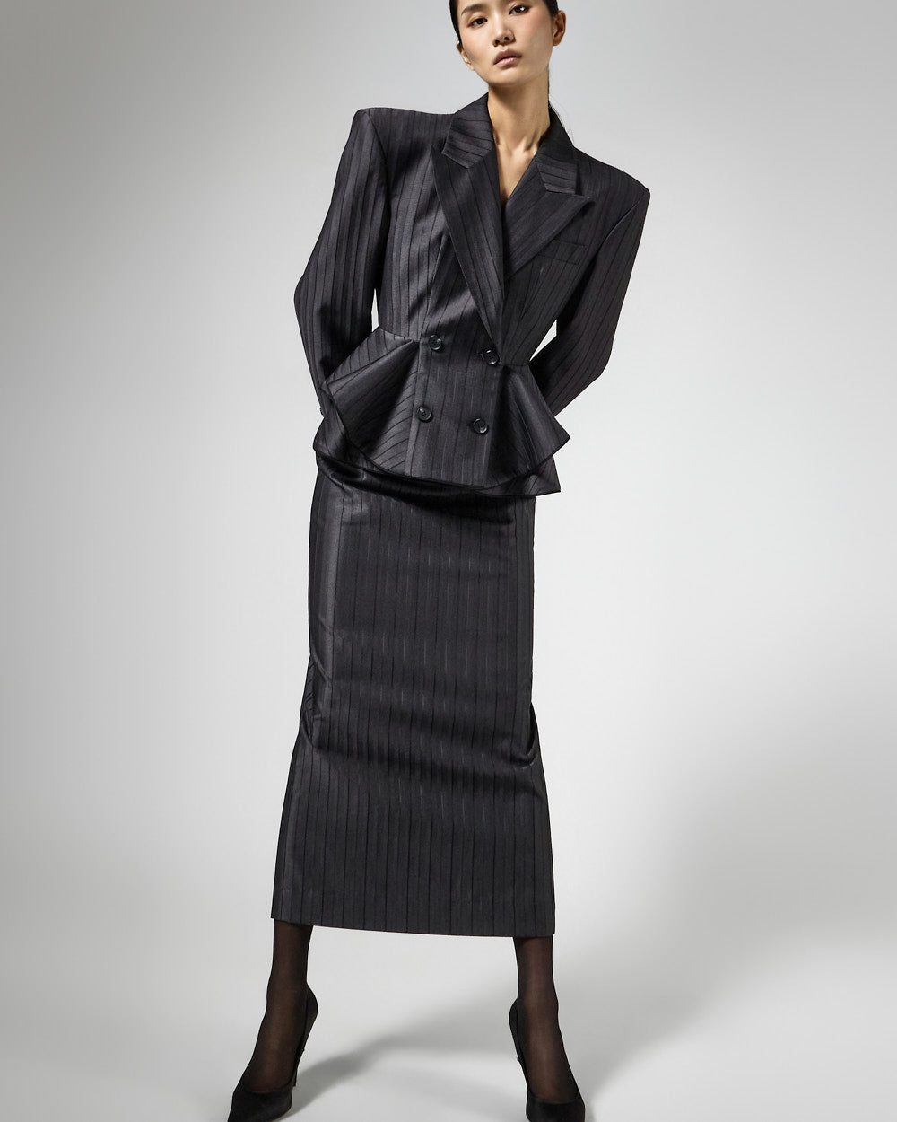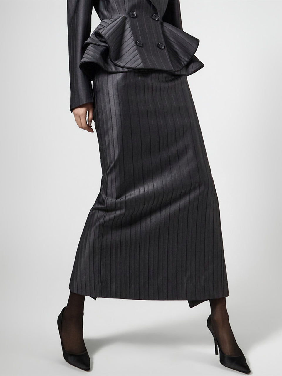 モードな雰囲気を漂わせるスタイリッシュなロングスカートです。