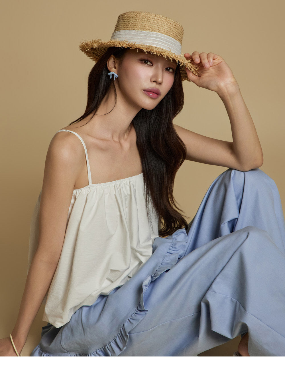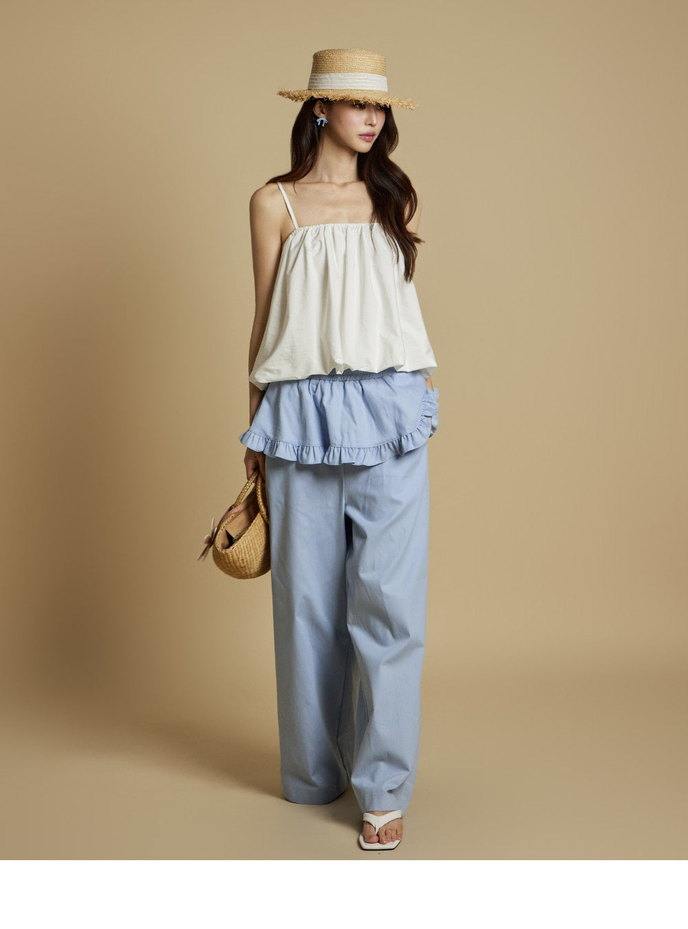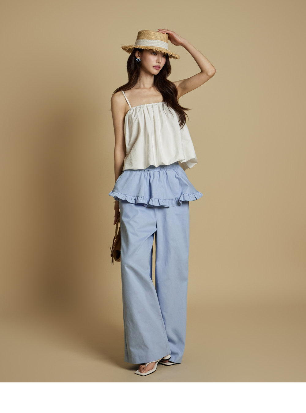 パンツのフリルレイヤードディテールが魅力的でユニークなタッチを加えます。