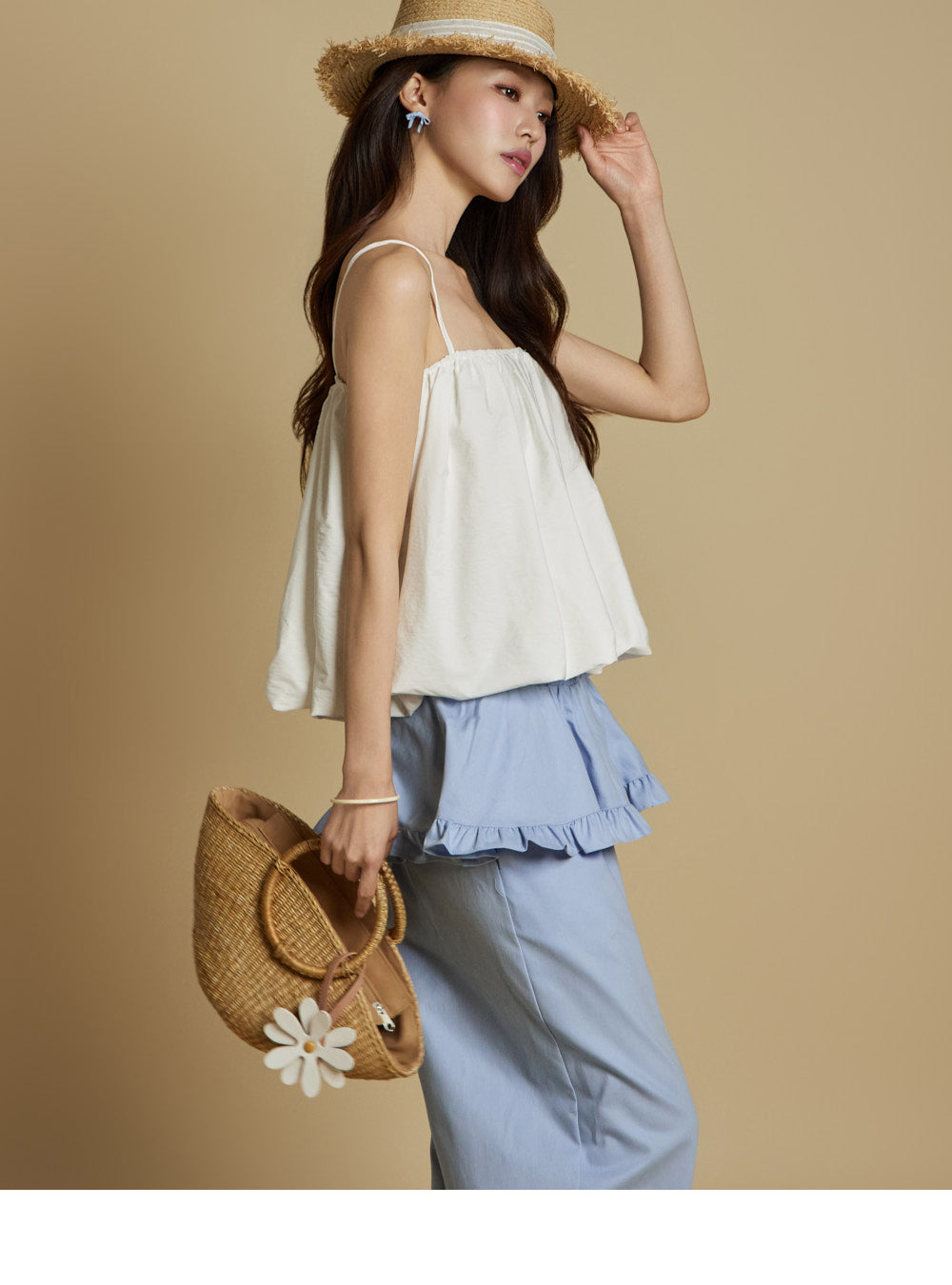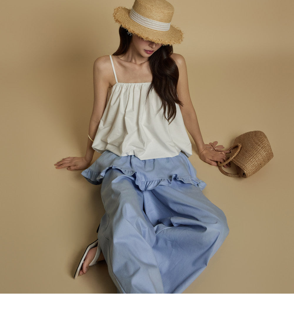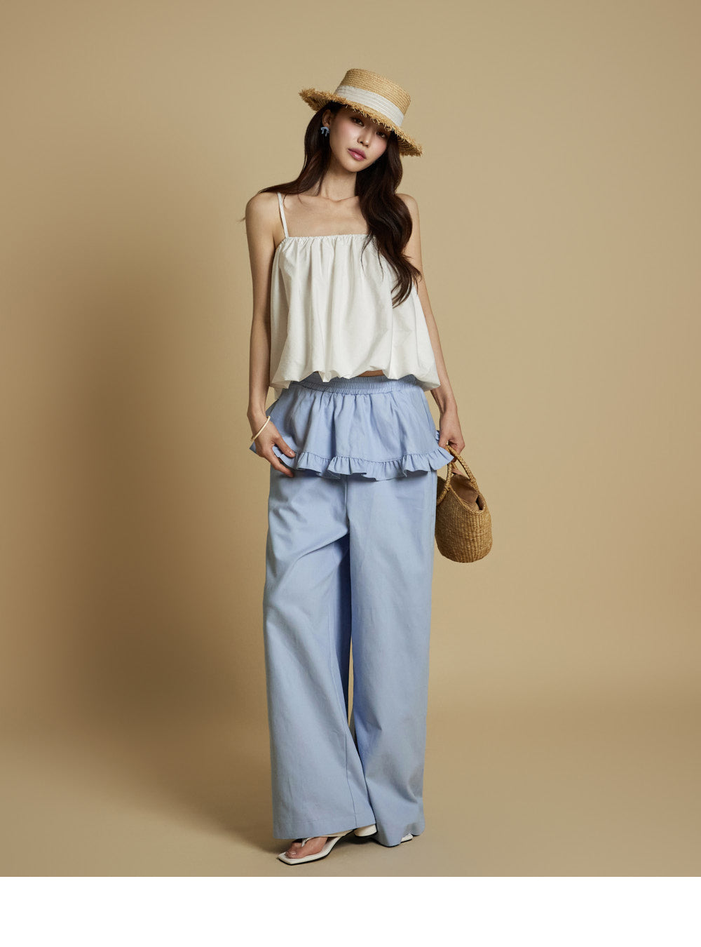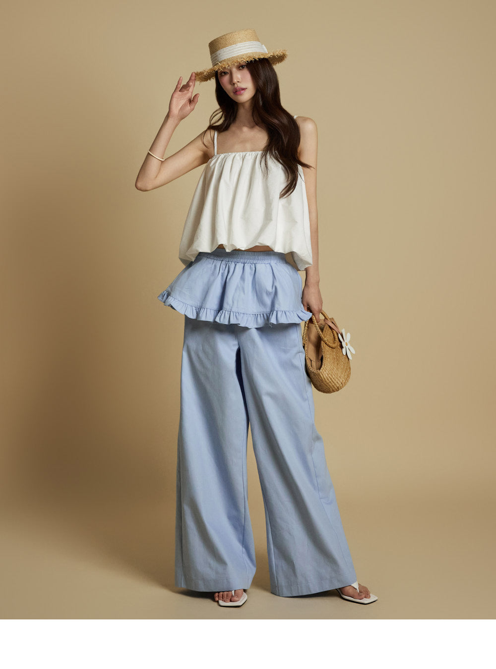 フリルレイヤードパンツは、可愛らしくフェミニンな雰囲気を演出します。