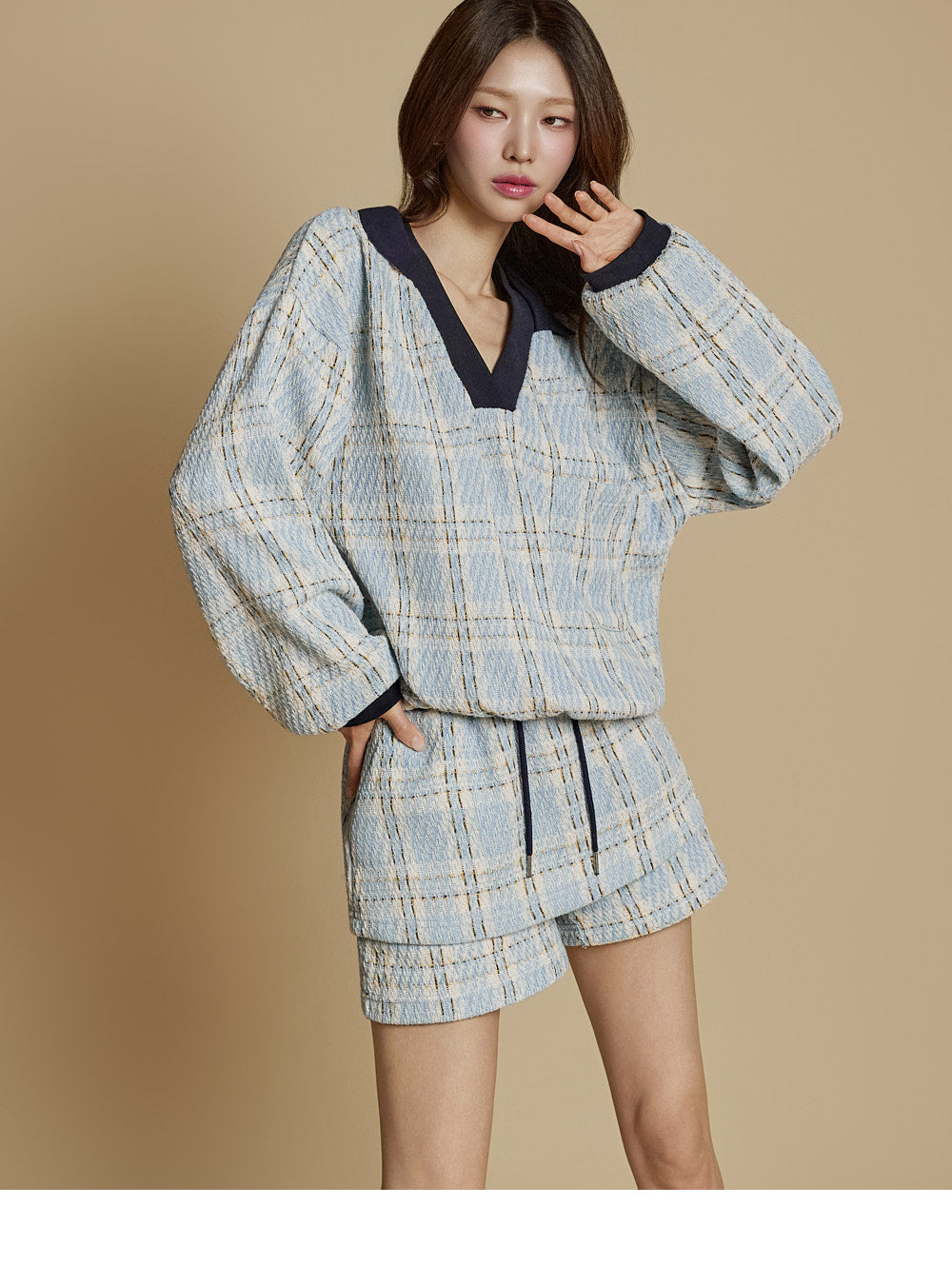 The 171CM model is wearing ONE size in SKY BLUE color.