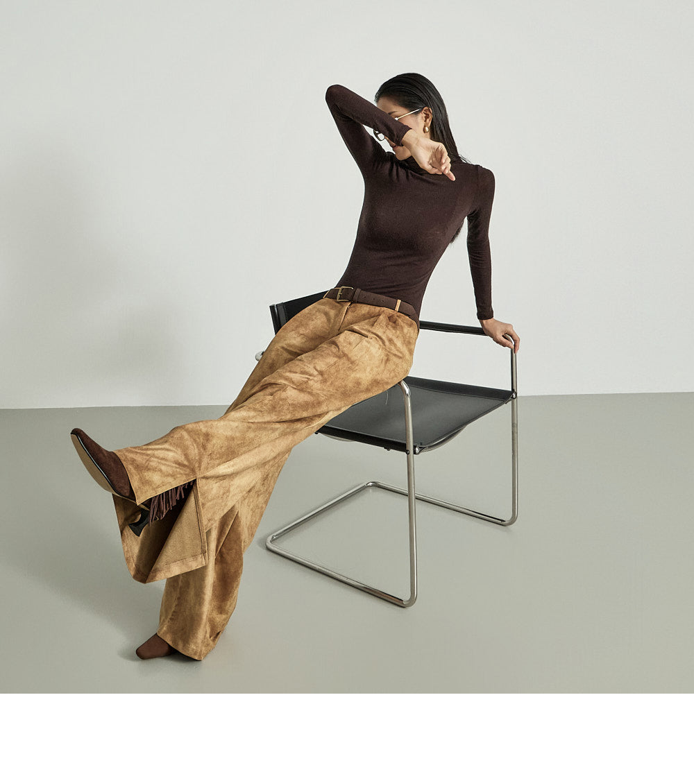 and the front pin tucks and side slits complete the sophisticated silhouette.