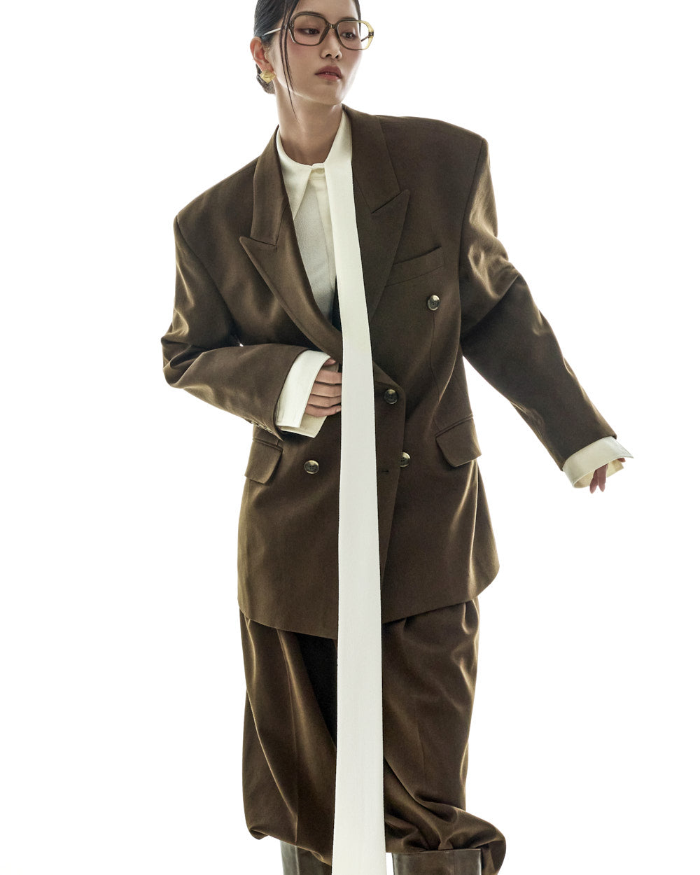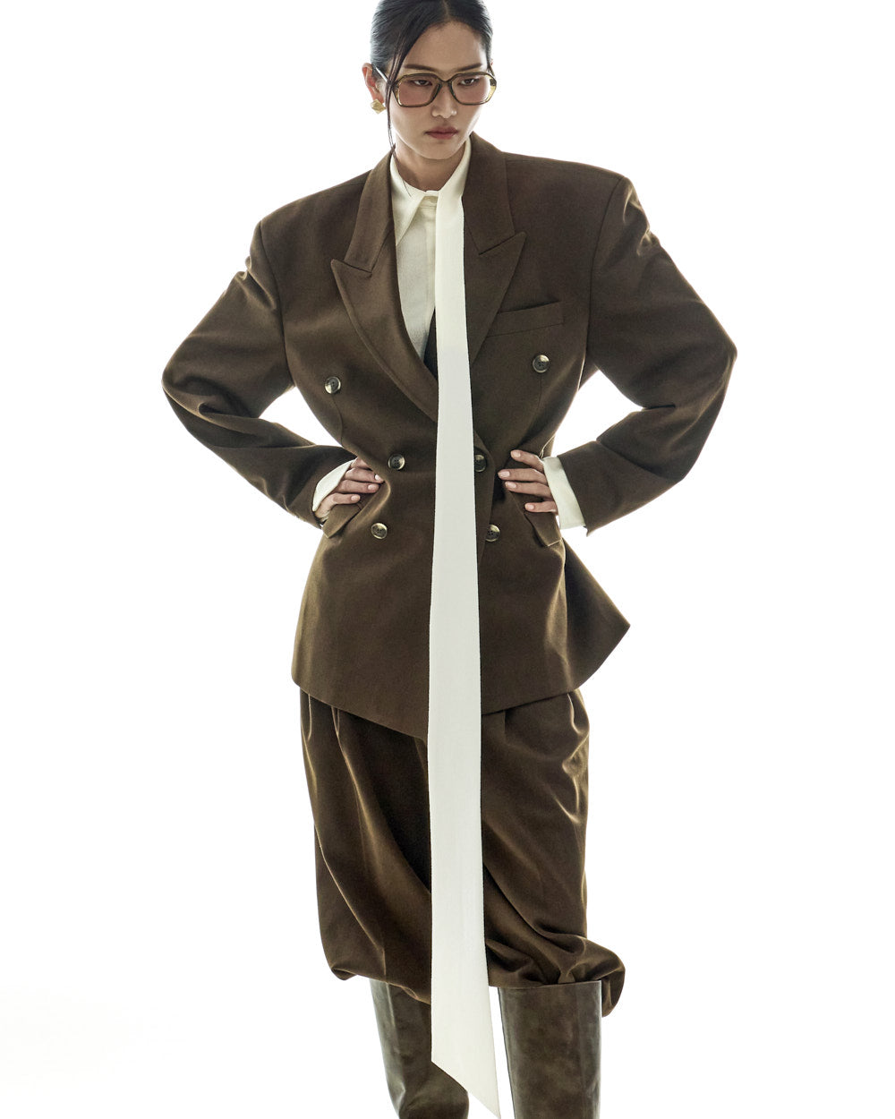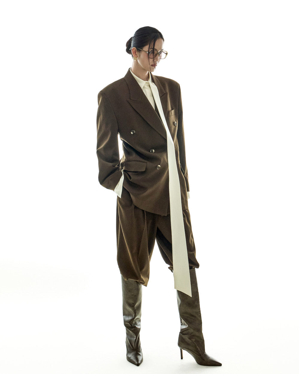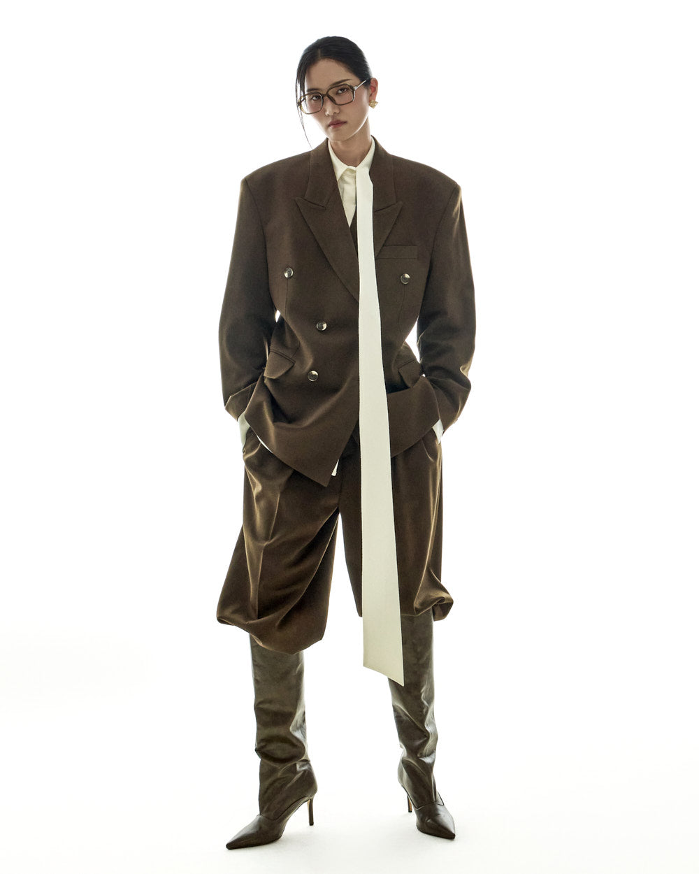 Model is 173cm tall and wearing size S in KHAKI BROWN.