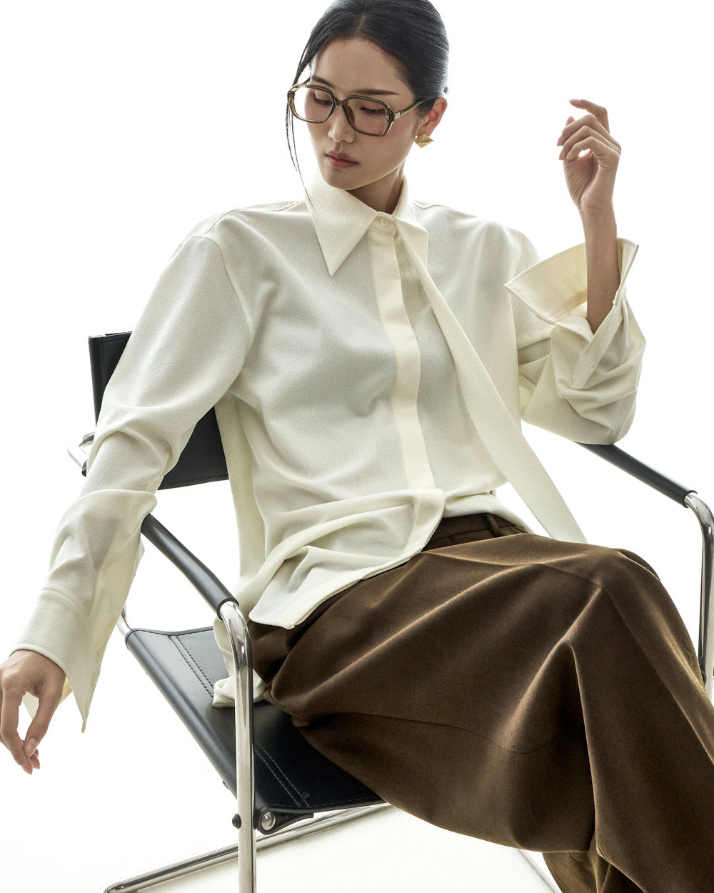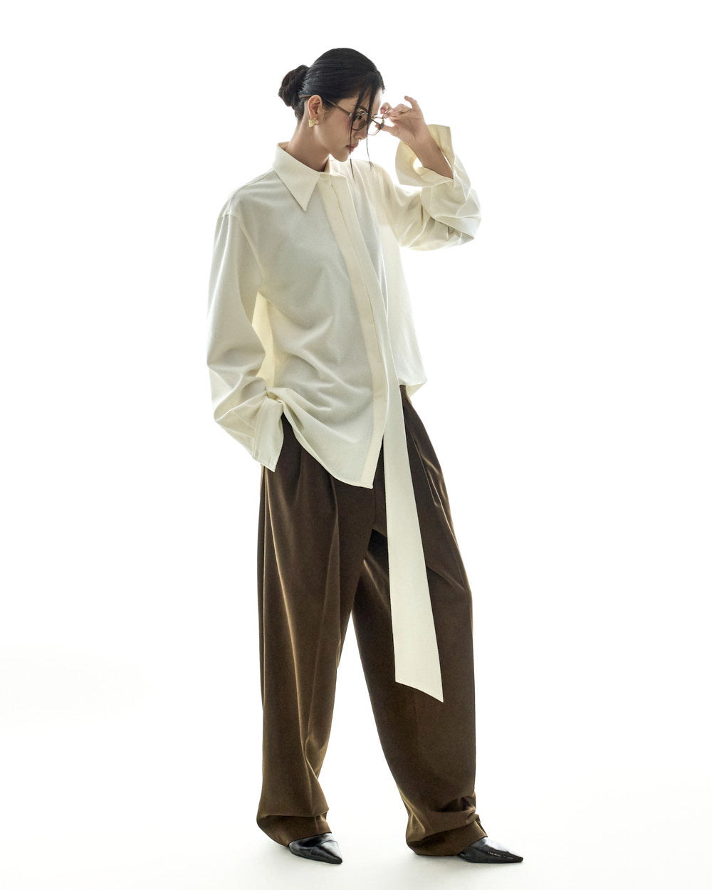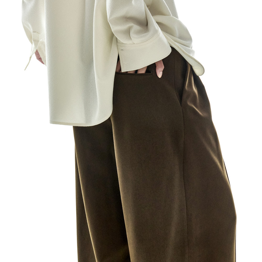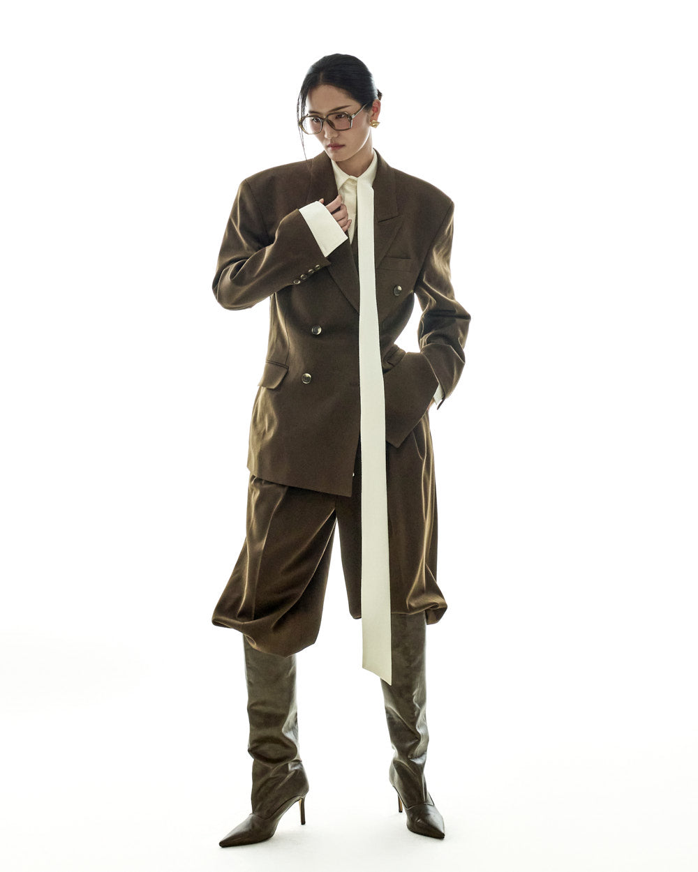 Model is 173cm tall and wearing size S in KHAKI BROWN.