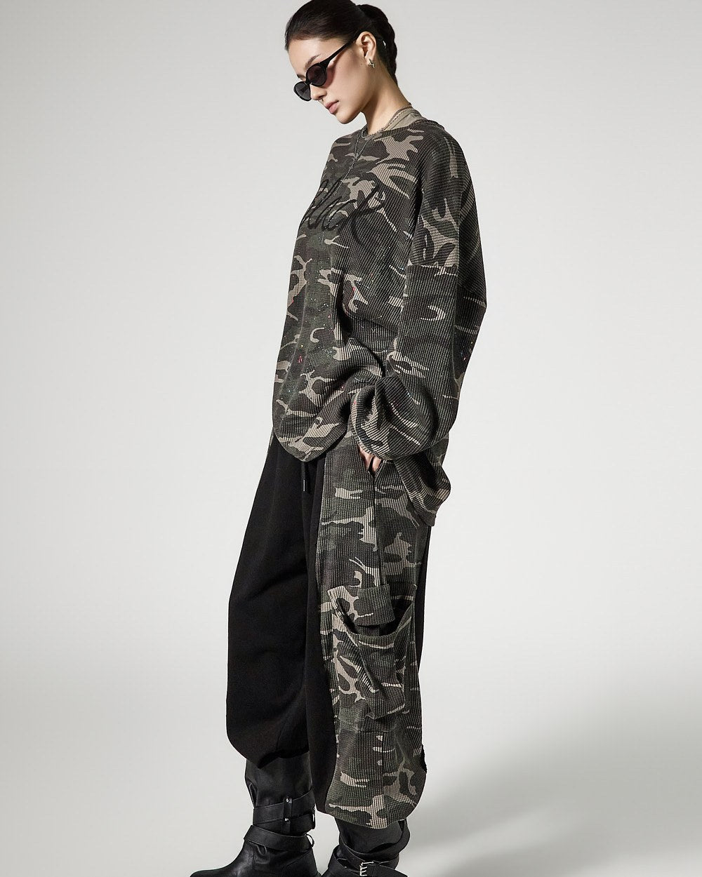 while the relaxed fit creates a natural silhouette.