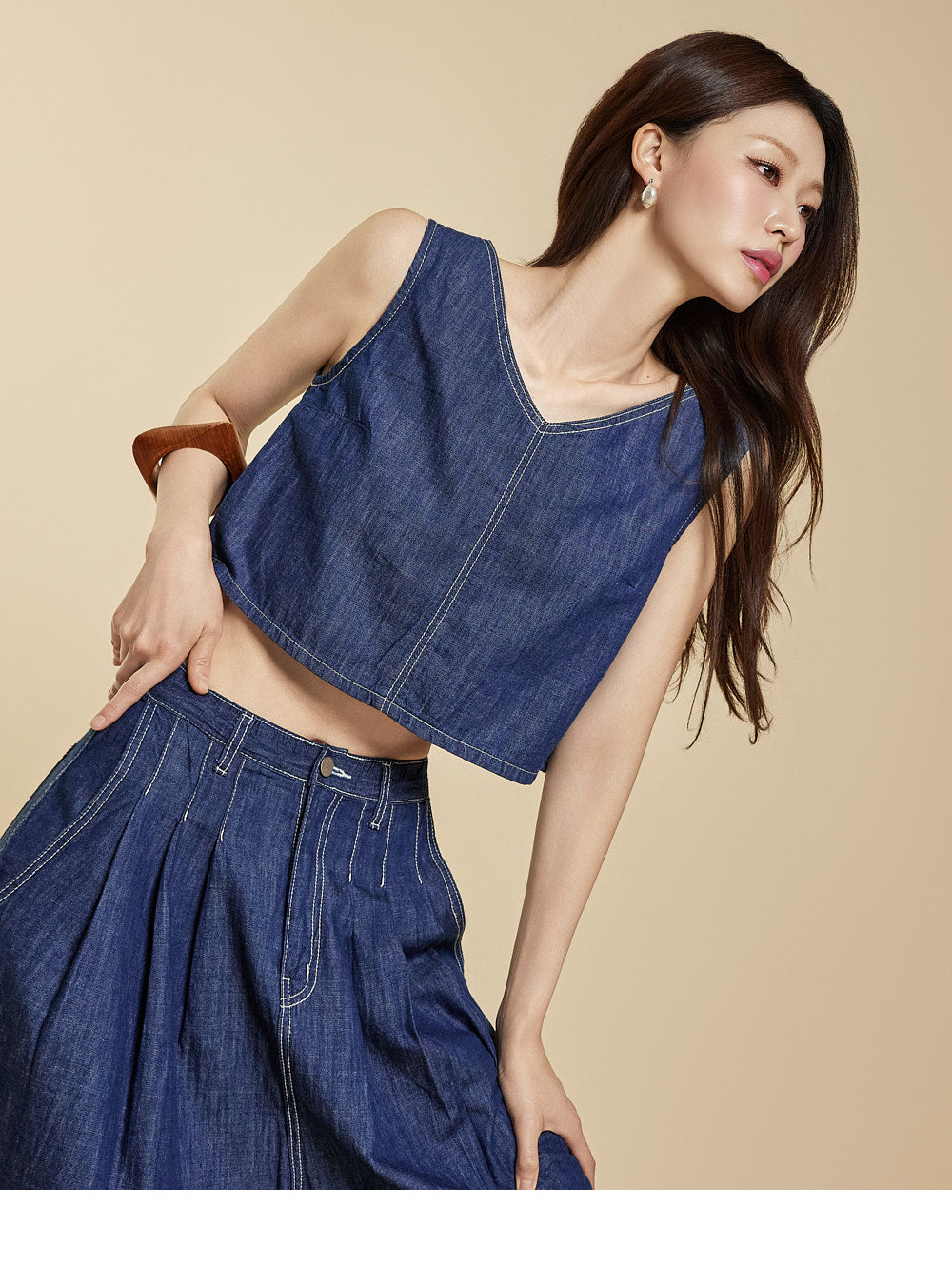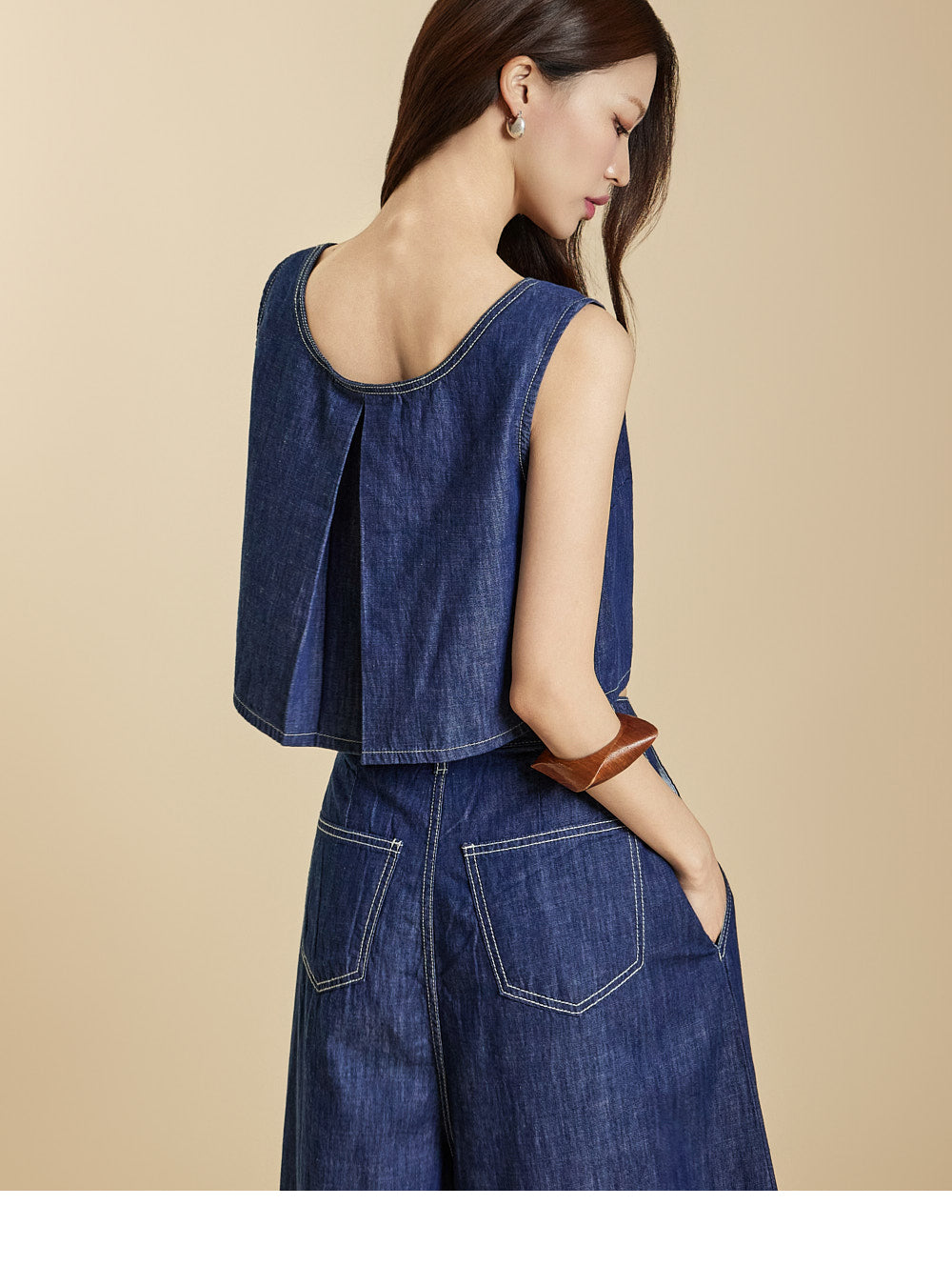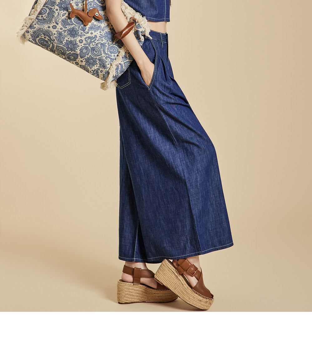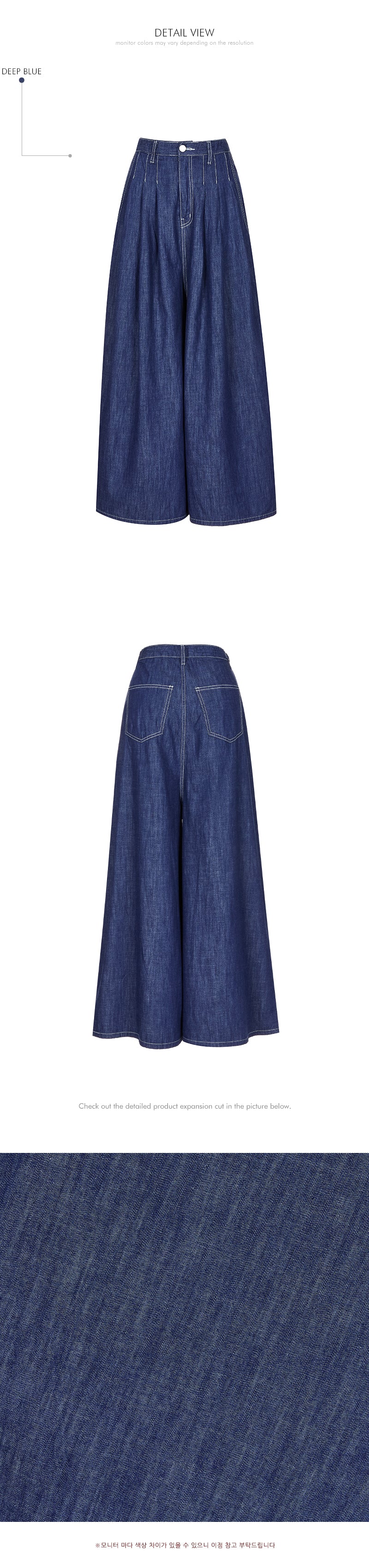 カジュアルスタイルのプリーツワイドレッグデニムパンツ