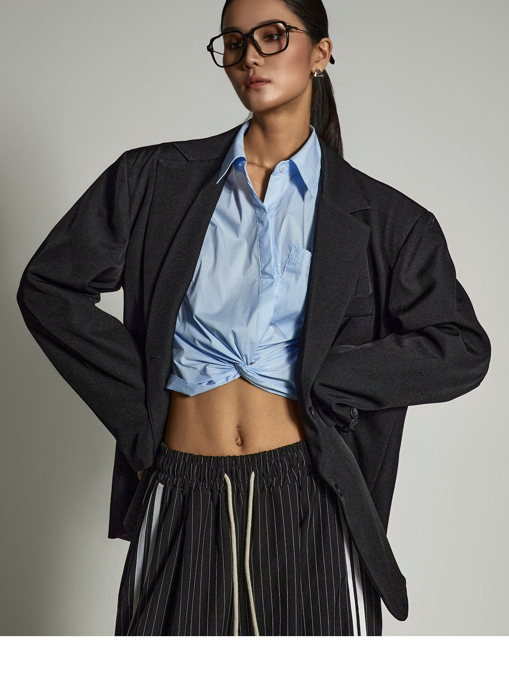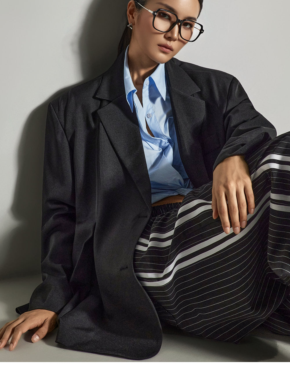 The model, 173cm tall, is wearing one size in the Sky Blue color.