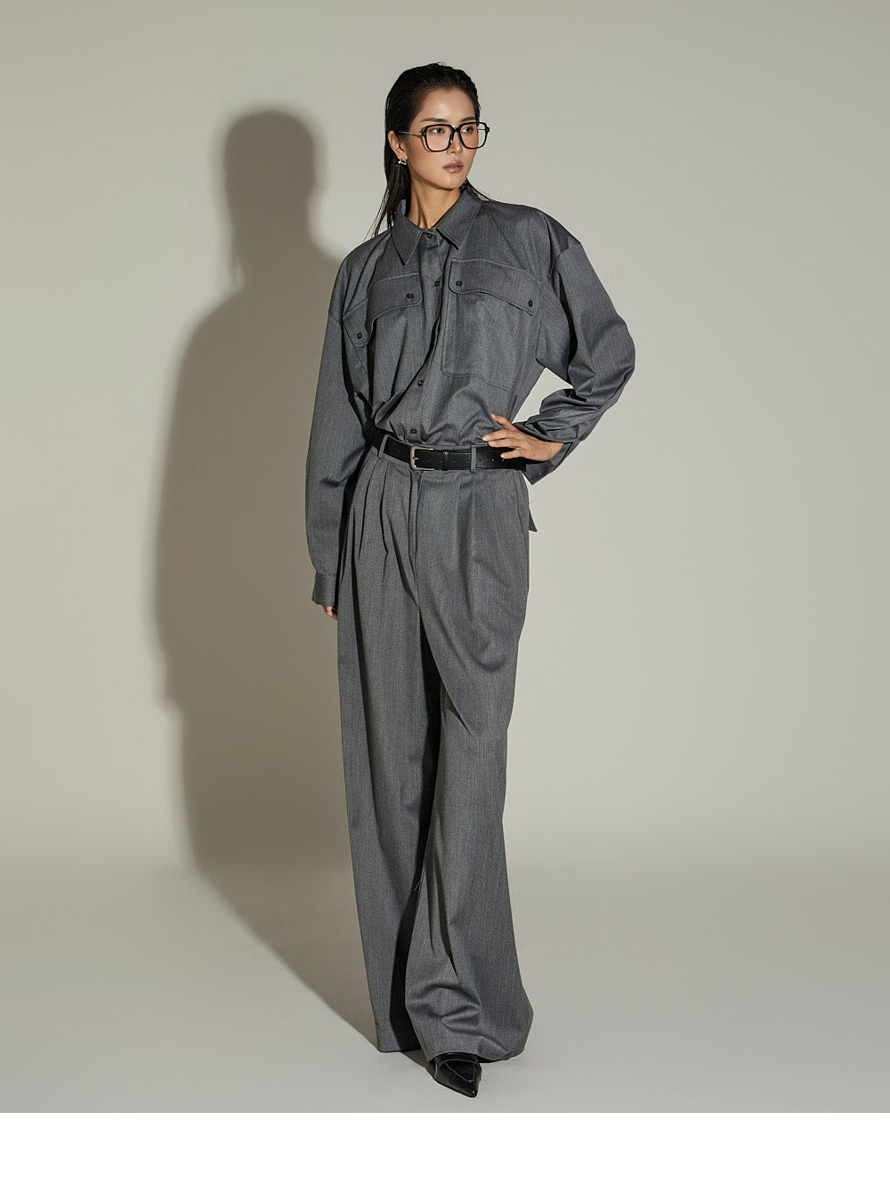 The 173cm model is wearing size ONE, color GRAY.