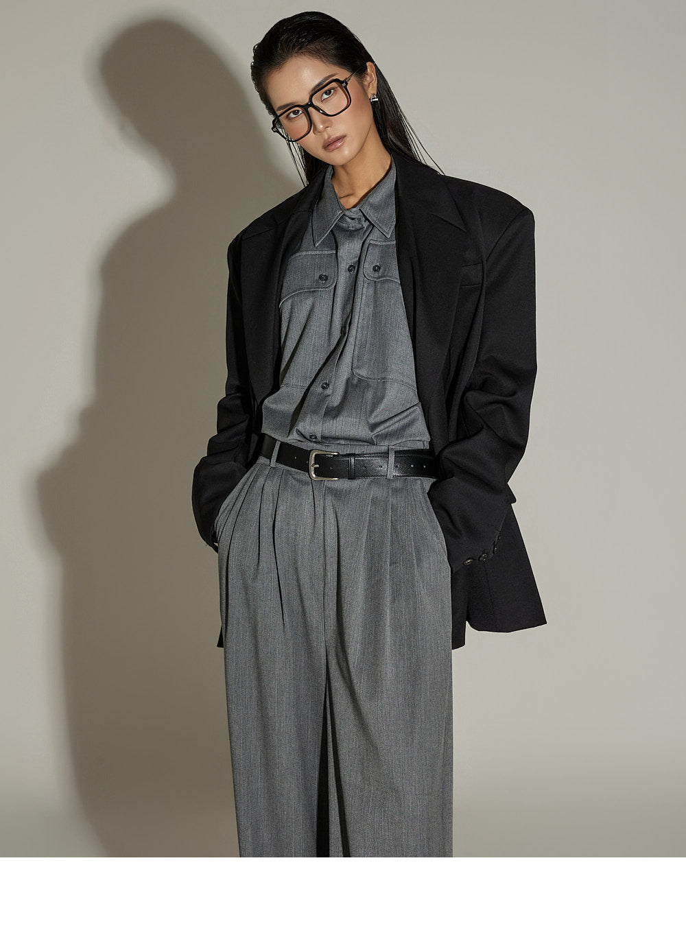 The relaxed, loose fit and unbalanced length