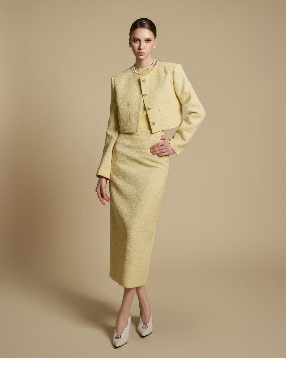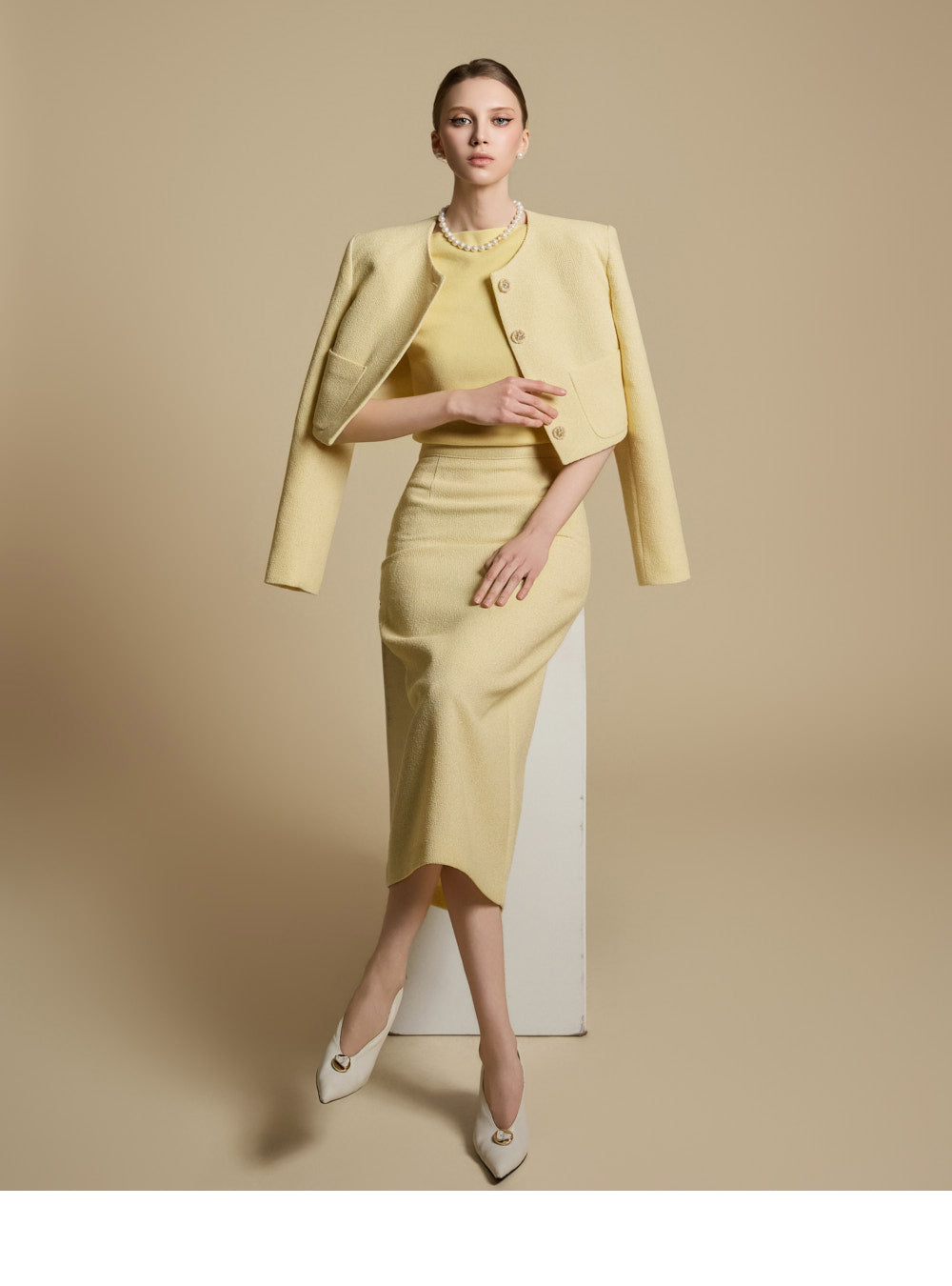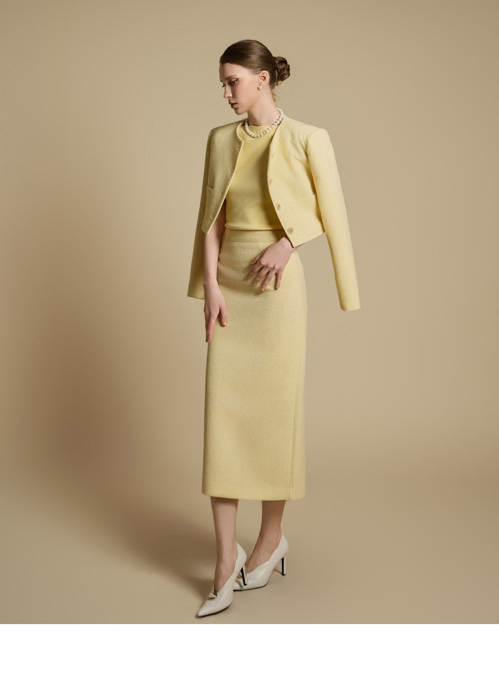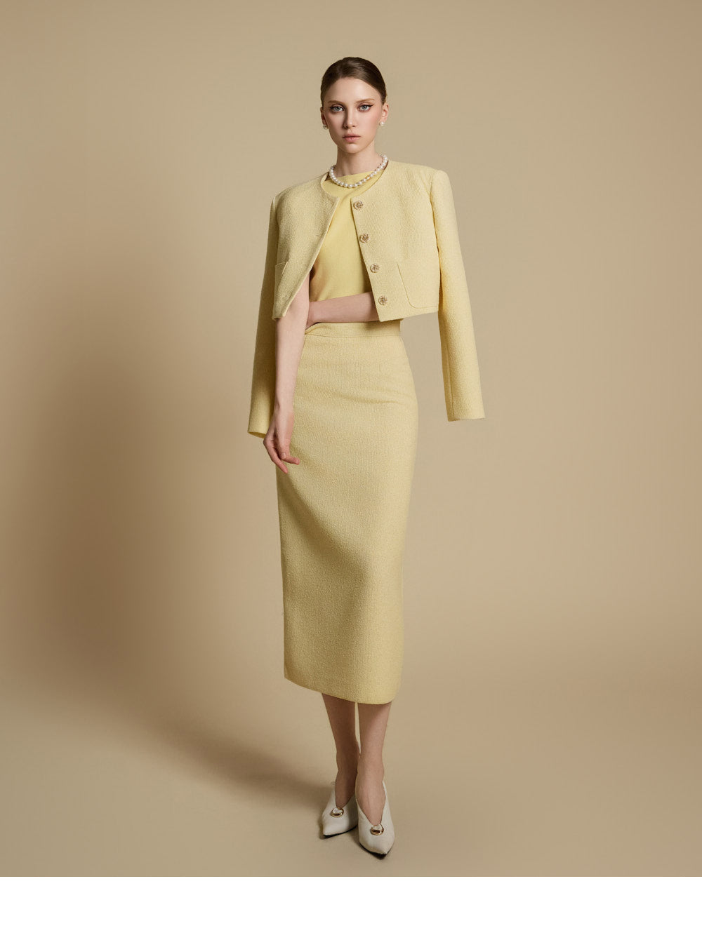 ミディ丈はウエストラインに沿ってすっきりと落ち、