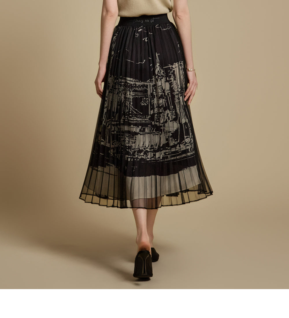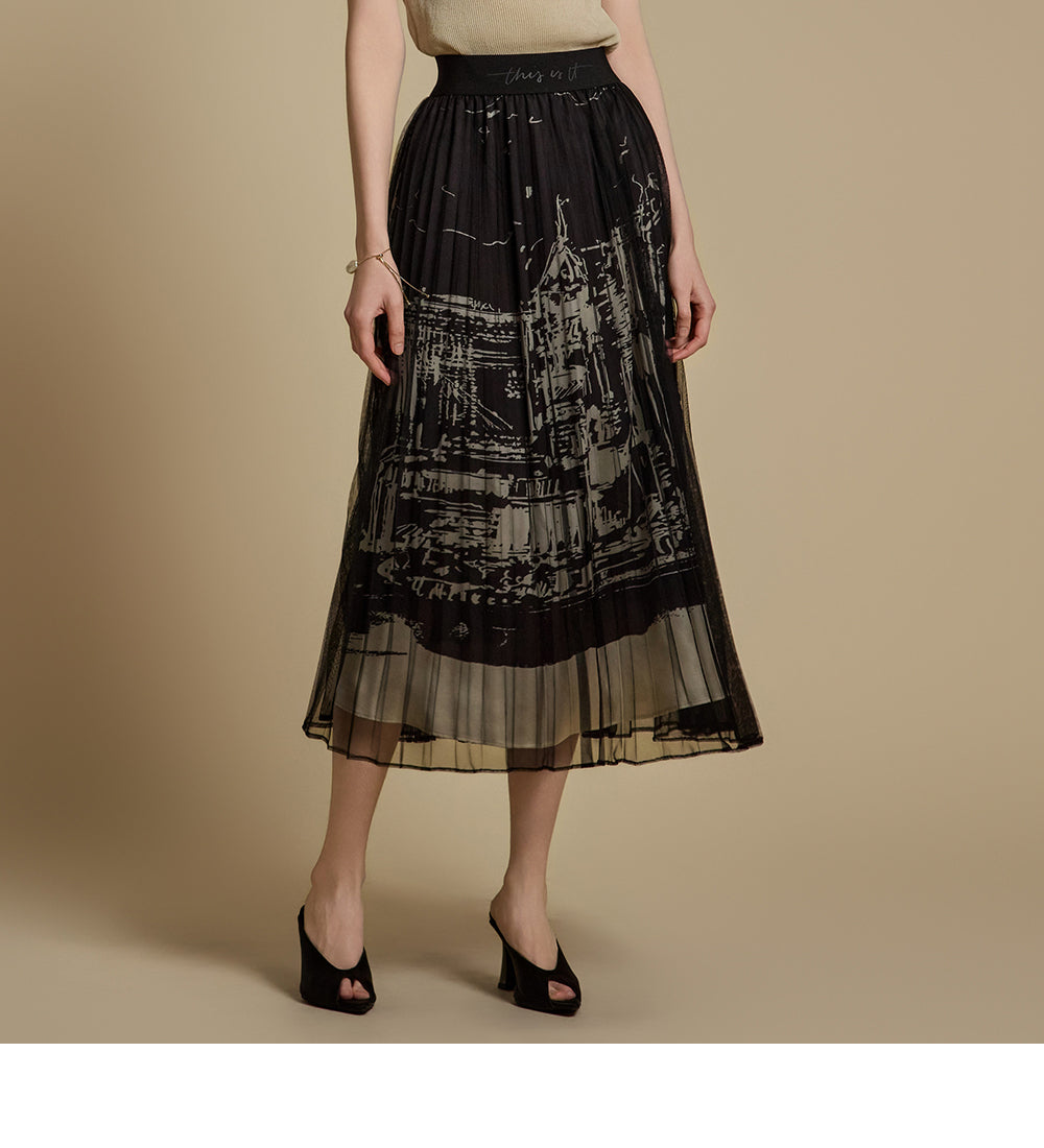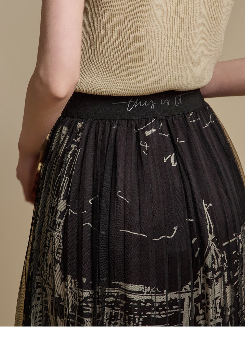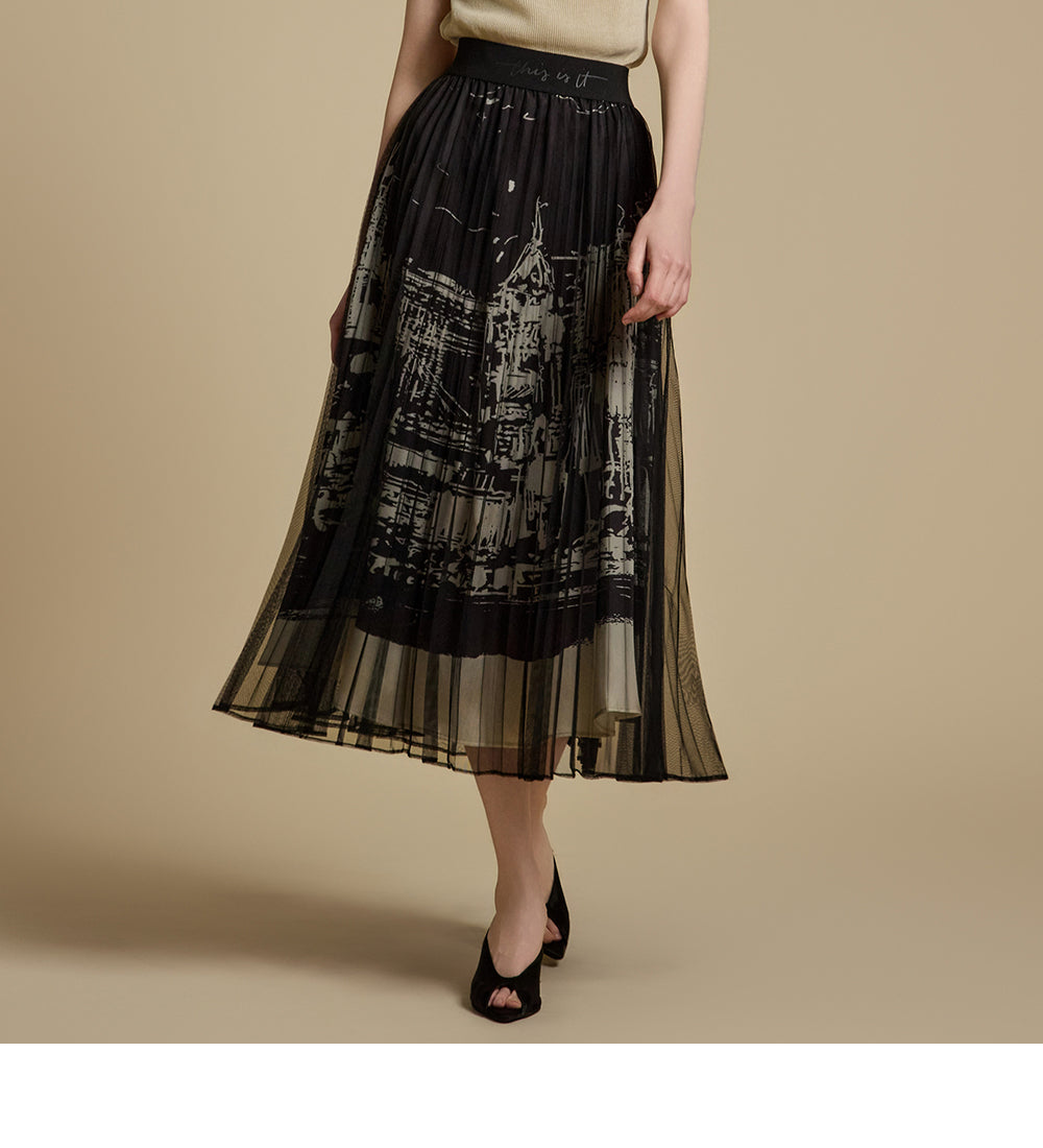 洗練されたスタイリッシュな印象を与えるプリント柄プリーツスカートです。