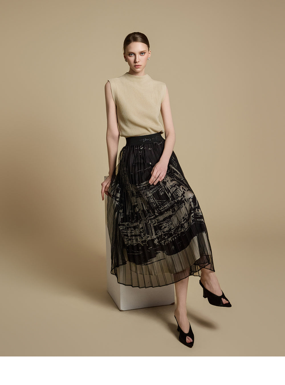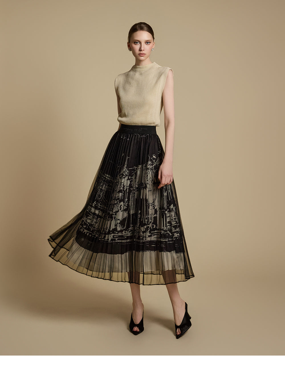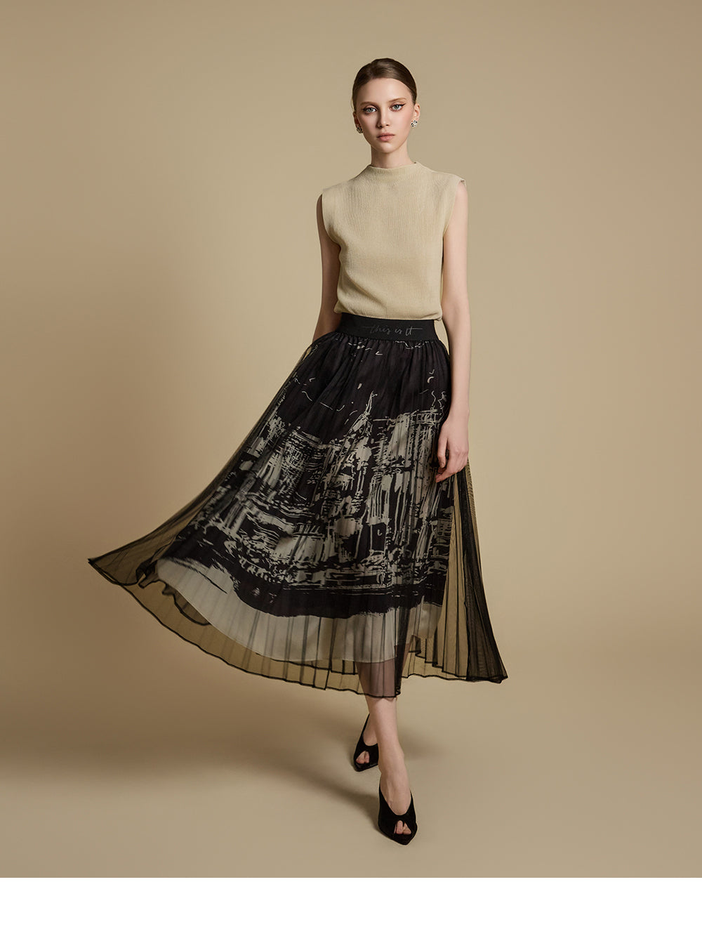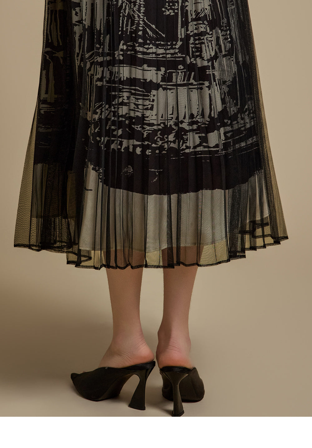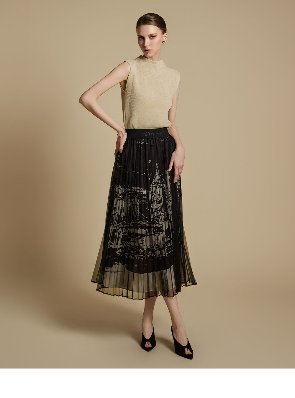 洗練されたスタイリッシュな印象を与えるプリント柄プリーツスカートです。