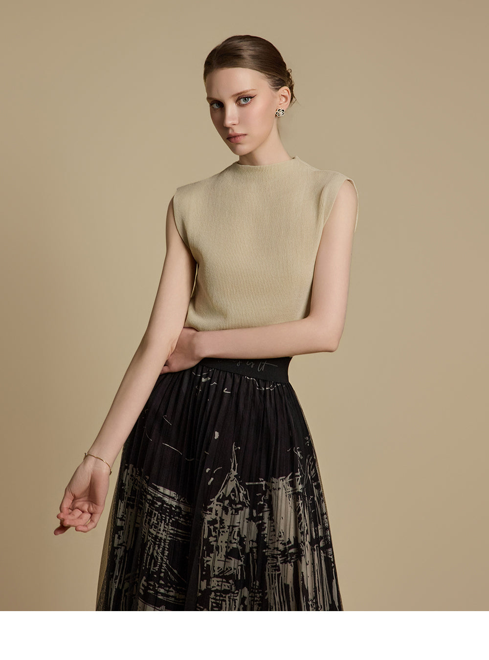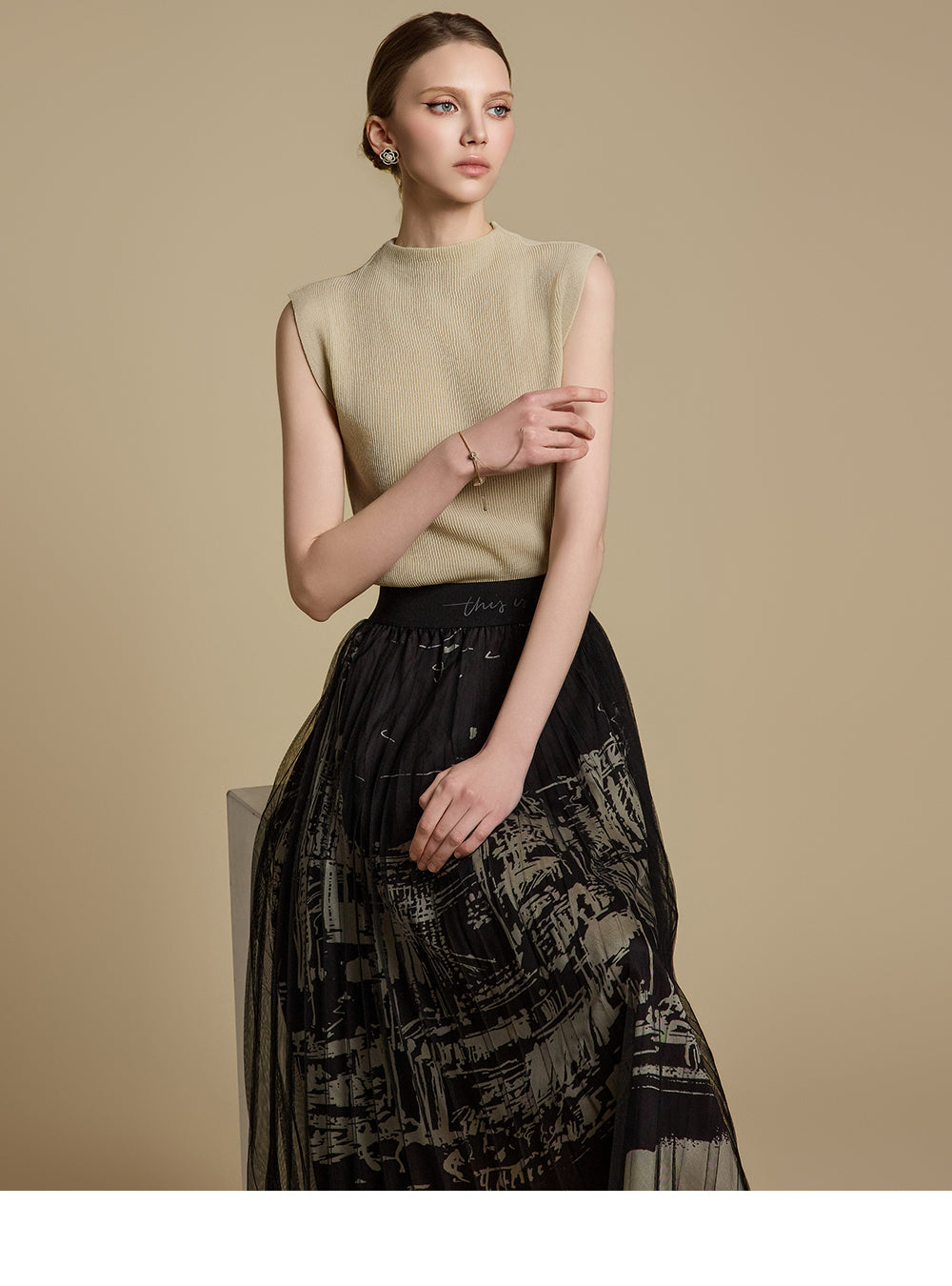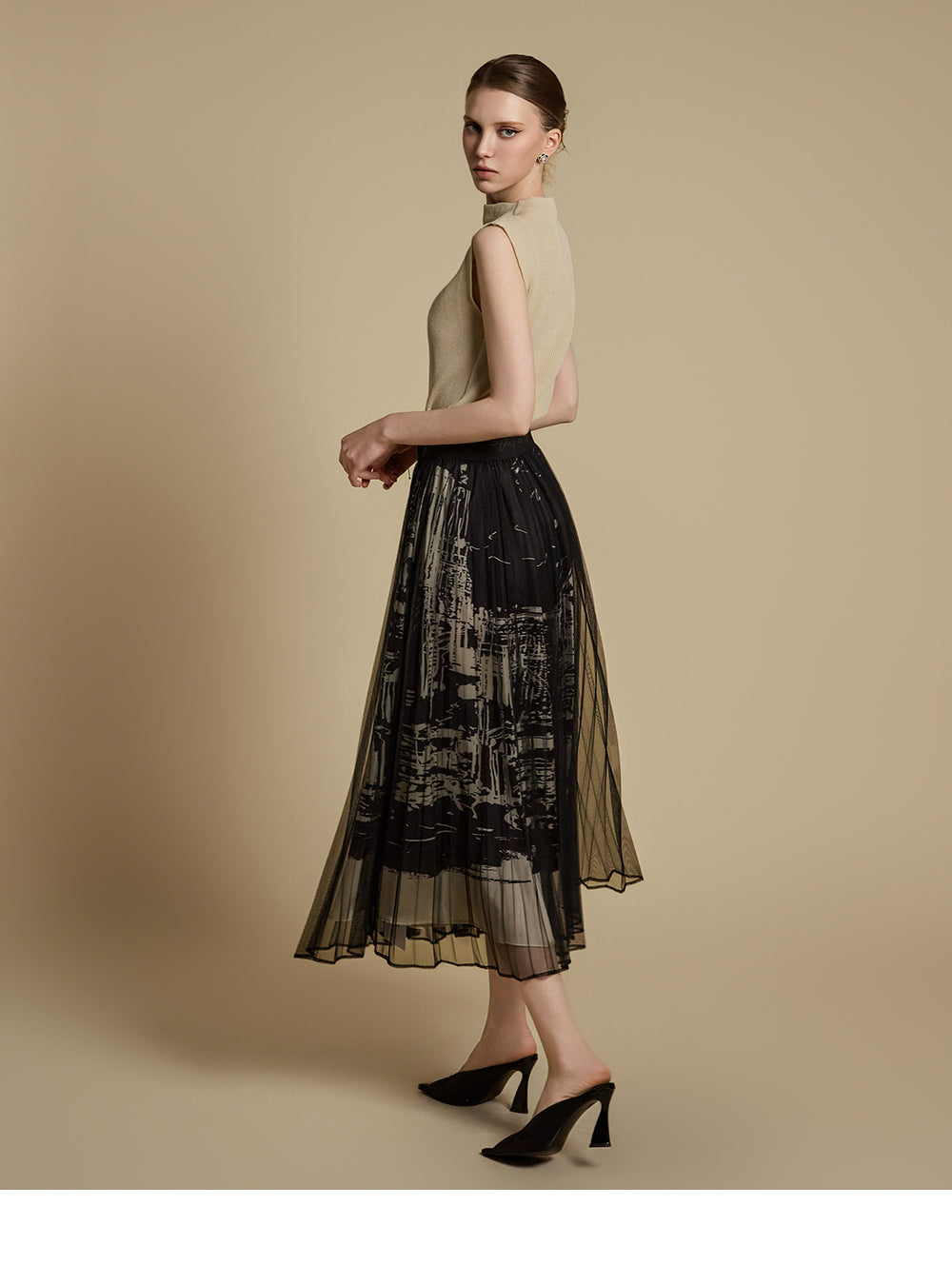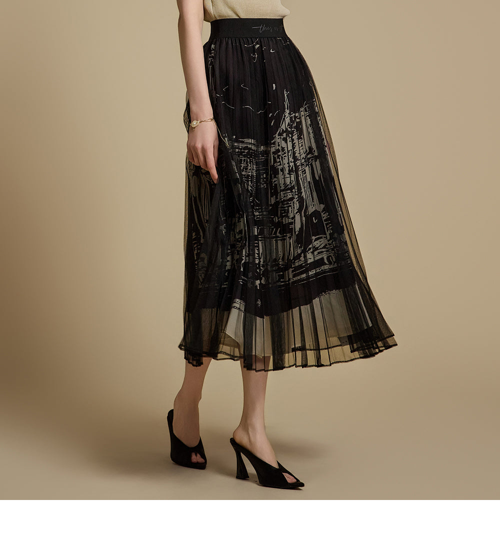 洗練されたスタイリッシュな印象を与えるプリント柄プリーツスカートです。