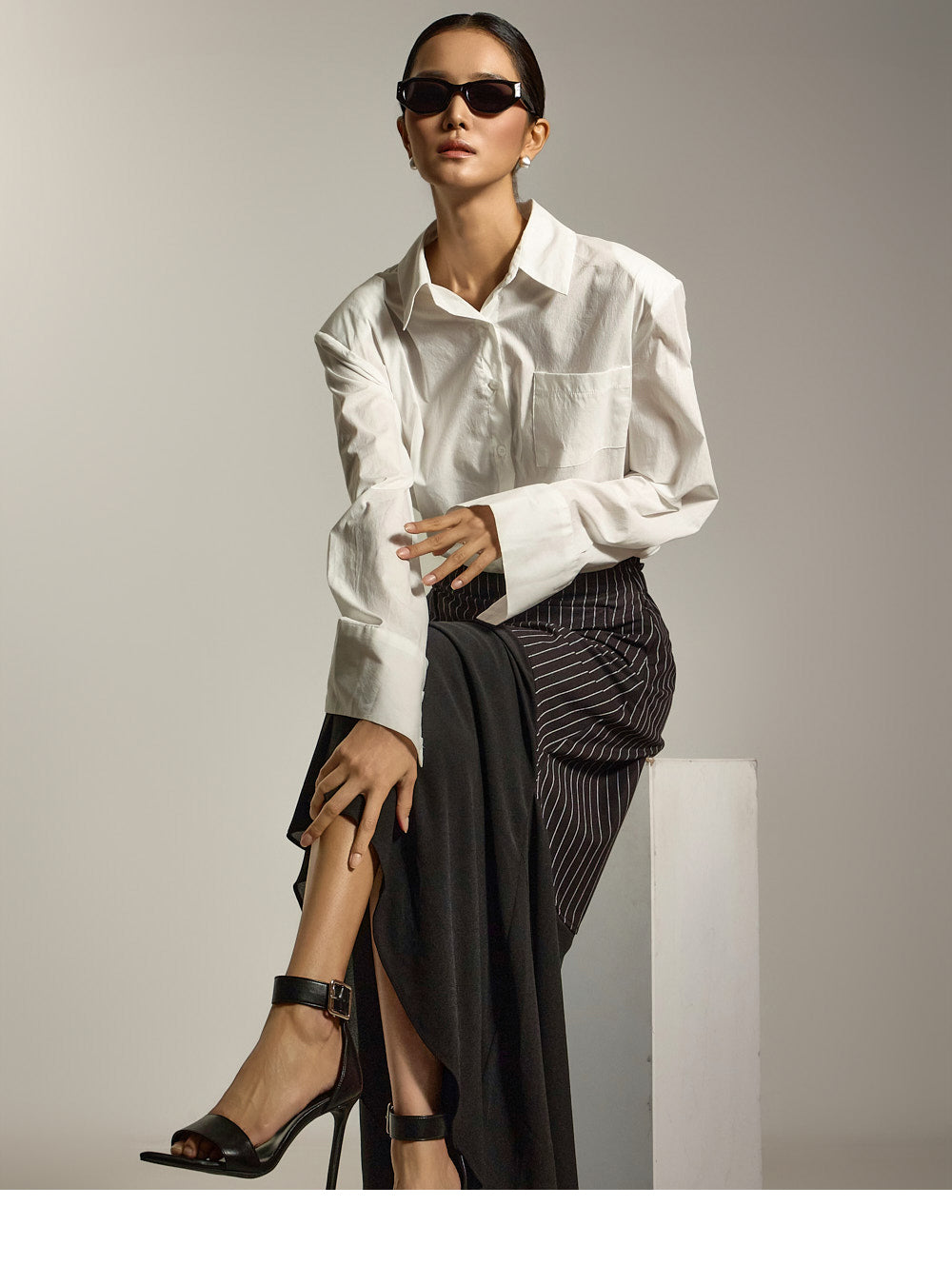 コントラストのディテールが洗練された、主張のあるスタイルを生み出します。