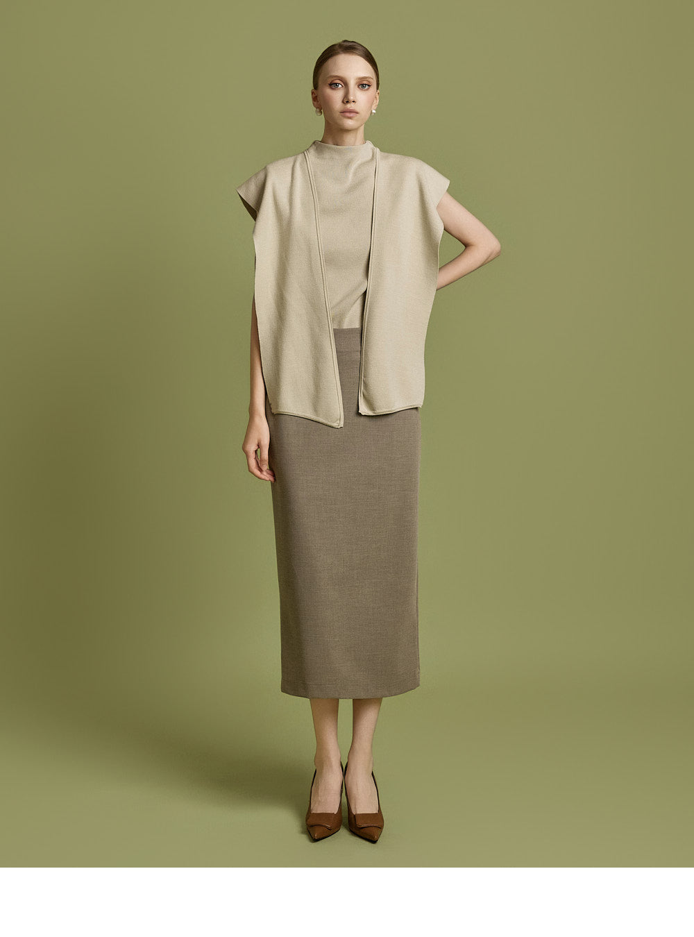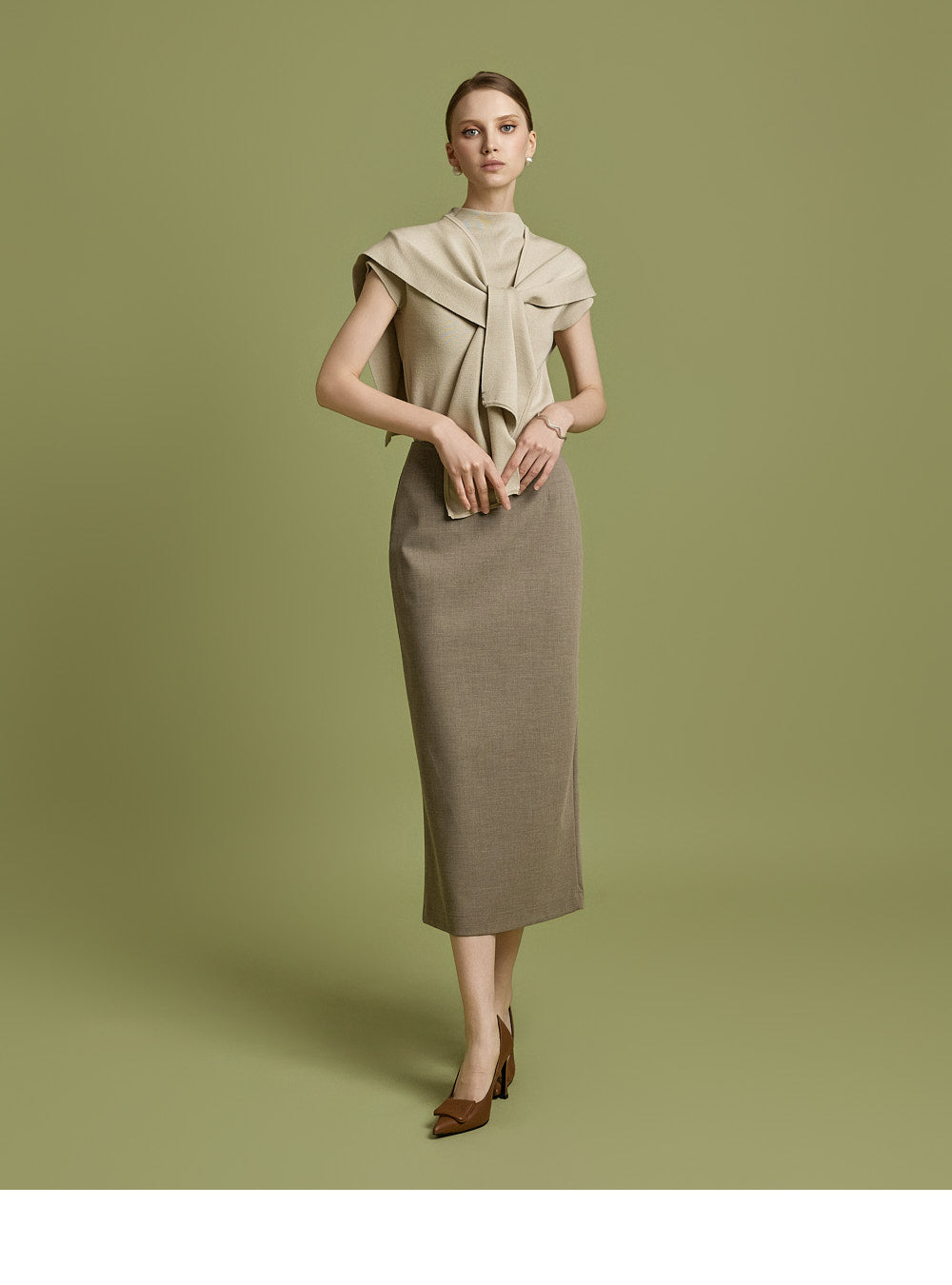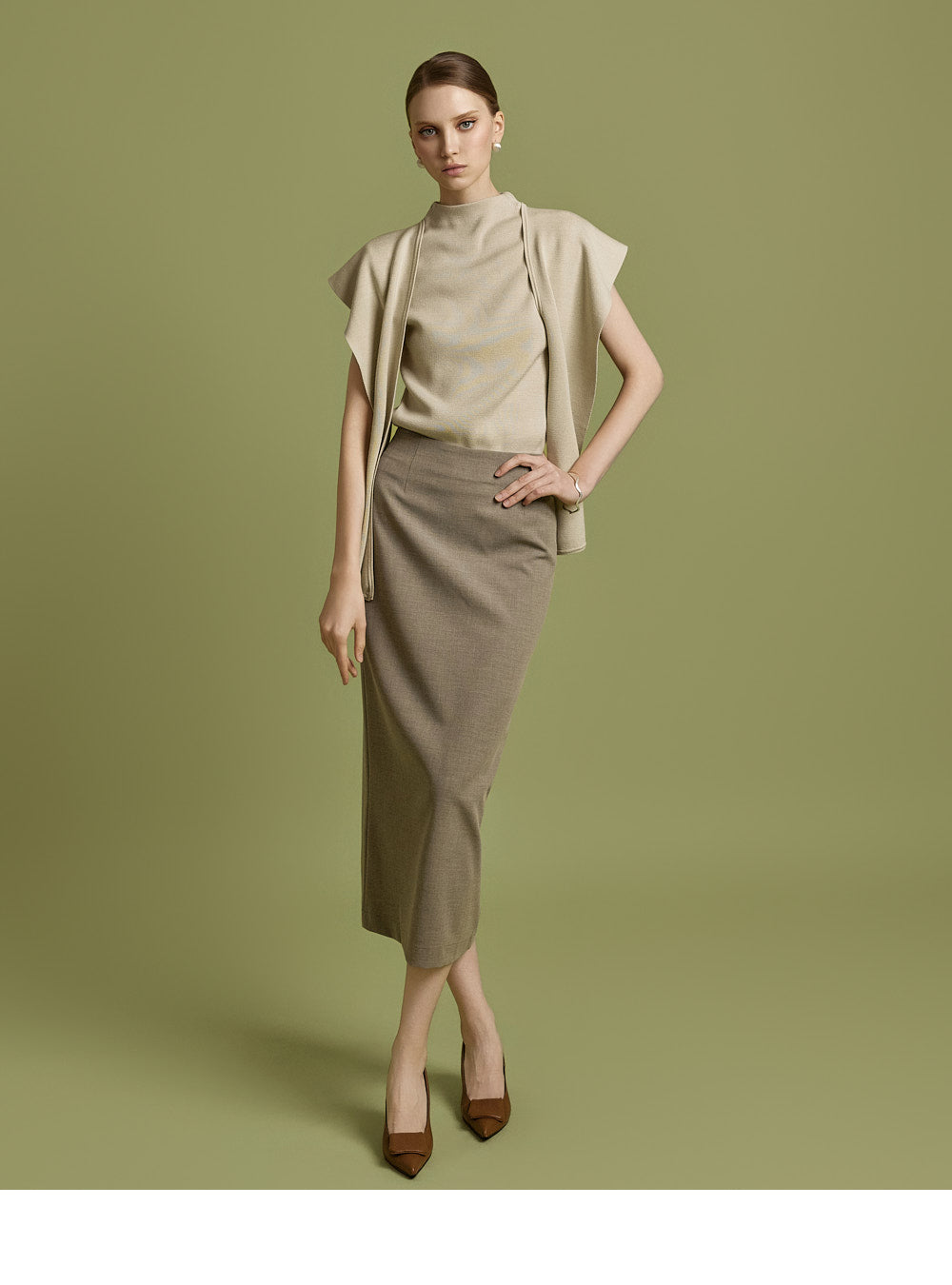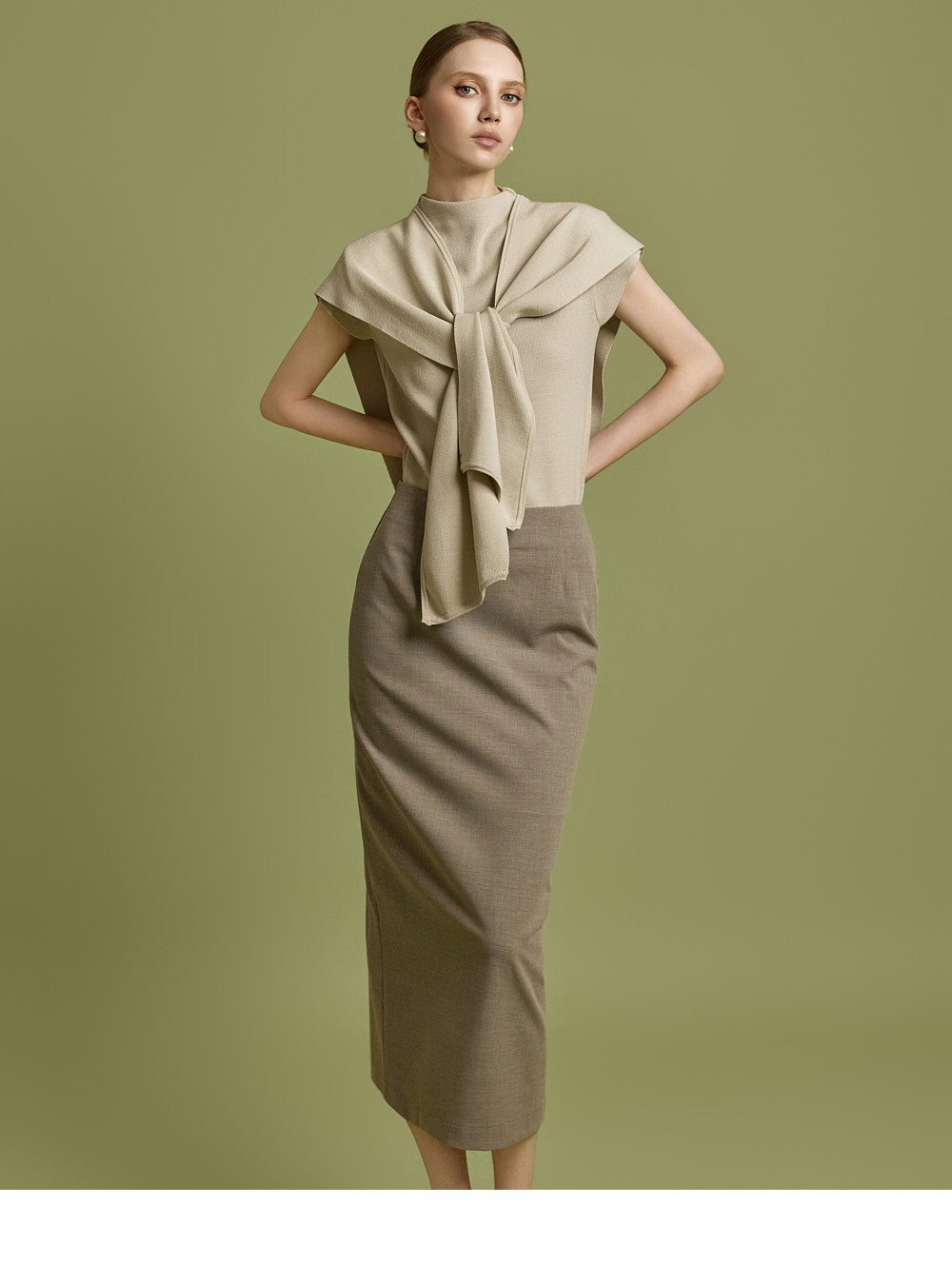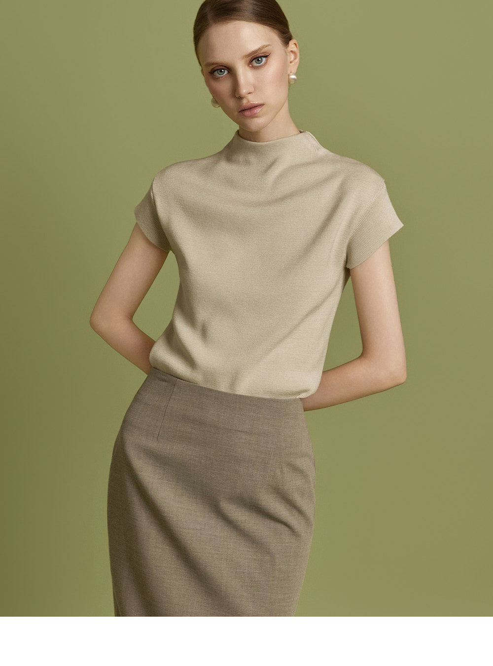Model is 174cm tall and wearing size S in BEIGE.