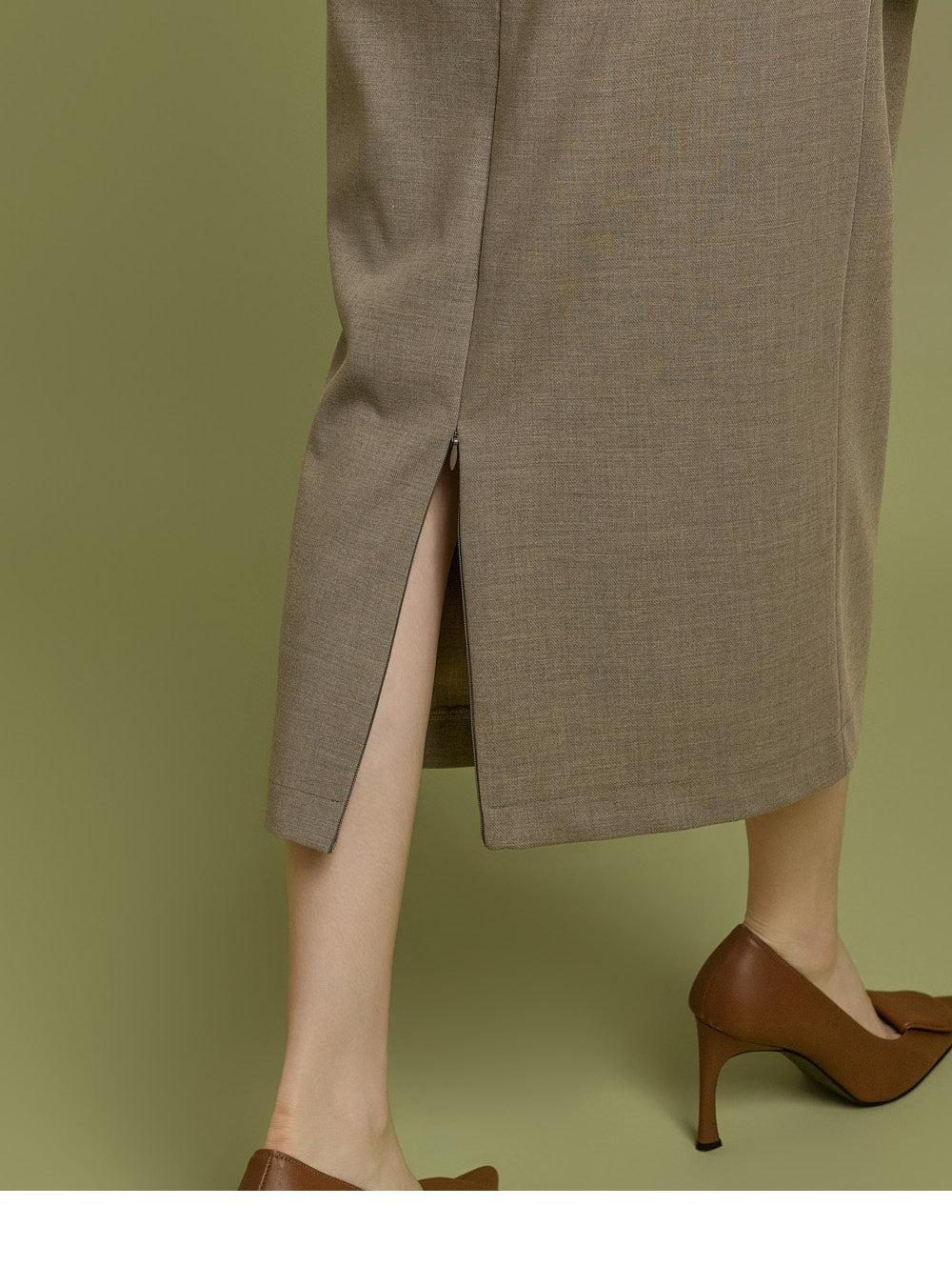 The back slit features a zipper for adjustable closure,