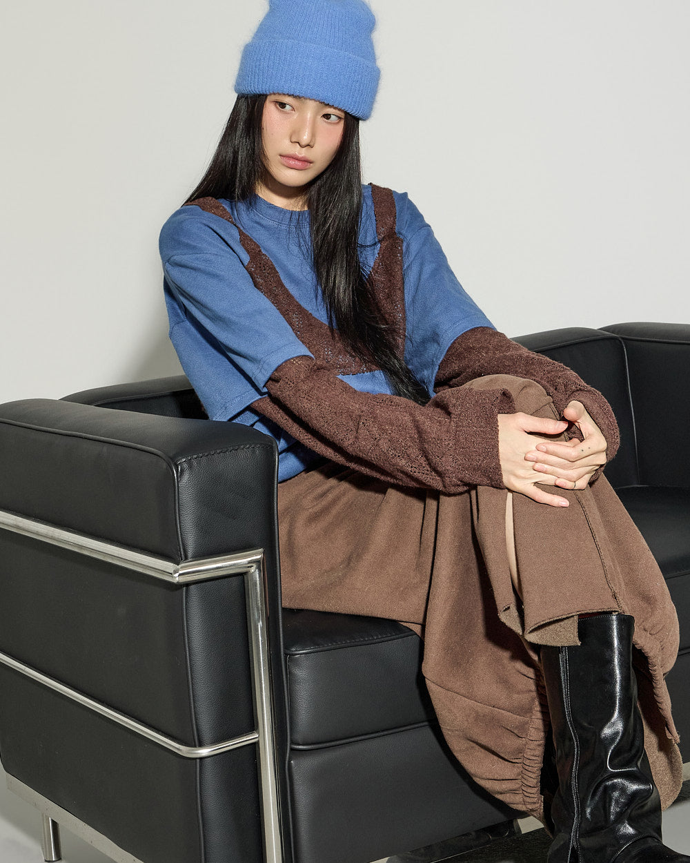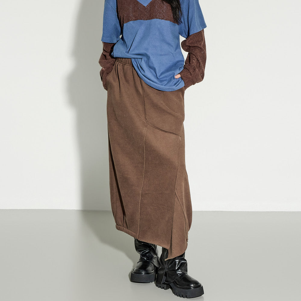 A casual asymmetric fleece-lined skirt with a relaxed mood.