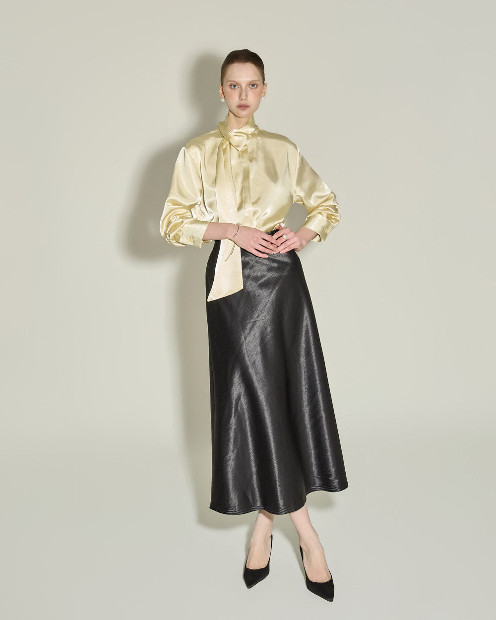 Model is 174cm tall and wearing size S in BLACK.