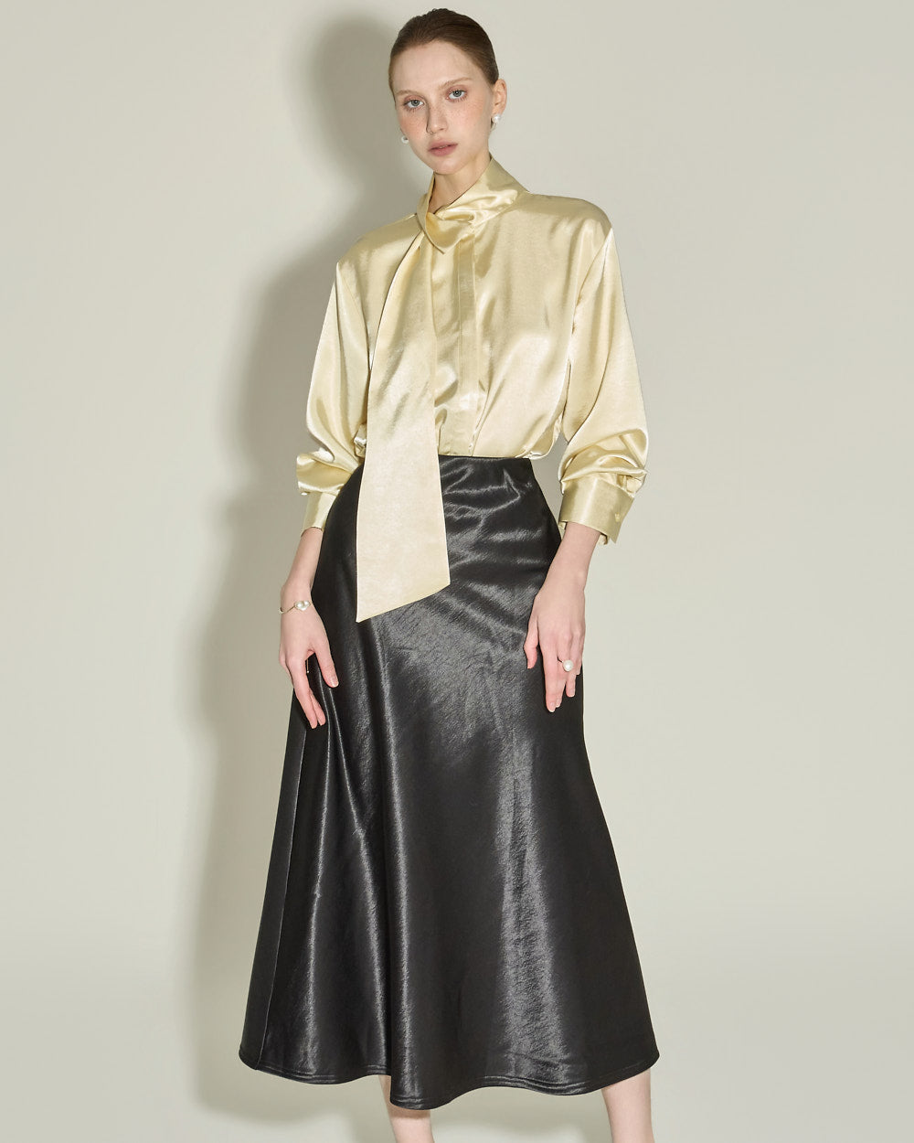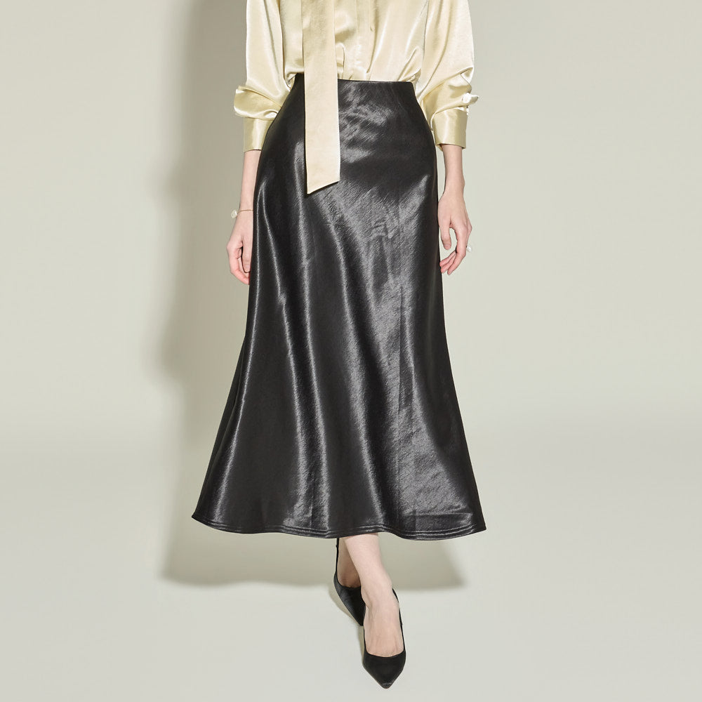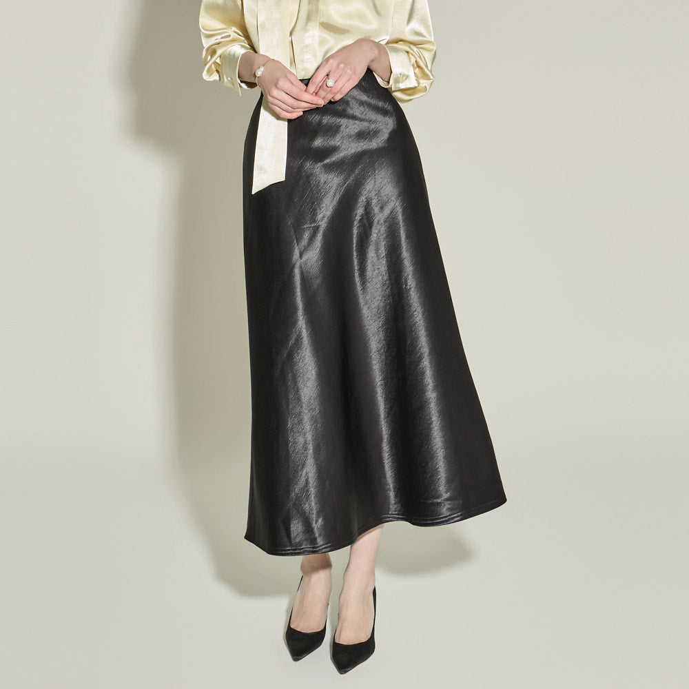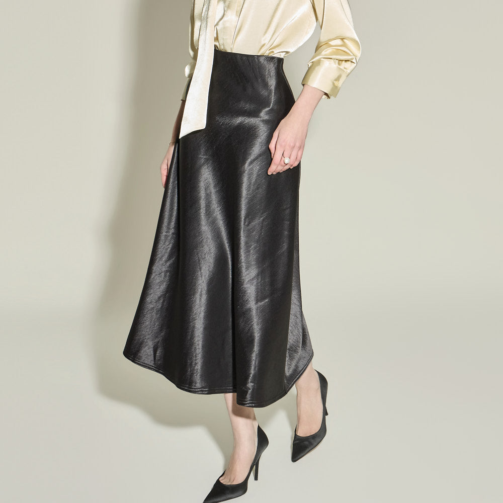This glossy fleece skirt exudes an elegant vibe.