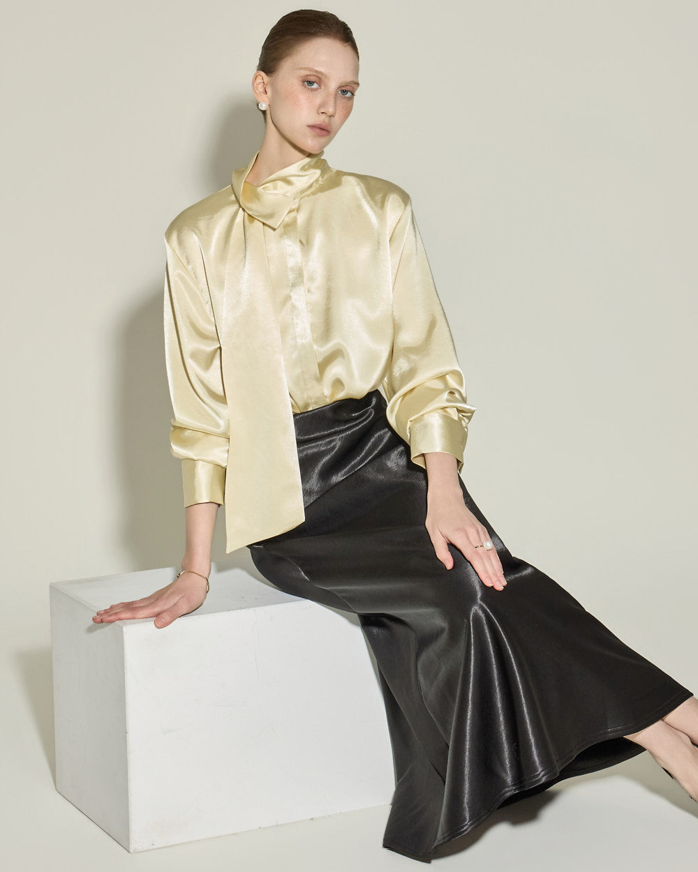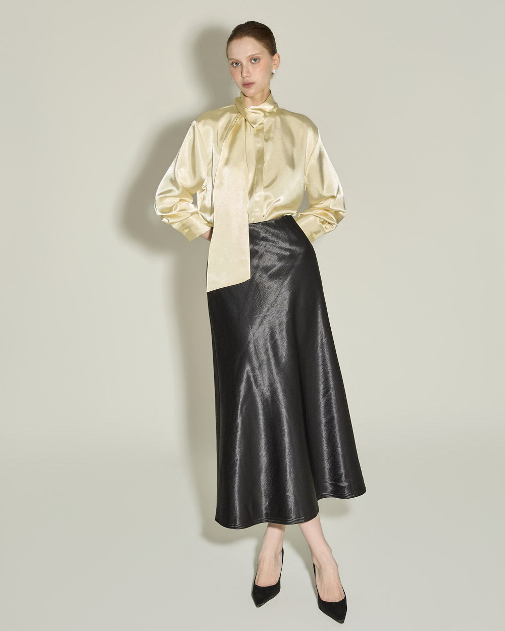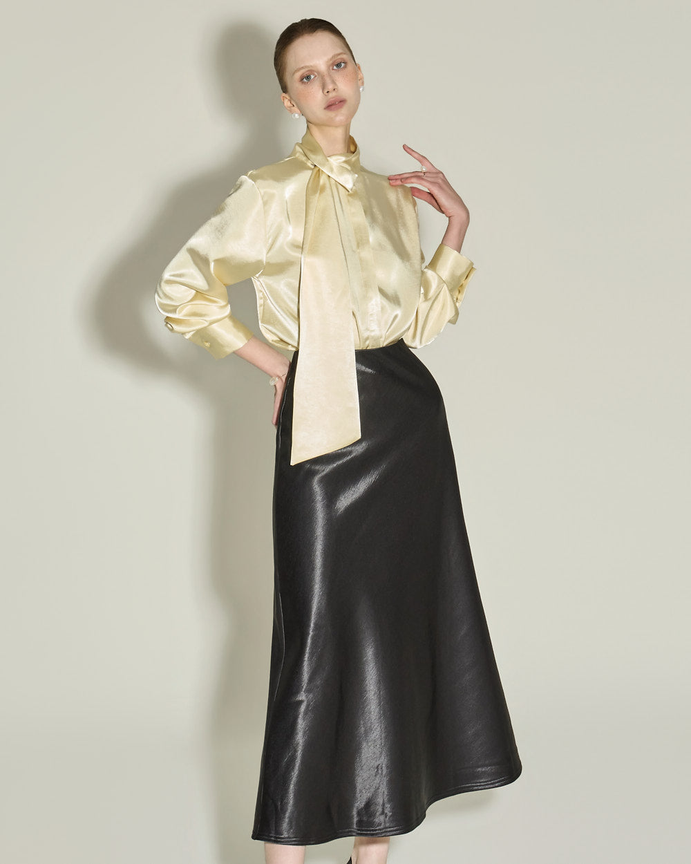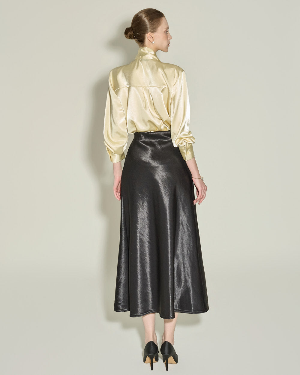 This glossy fleece skirt exudes an elegant vibe.