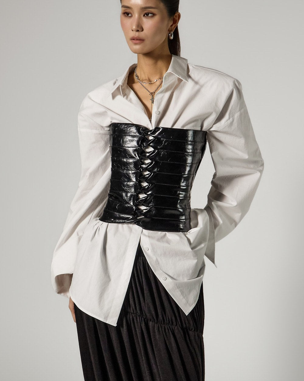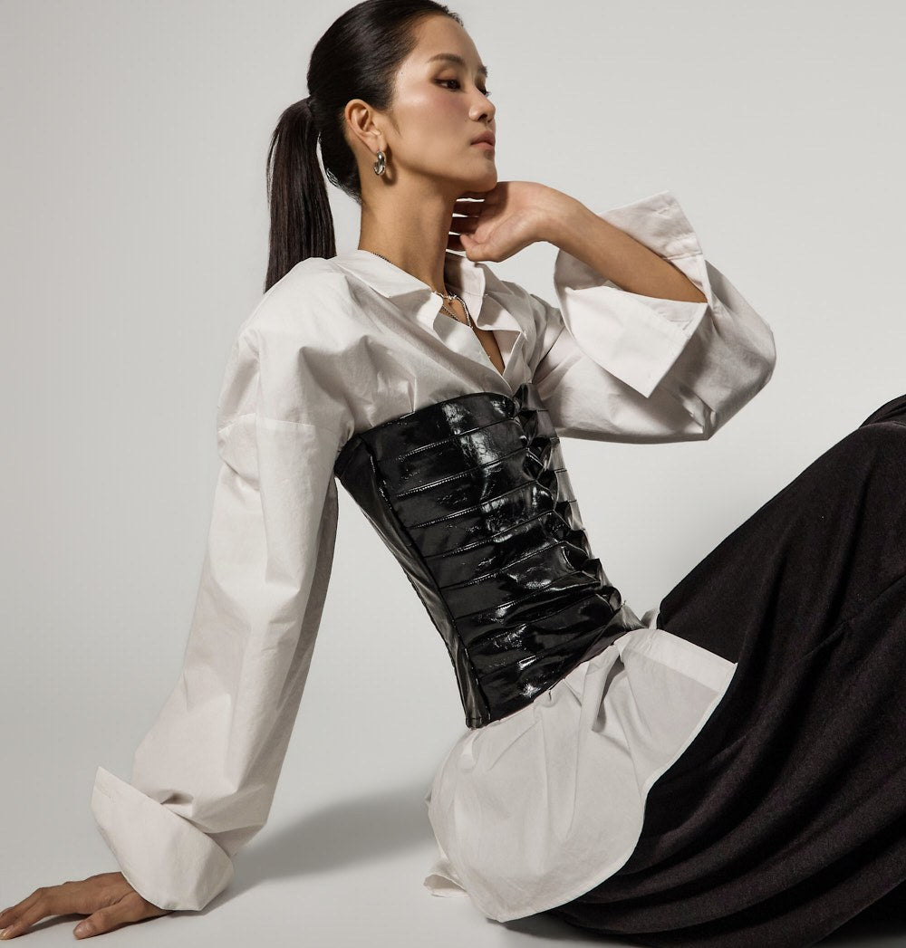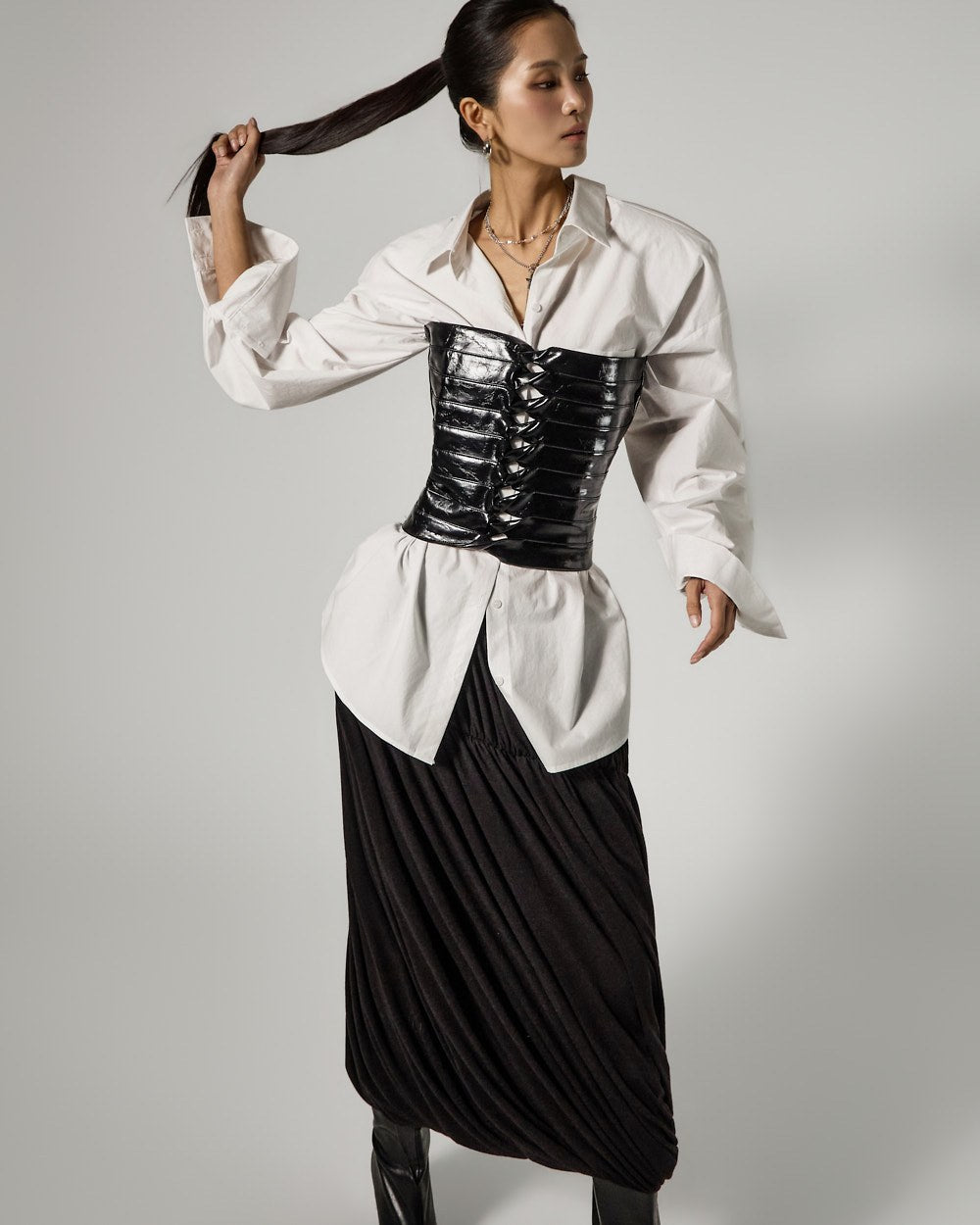 This unique rune shirring skirt is perfect for styling as a statement piece.