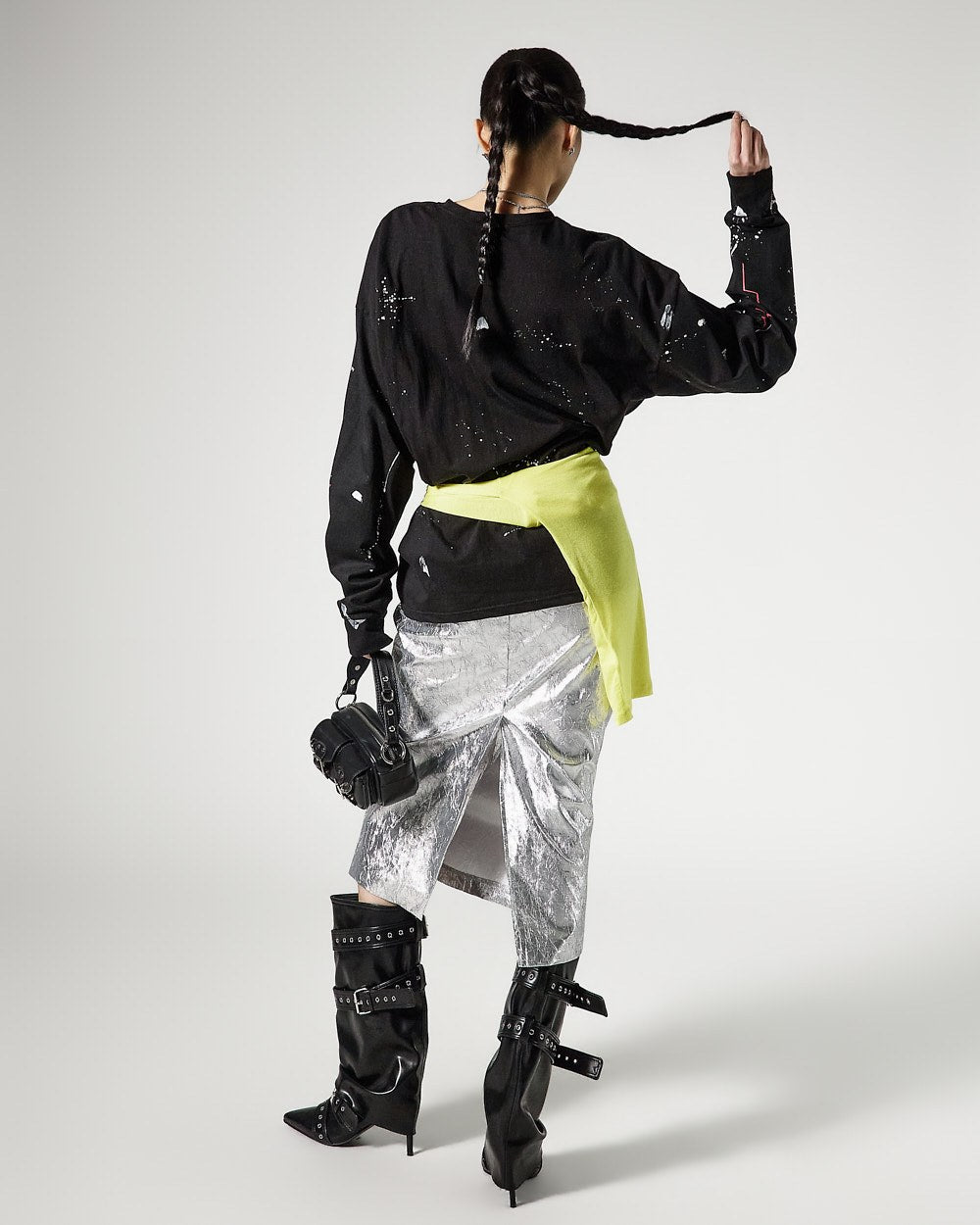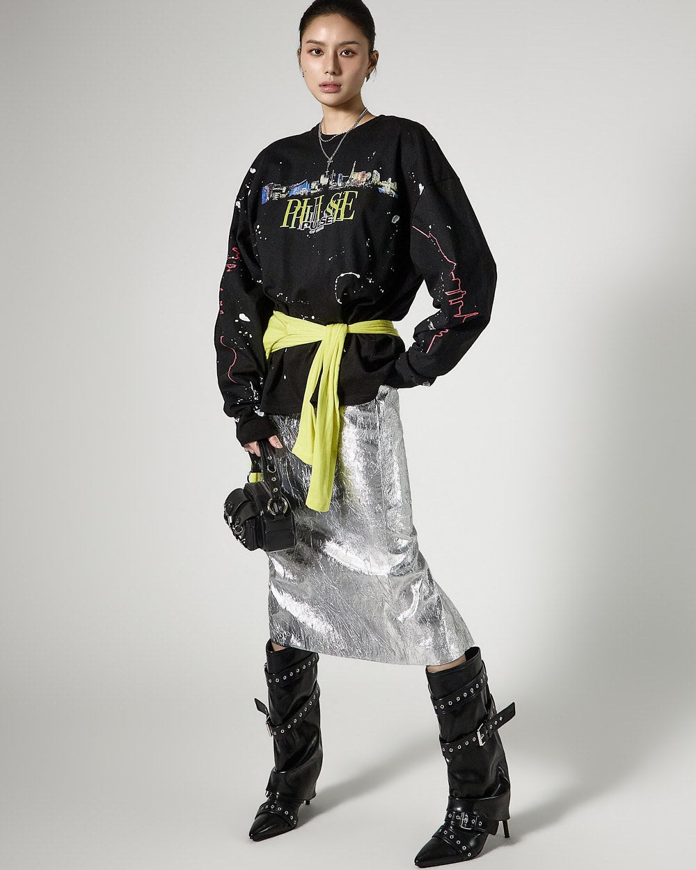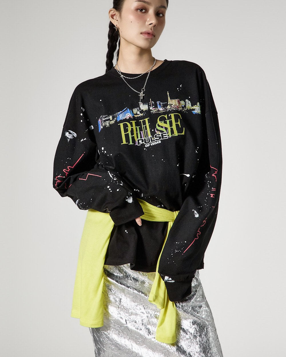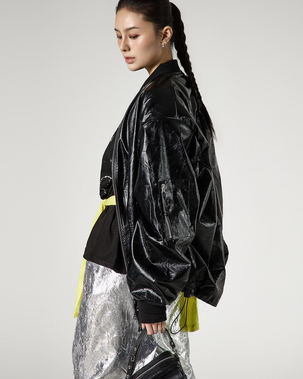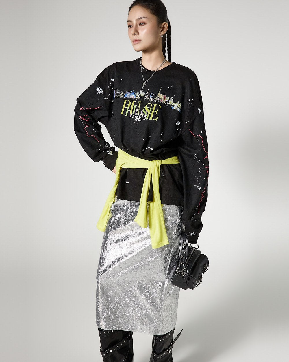 モデルは身長171cmで、シルバーカラーのONEサイズを着用しています。