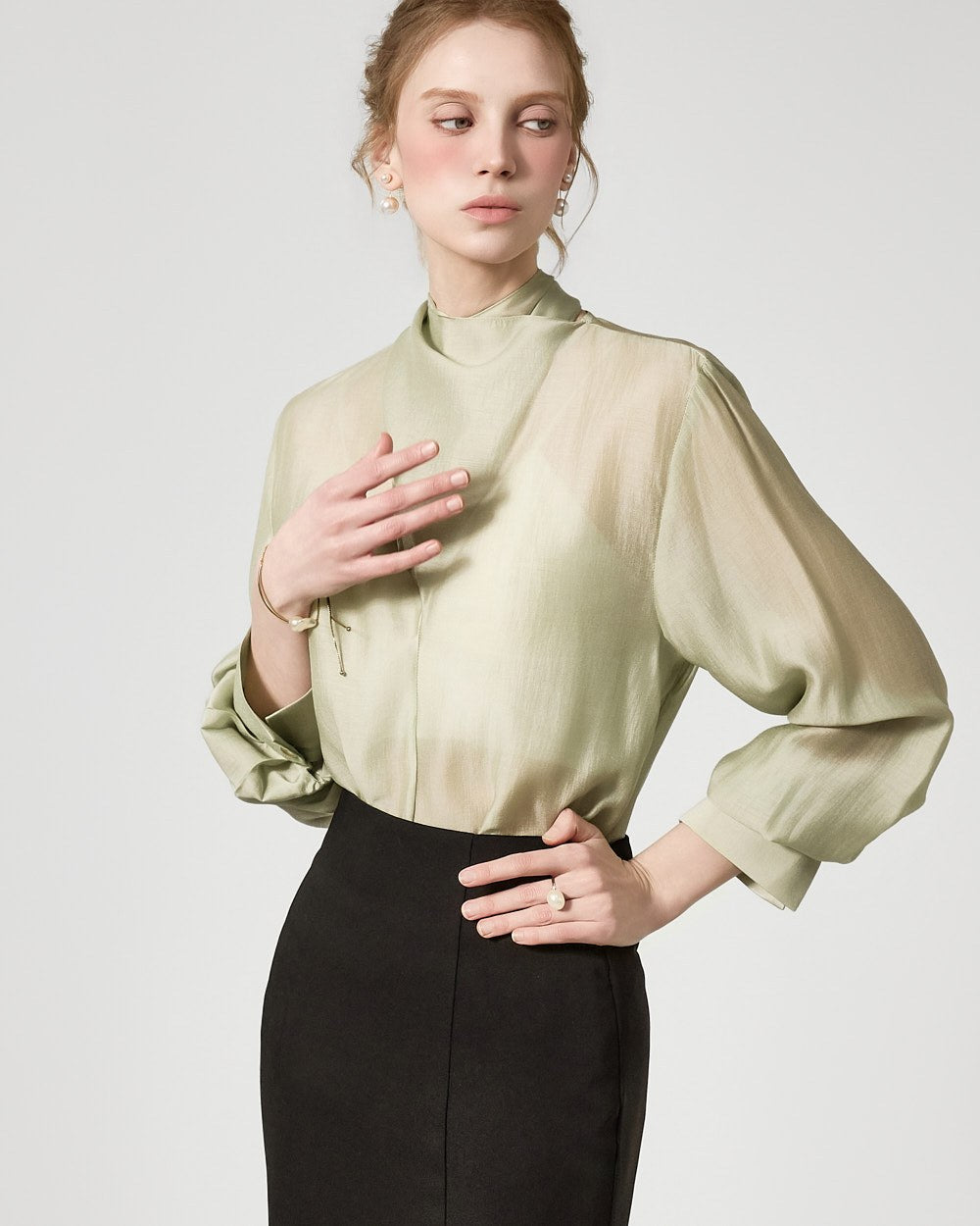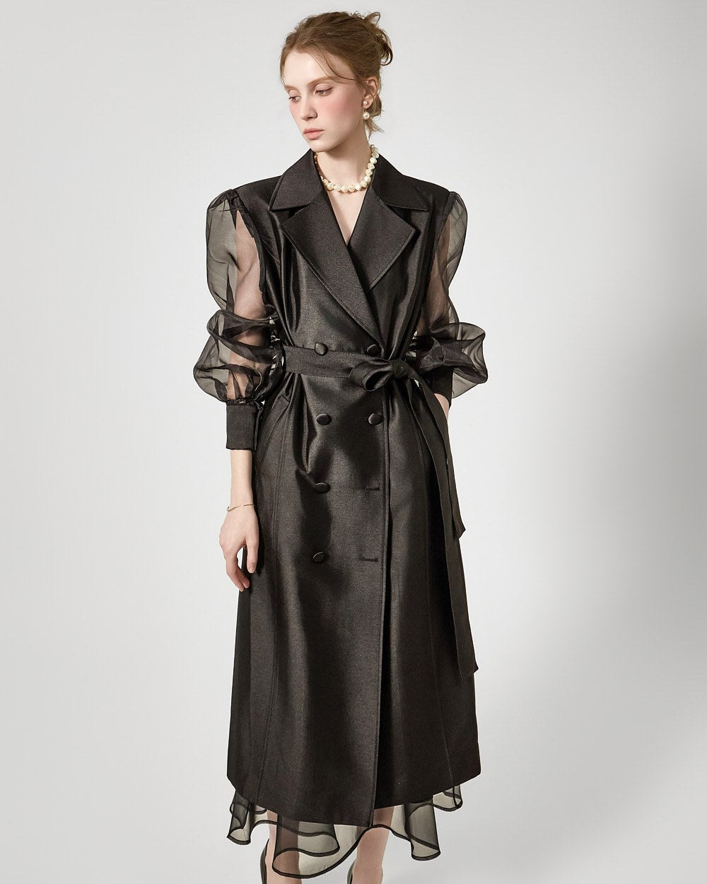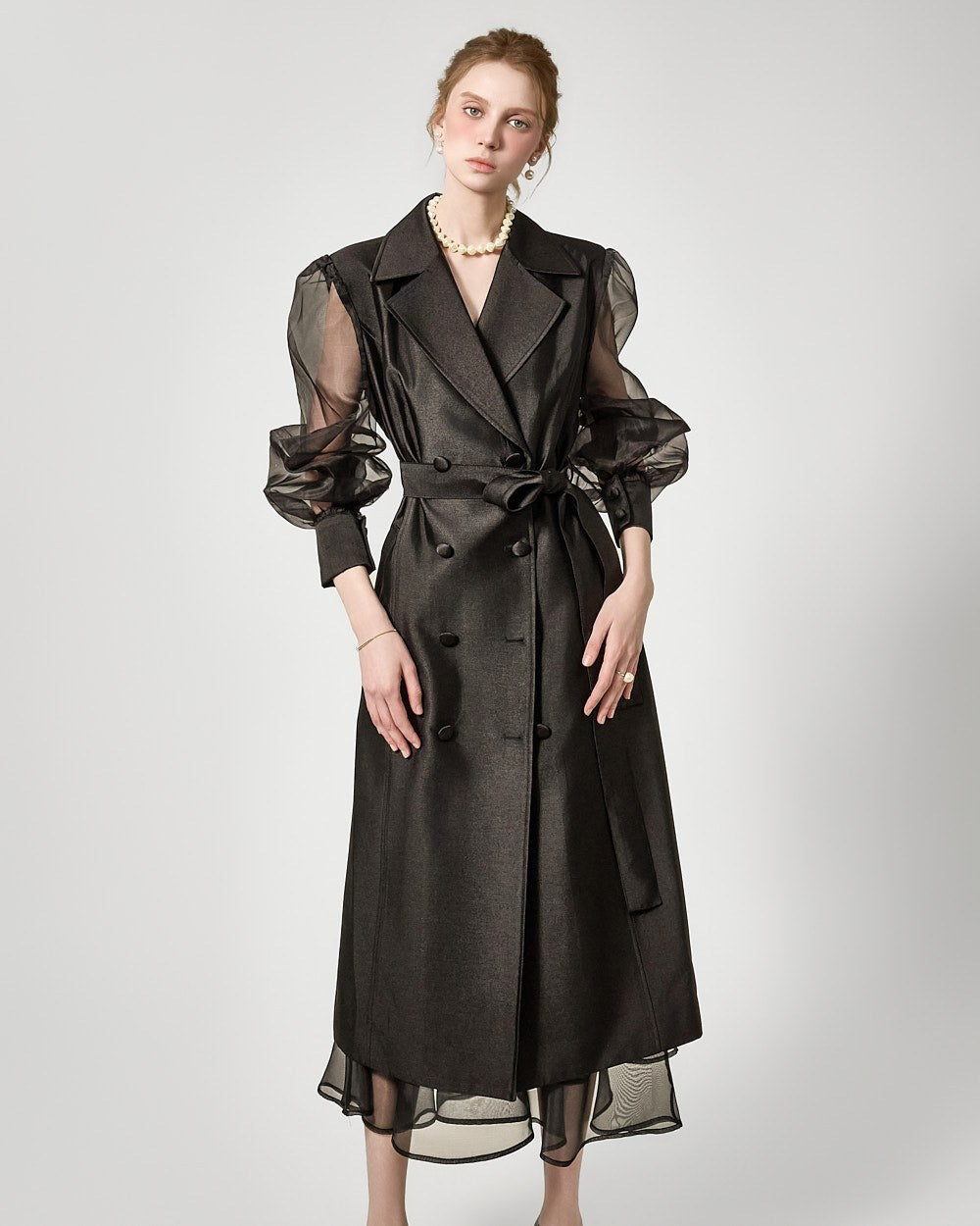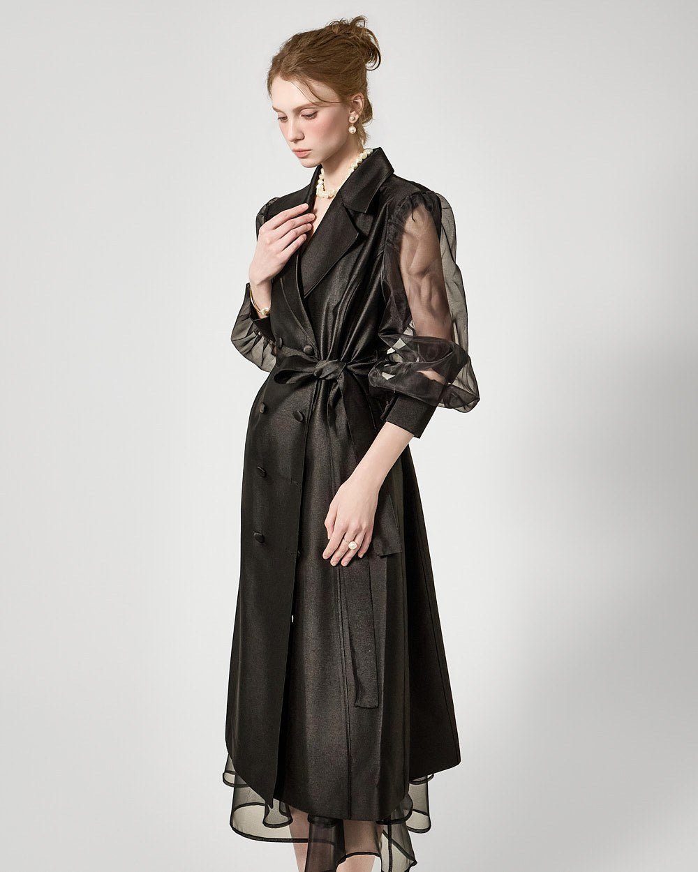 バックジッパーの開閉部には、さりげないシースルーディテールがアクセントになっています。