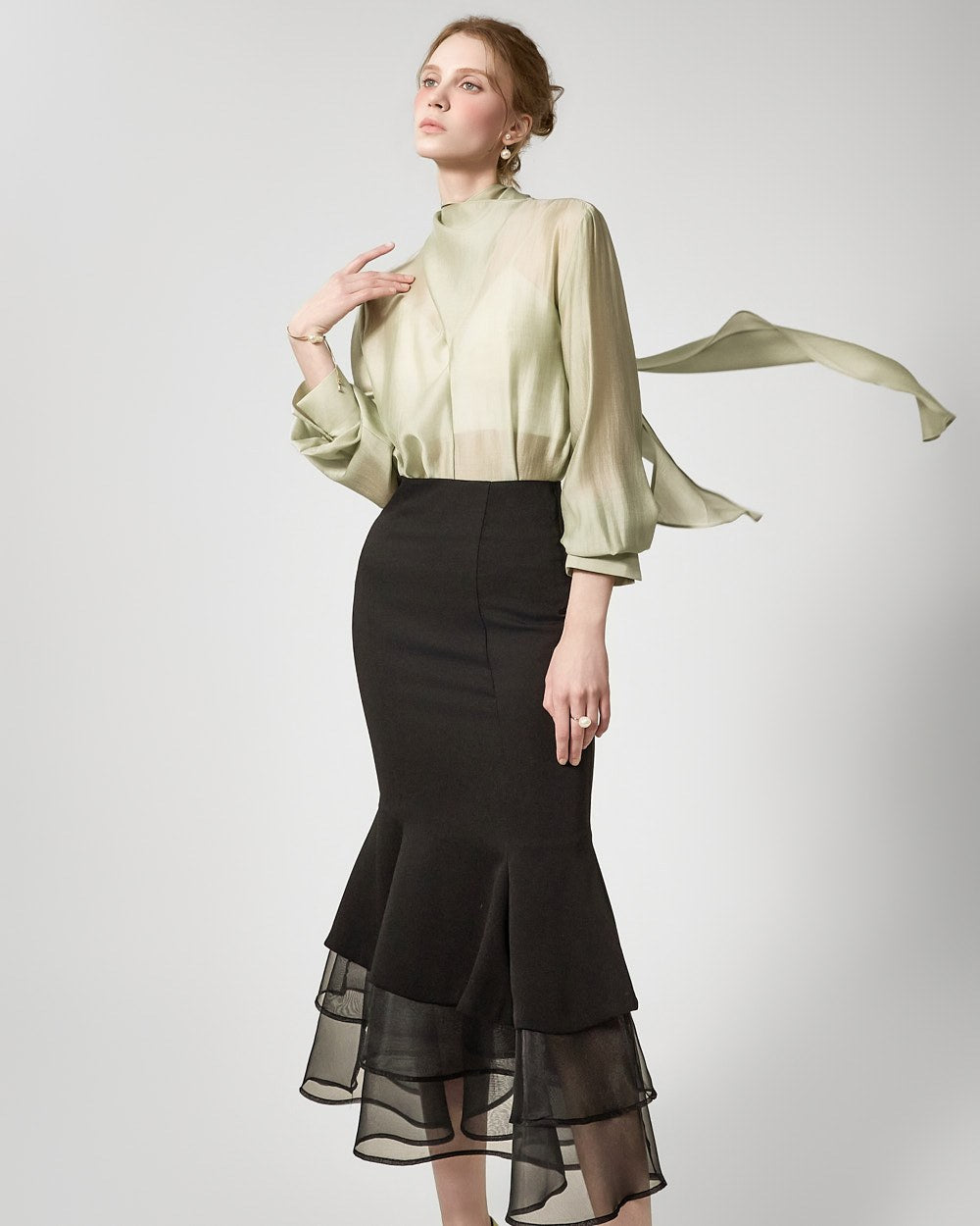 エレガントな雰囲気のシースルーマーメイドスカートです。