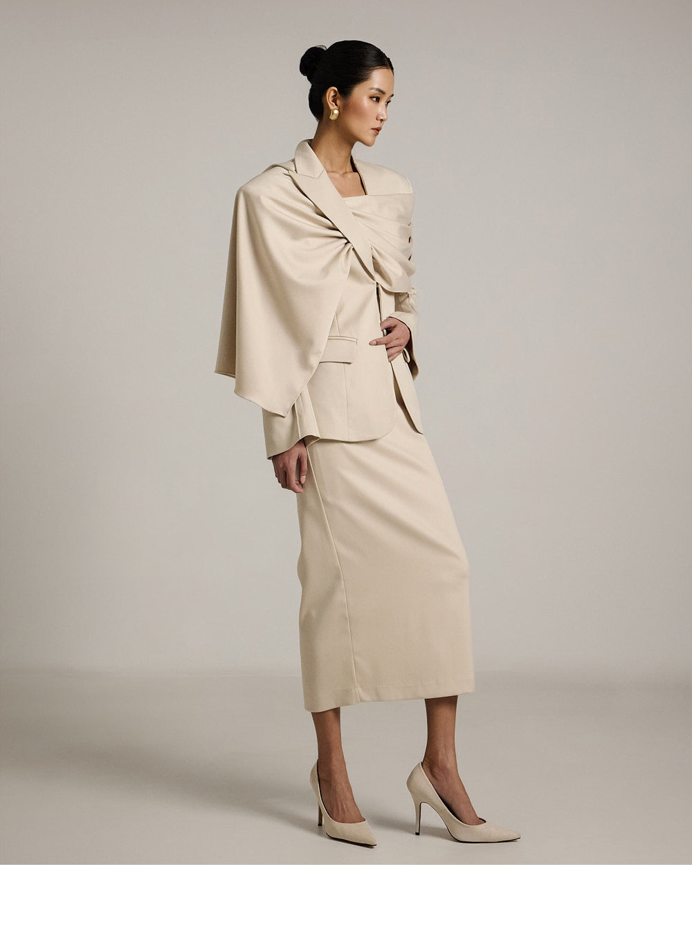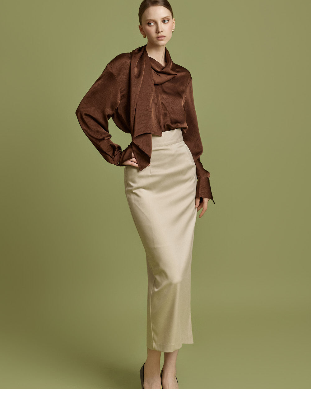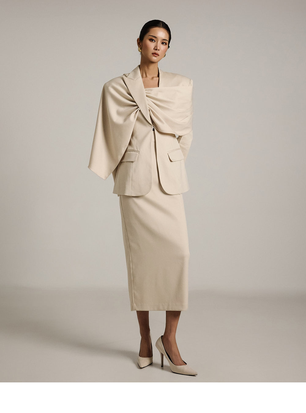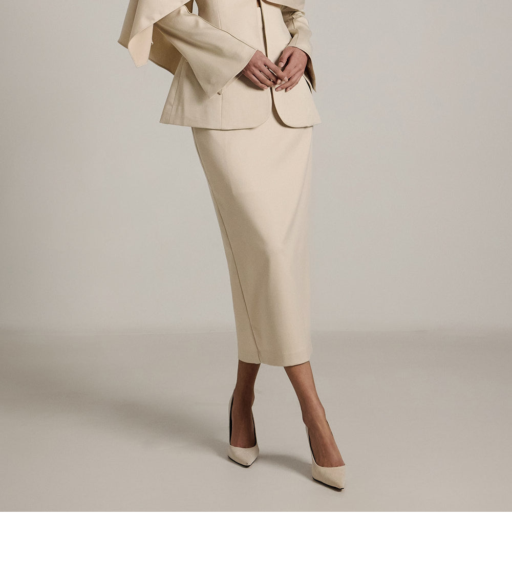 すっきりとしたHラインのシルエットがエレガントで女性らしいムードを演出します。