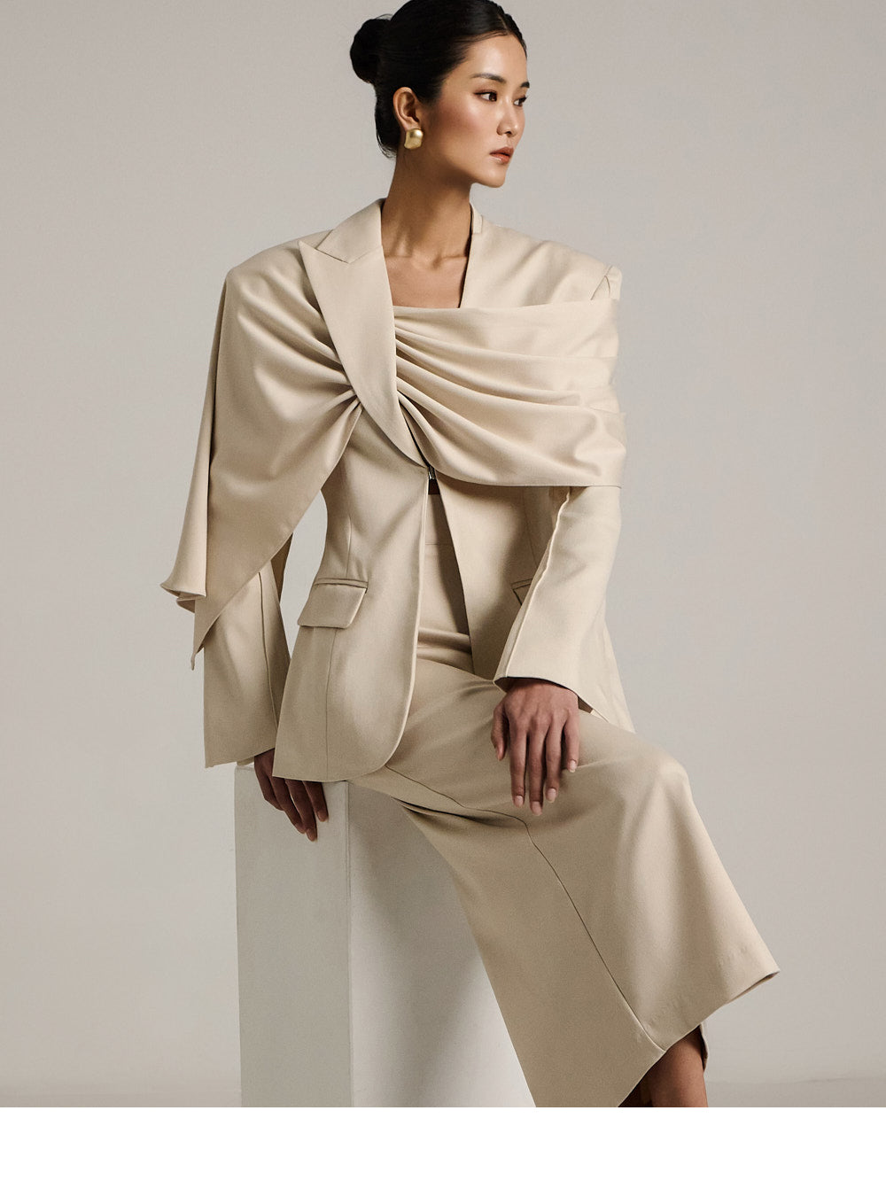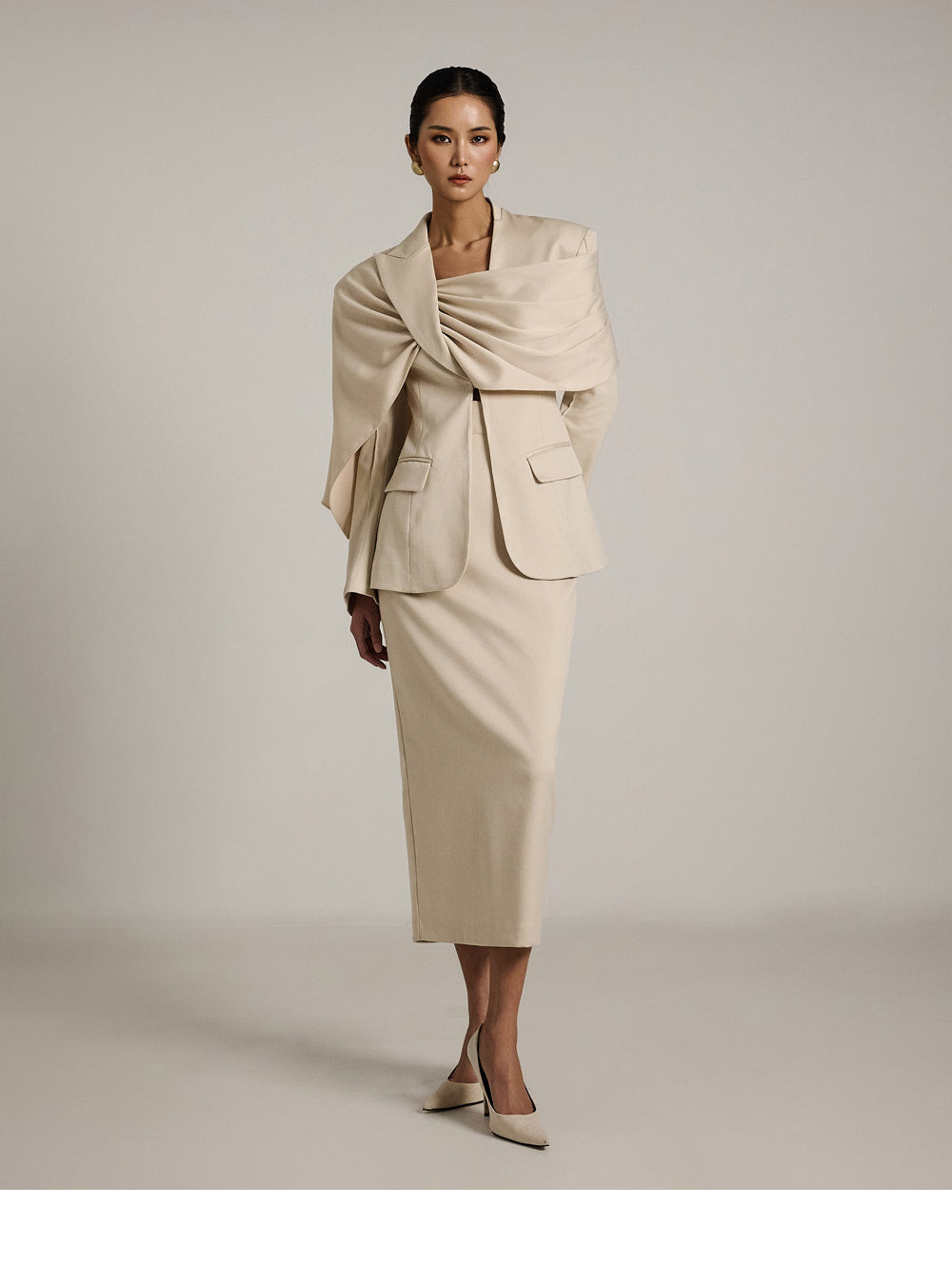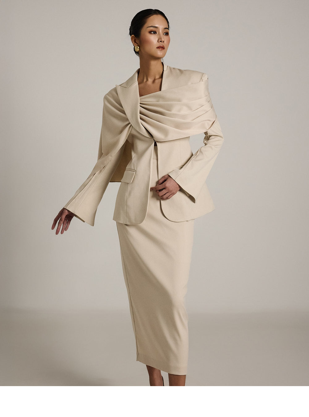 すっきりとしたHラインのシルエットがエレガントで女性らしいムードを演出します。