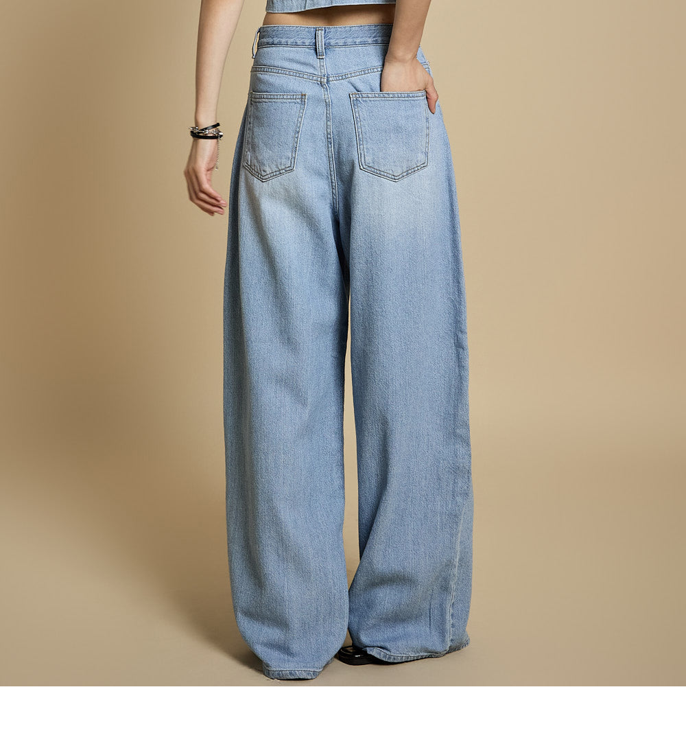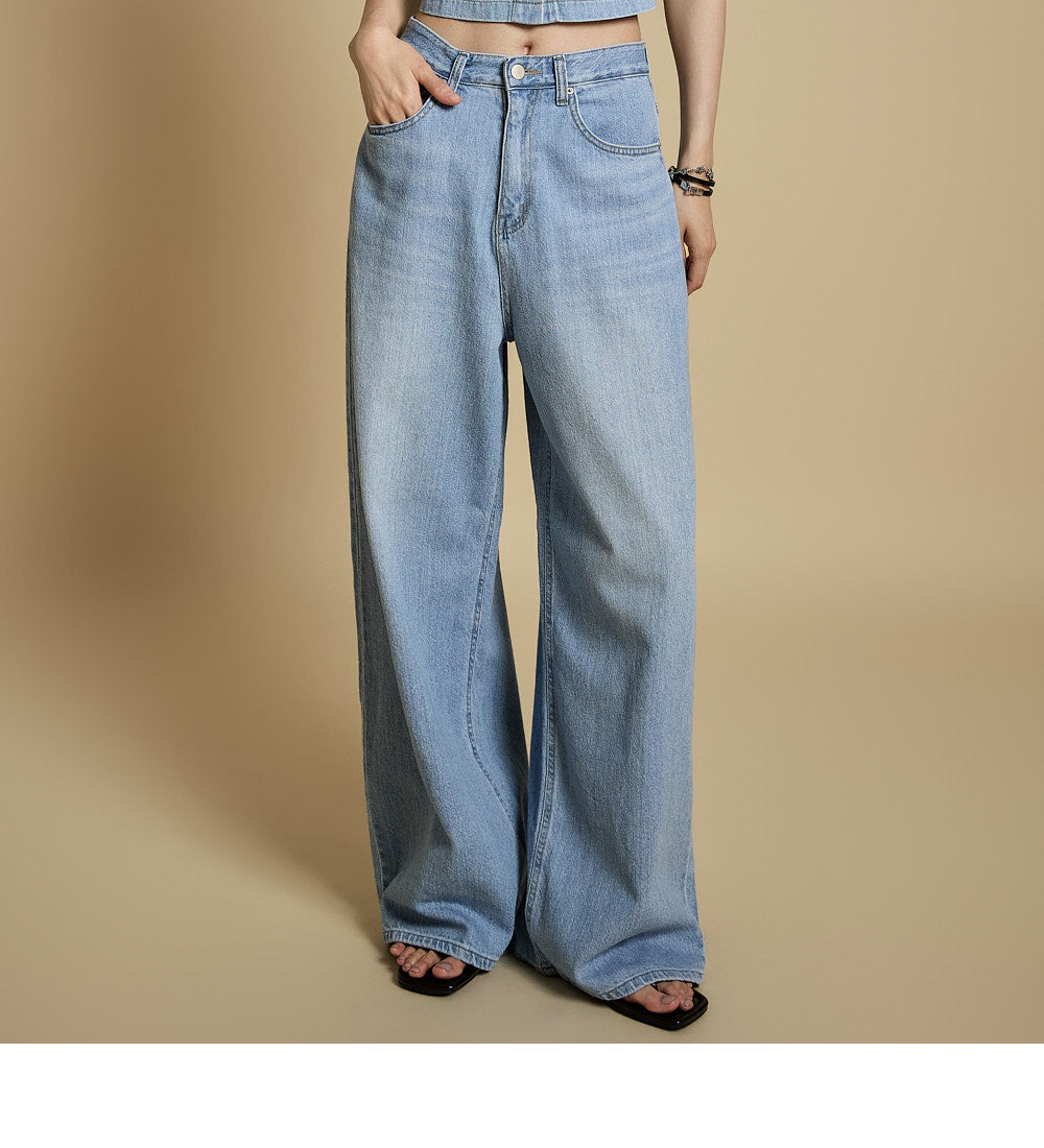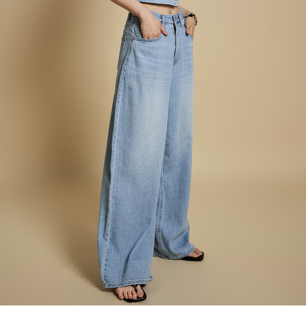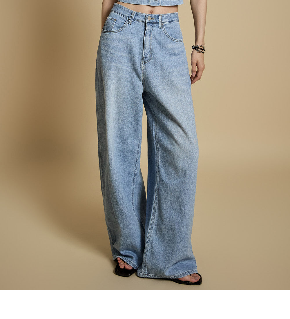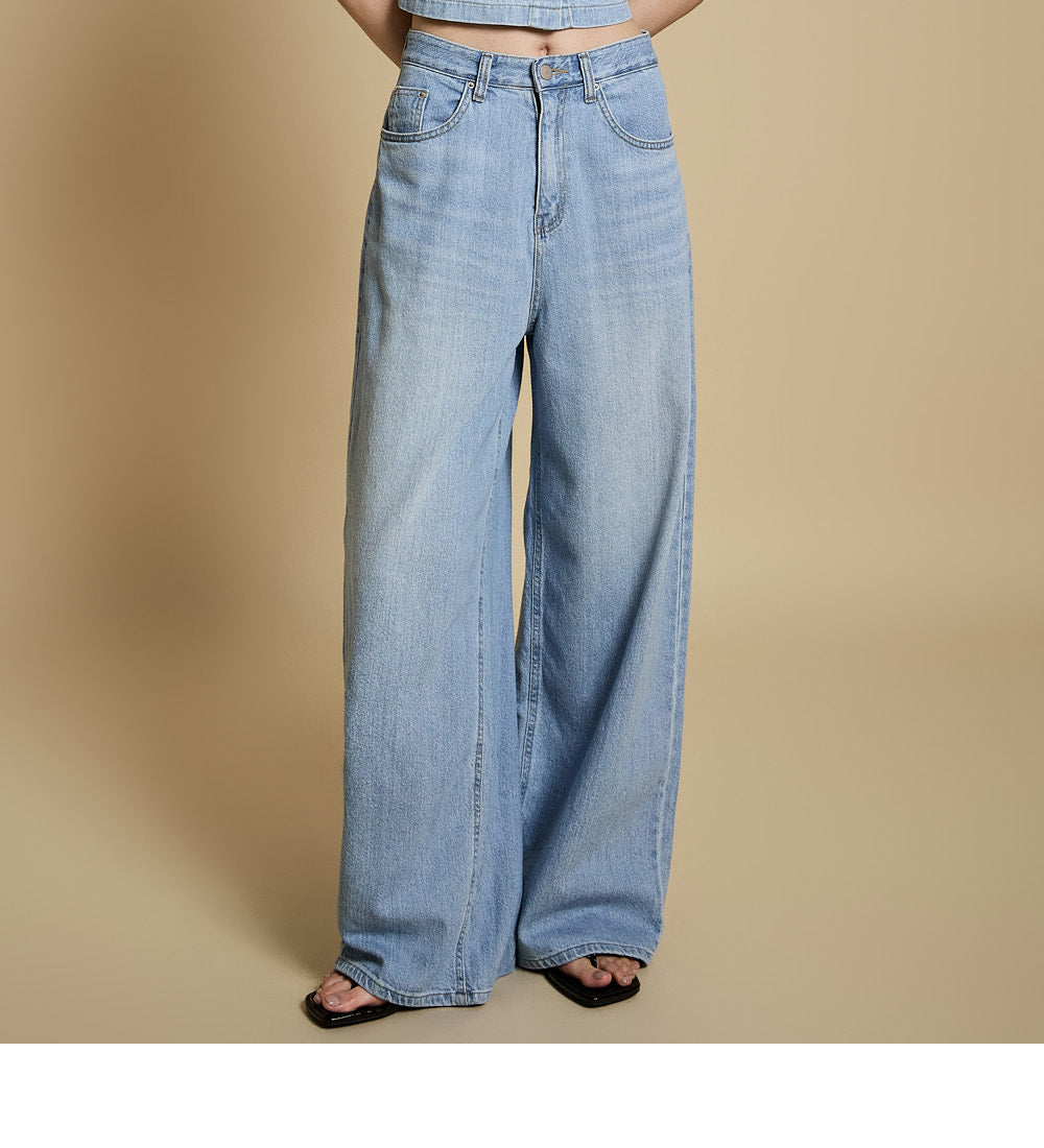 ワイドレッグデニムパンツは、脚を楽に美しく見せるリラックスしたフィット感を提供します。