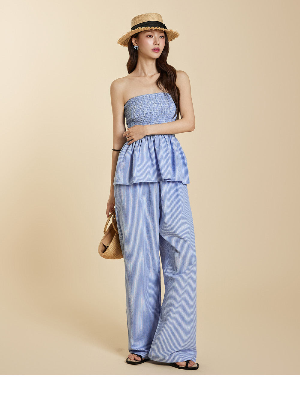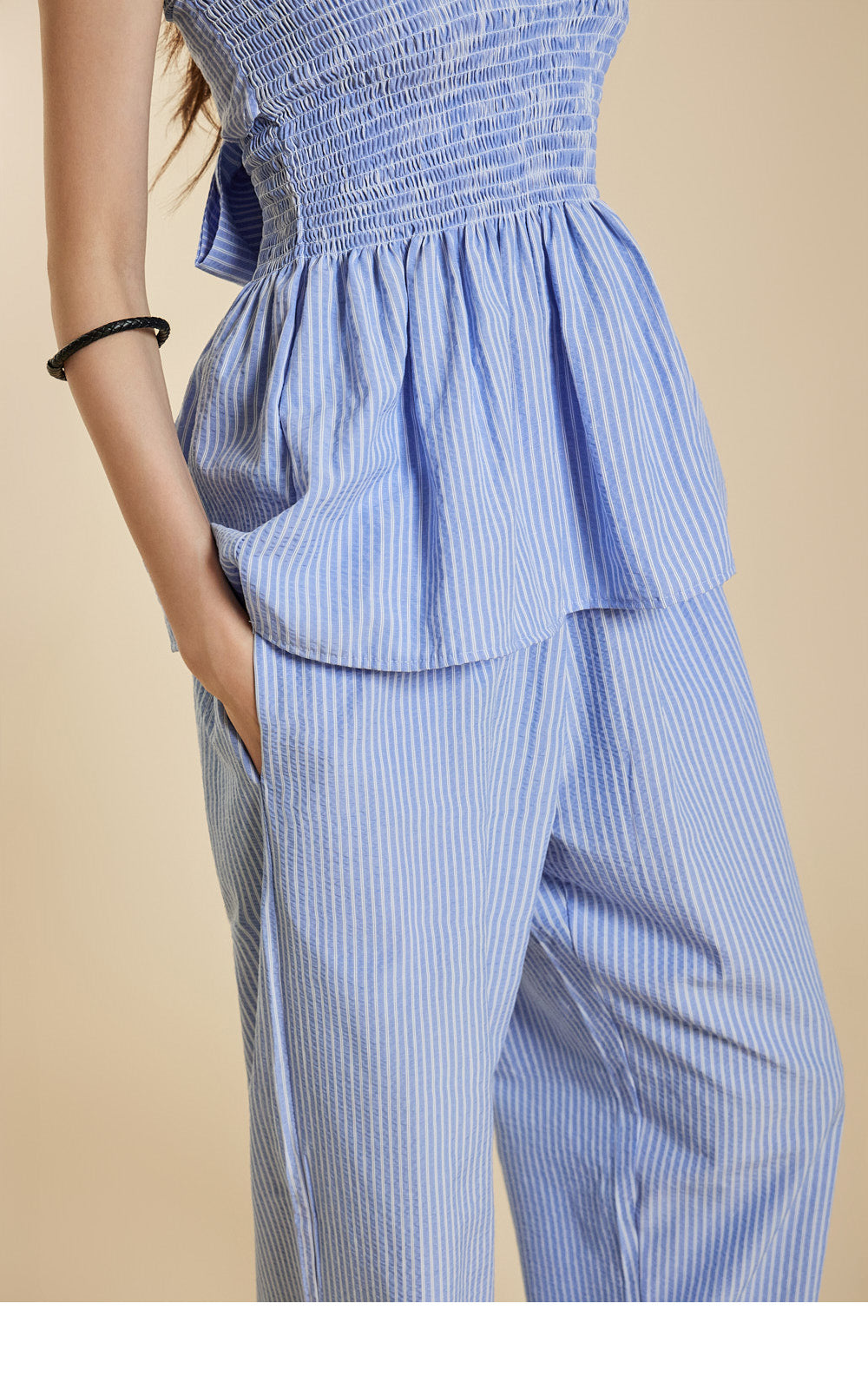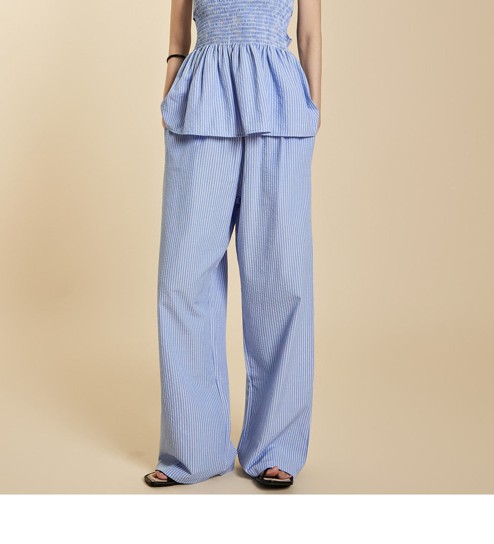 ゆったりとしたワイドレッグカットに縦縞を組み合わせた