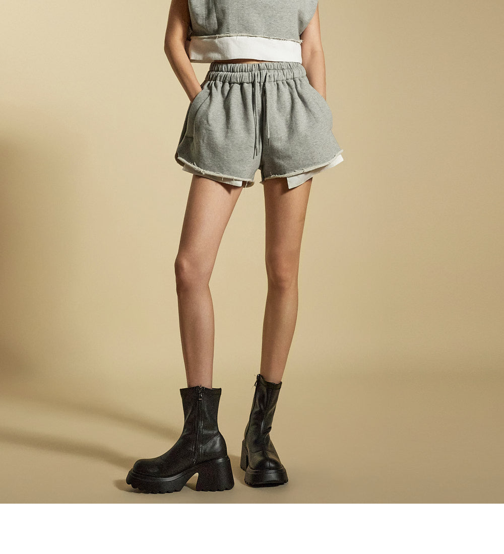 and the waist includes a drawstring with moderate stretch for added comfort.