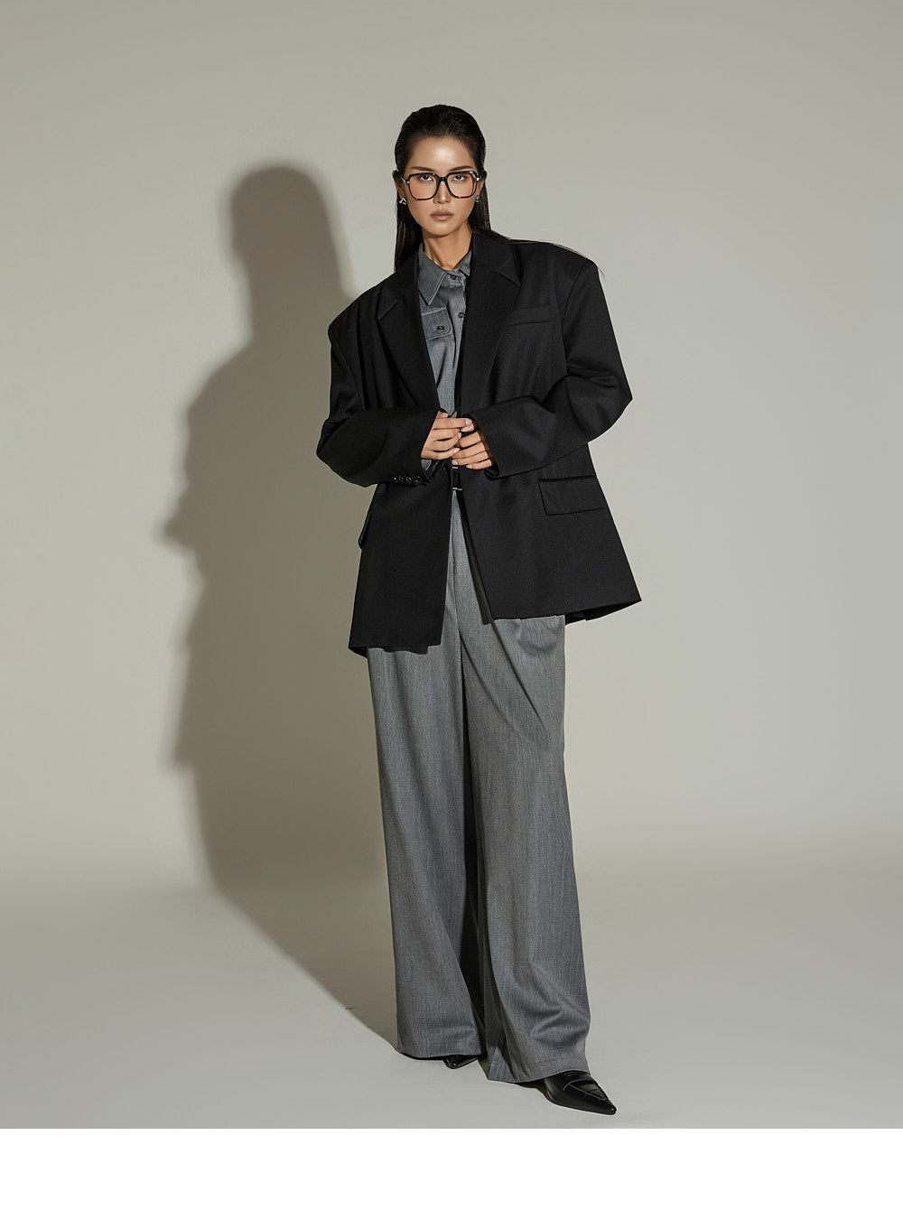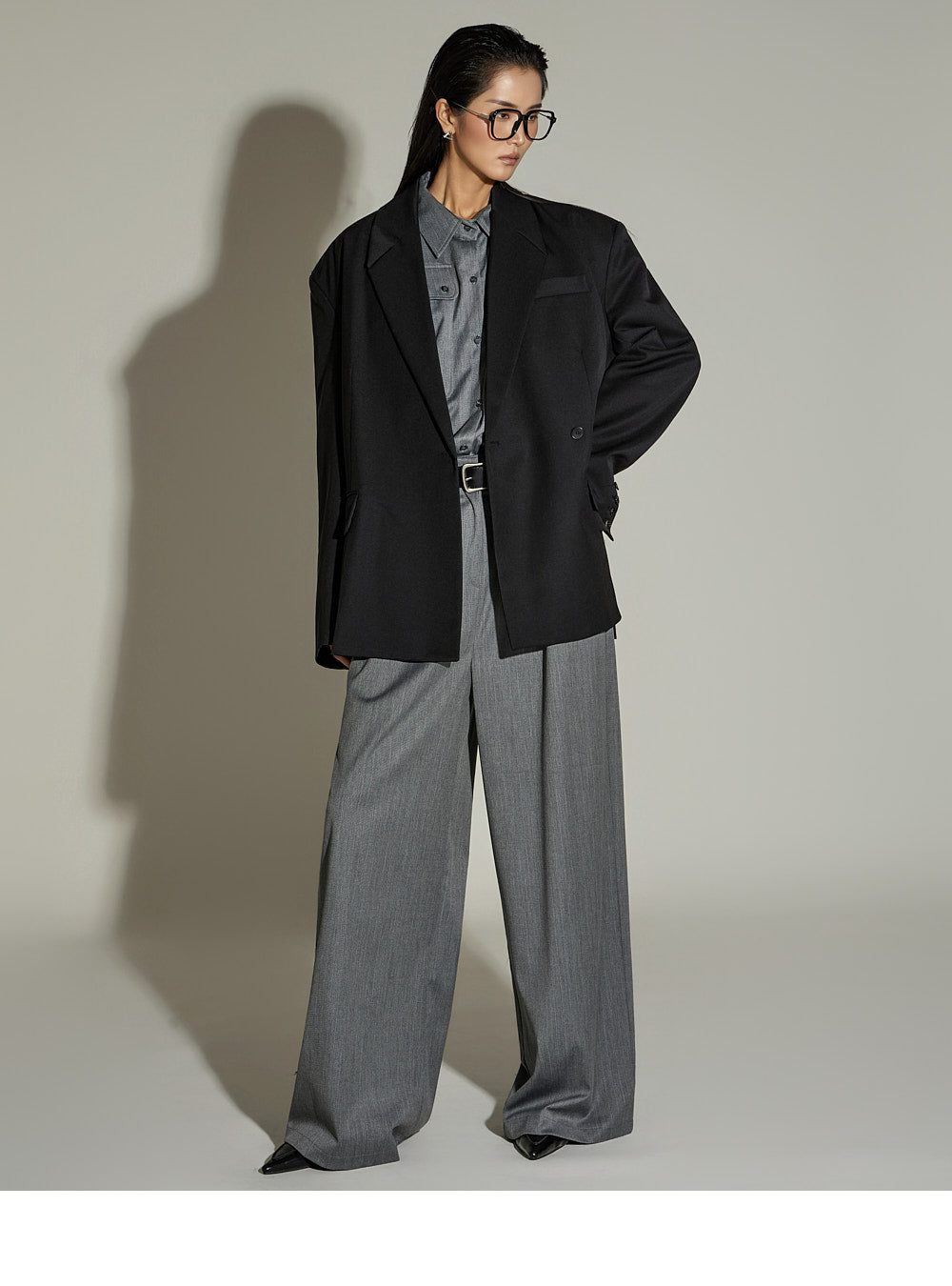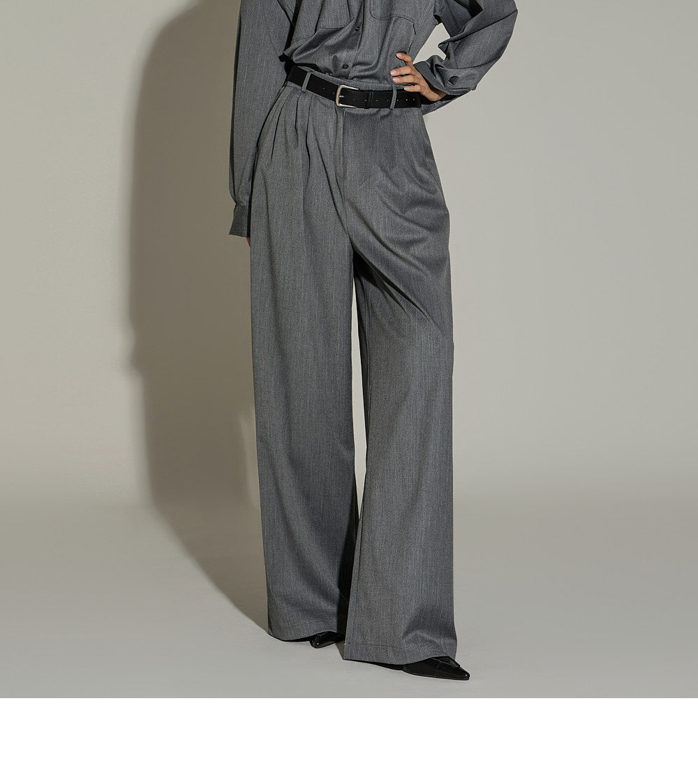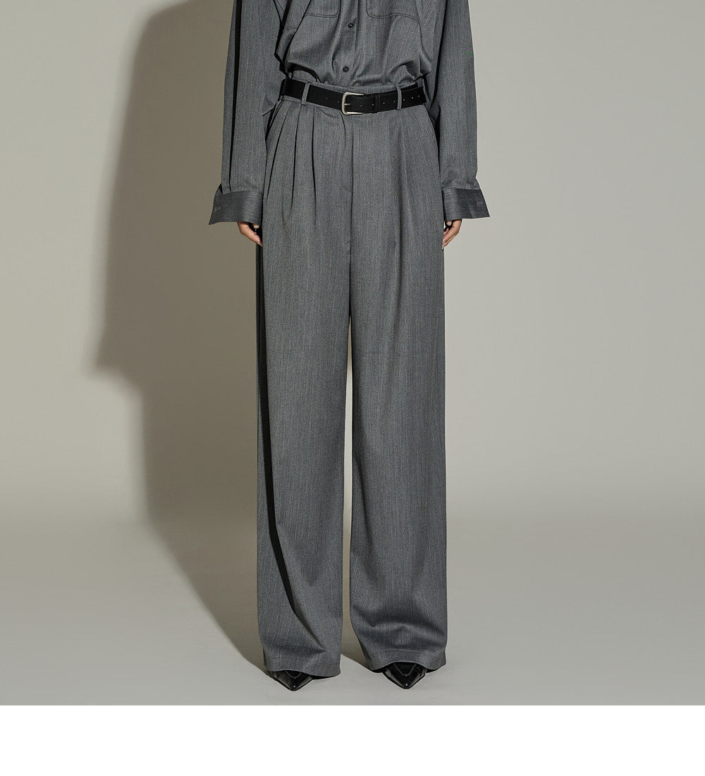 The slacks have a wide fit,