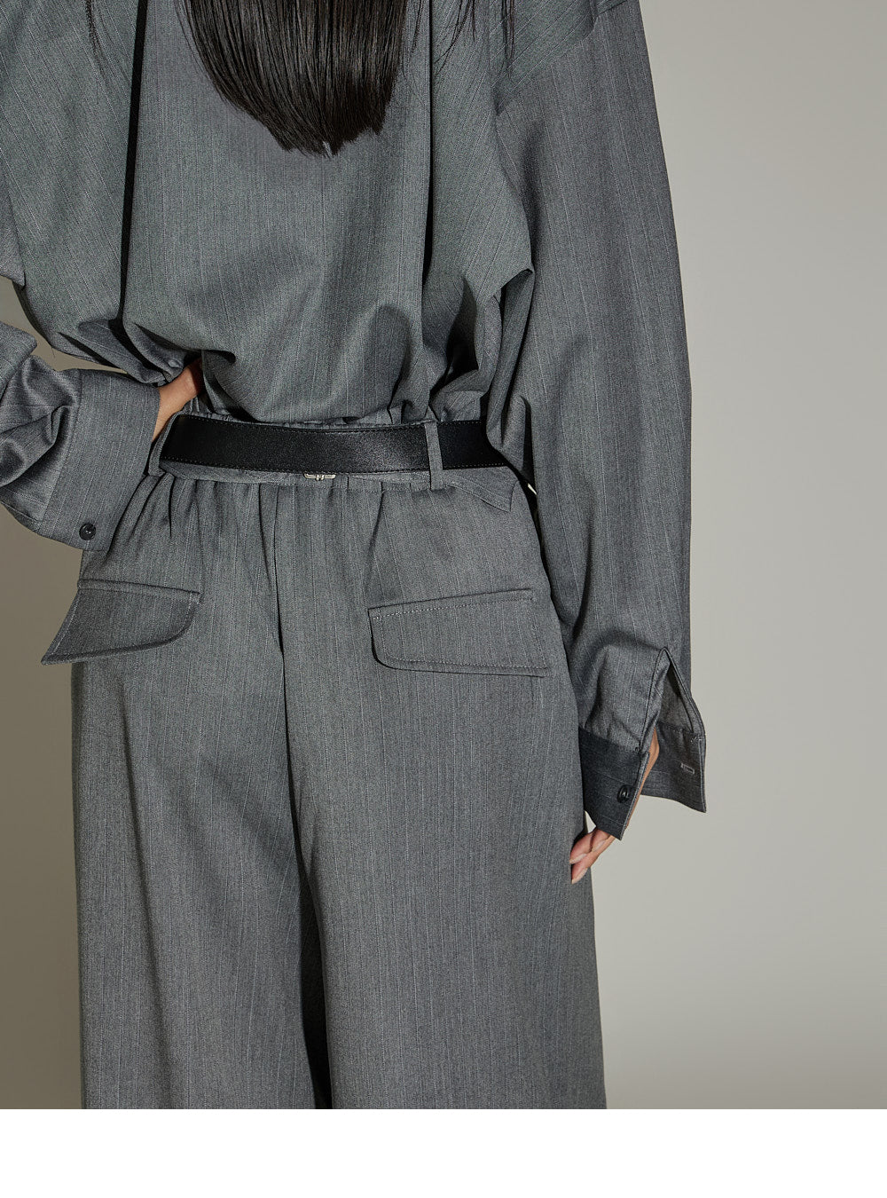 The back waistband and integrated belt detailing