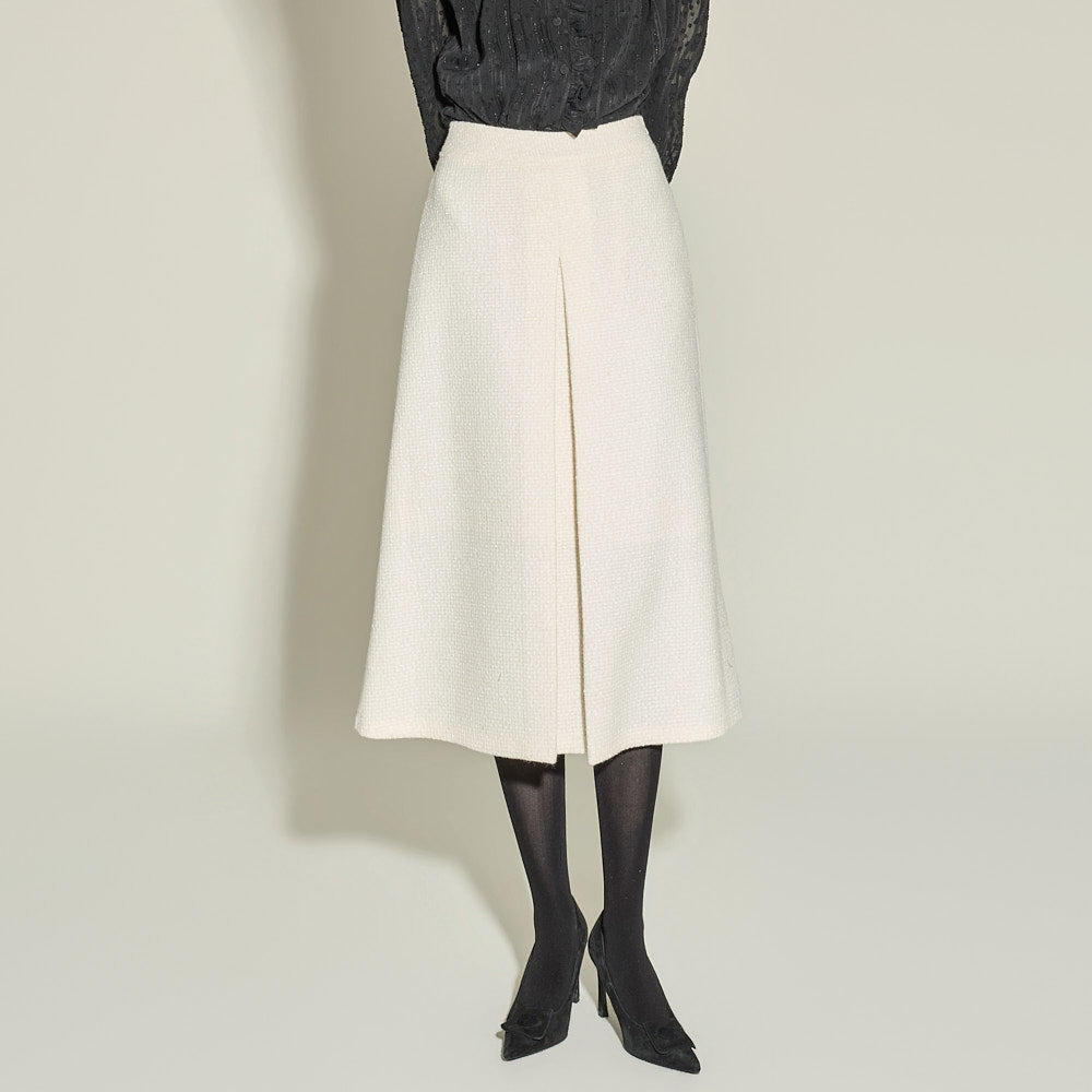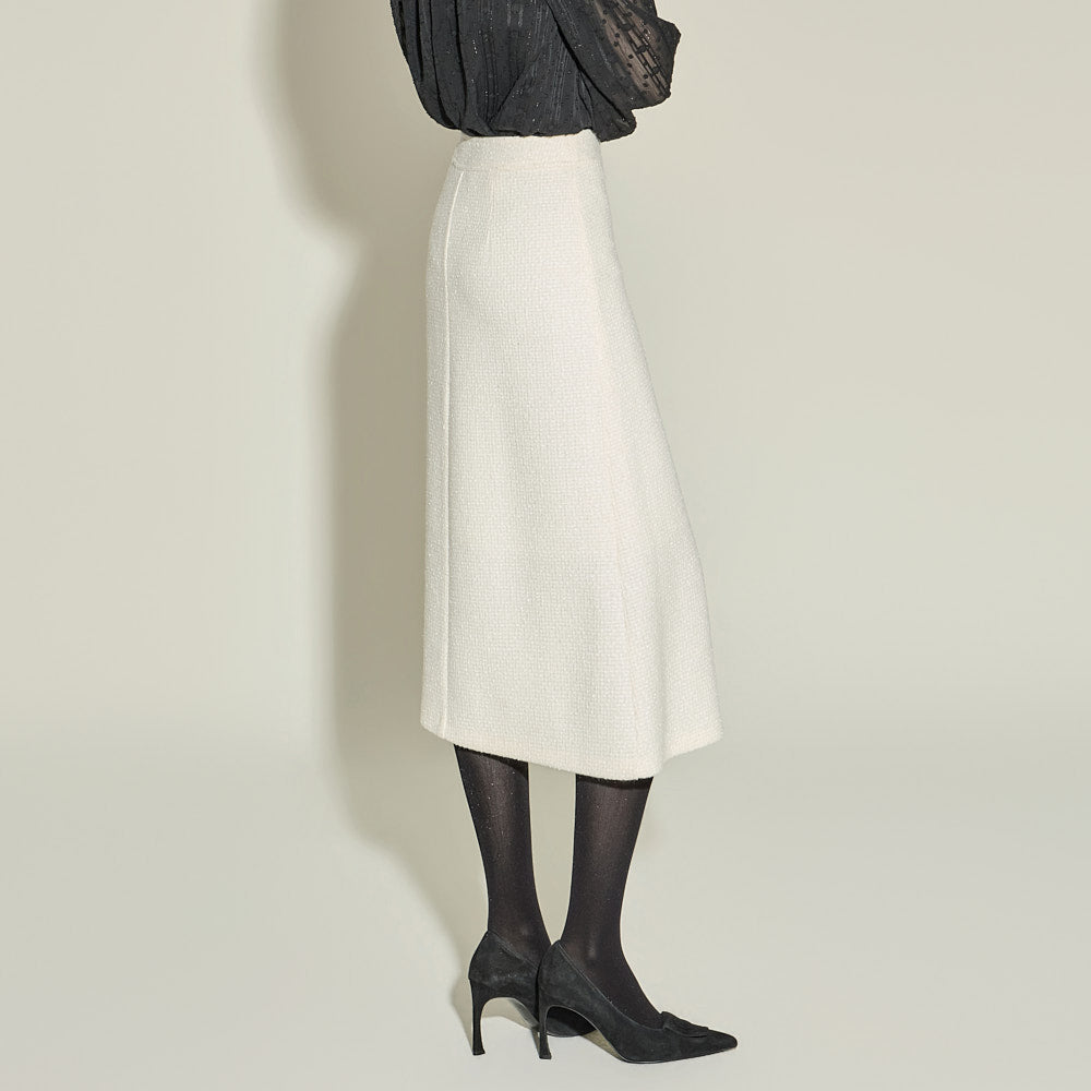 The skirt falls naturally to a midi length,