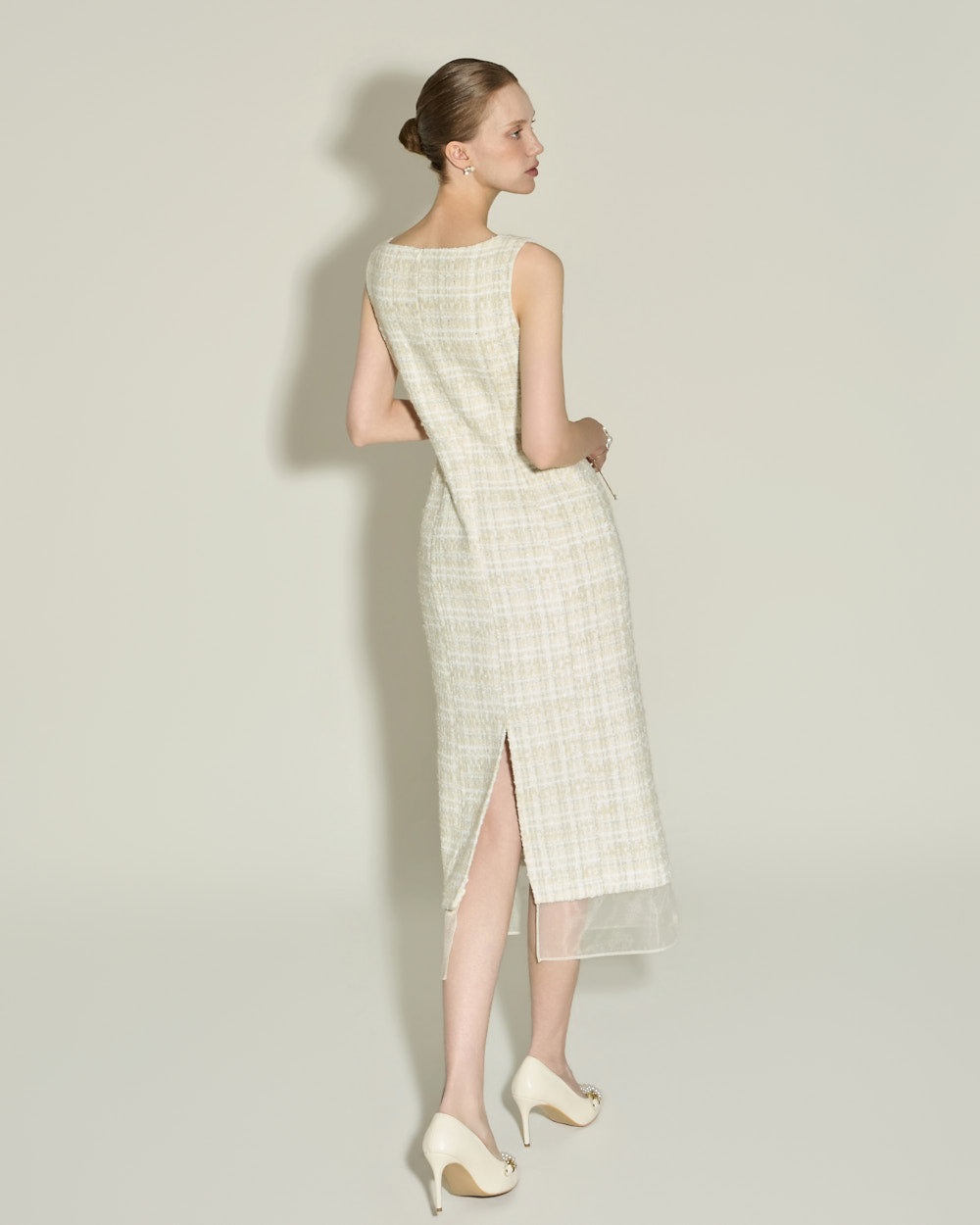 with see-through hem detailing and a back slit,