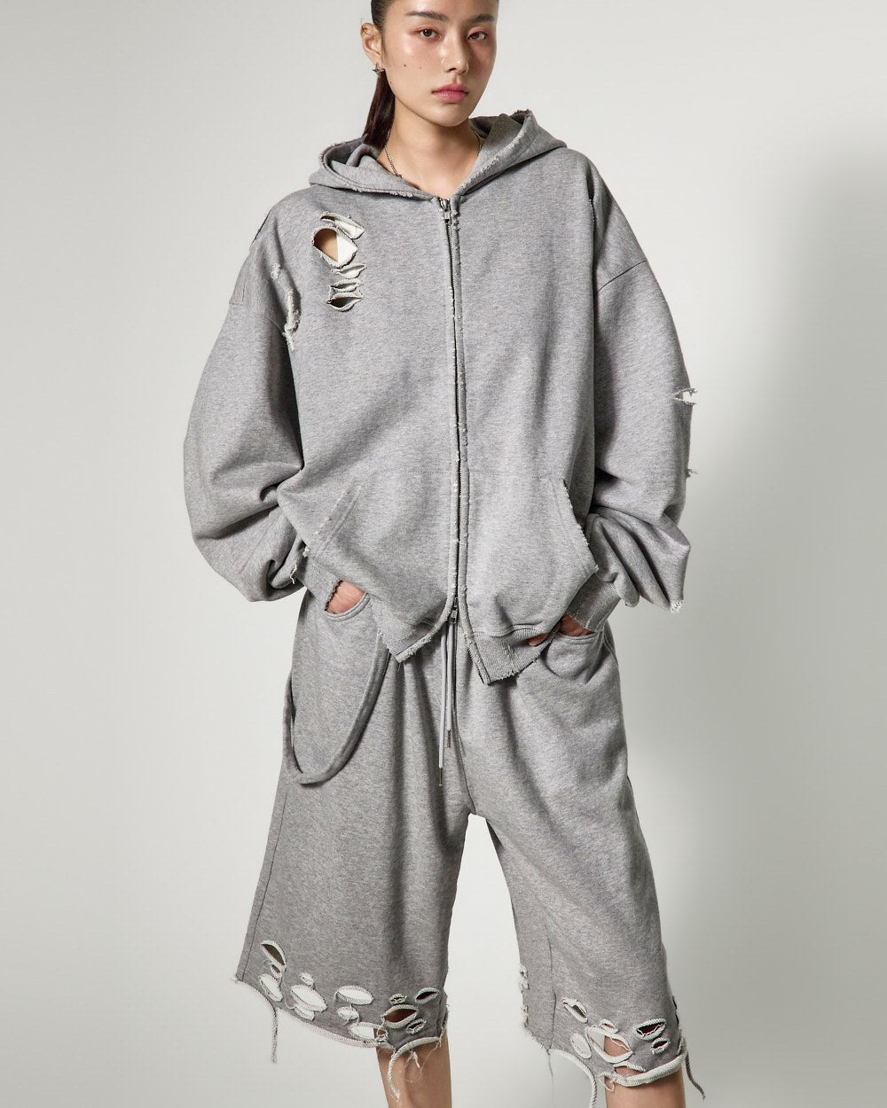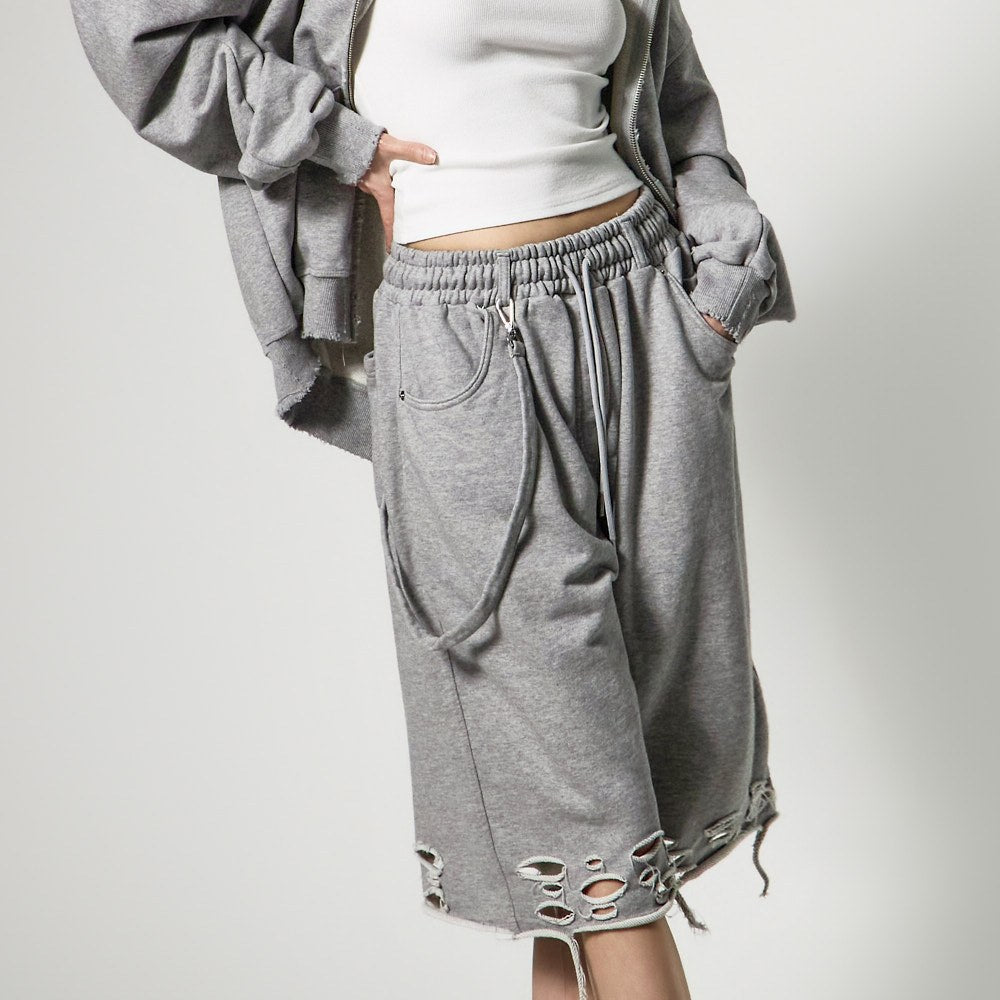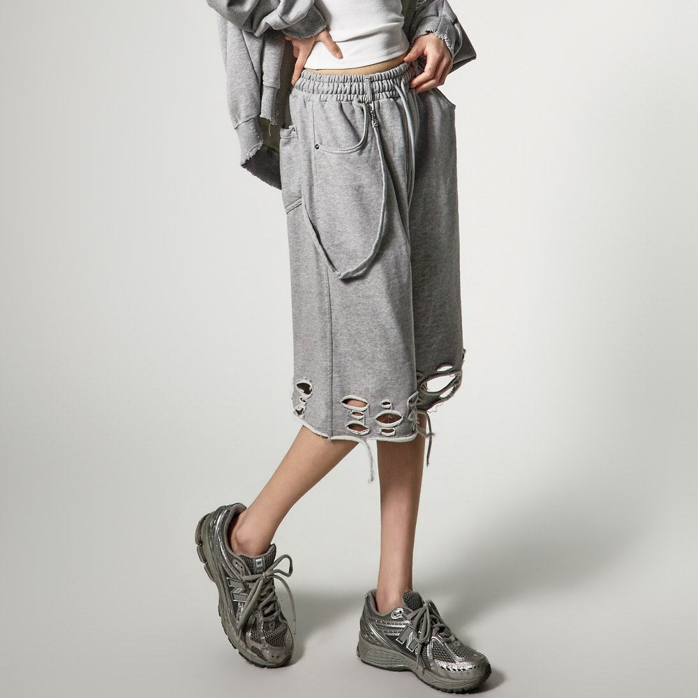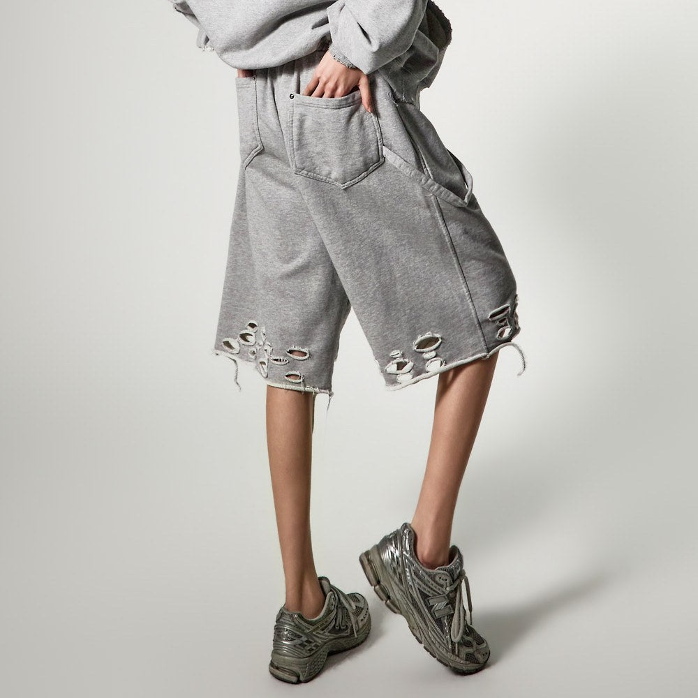 ナチュラルなカッティングとダメージディテールがユニークな魅力を強調し、サイドとバックポケットが実用性を高めます。このアイテムは、単独でスタイリッシュなルックを演出できるだけでなく、