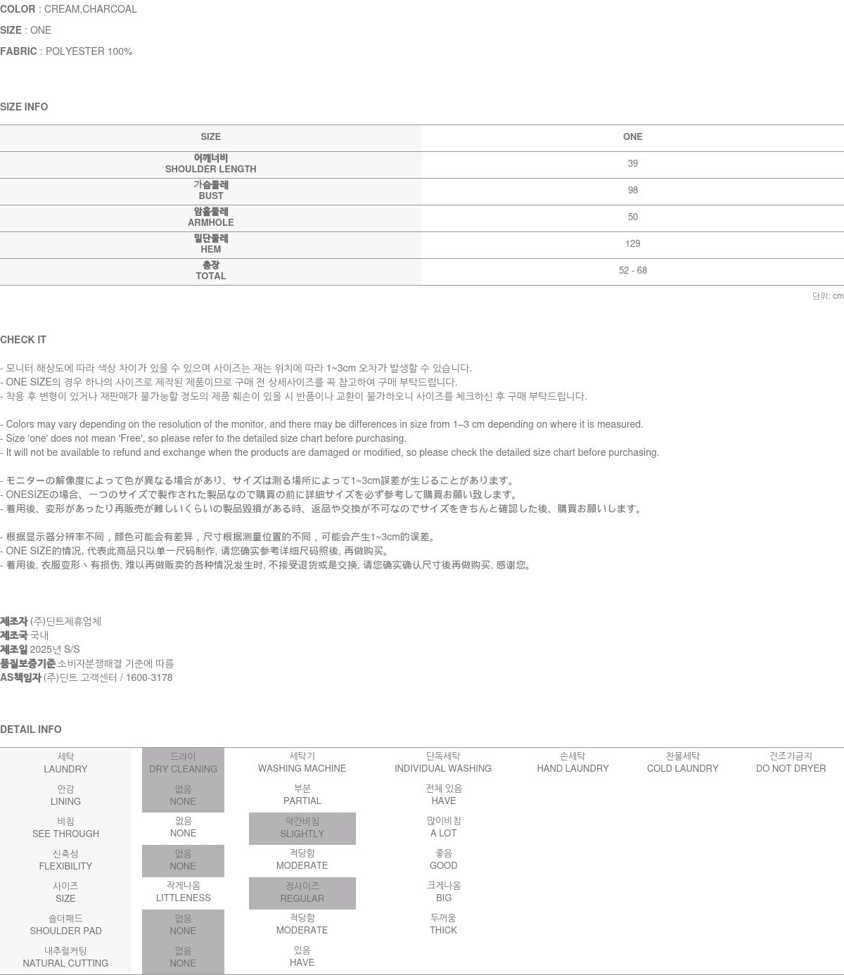 Model is 174CM tall and wears ONE size in CREAM.