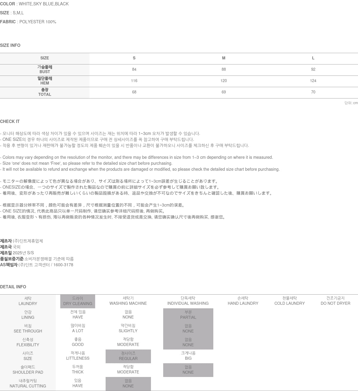 Clothing from DINT Co., Ltd. may become damaged or deformed if machine washed or tumble dried. We strongly recommend following the care instructions provided below.