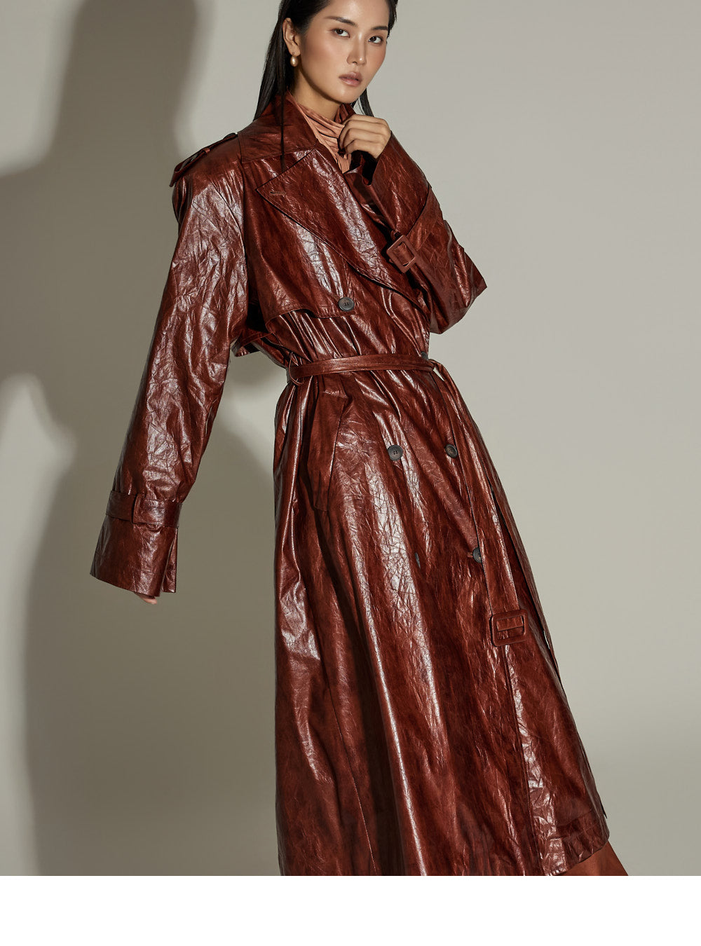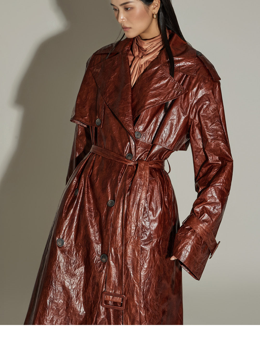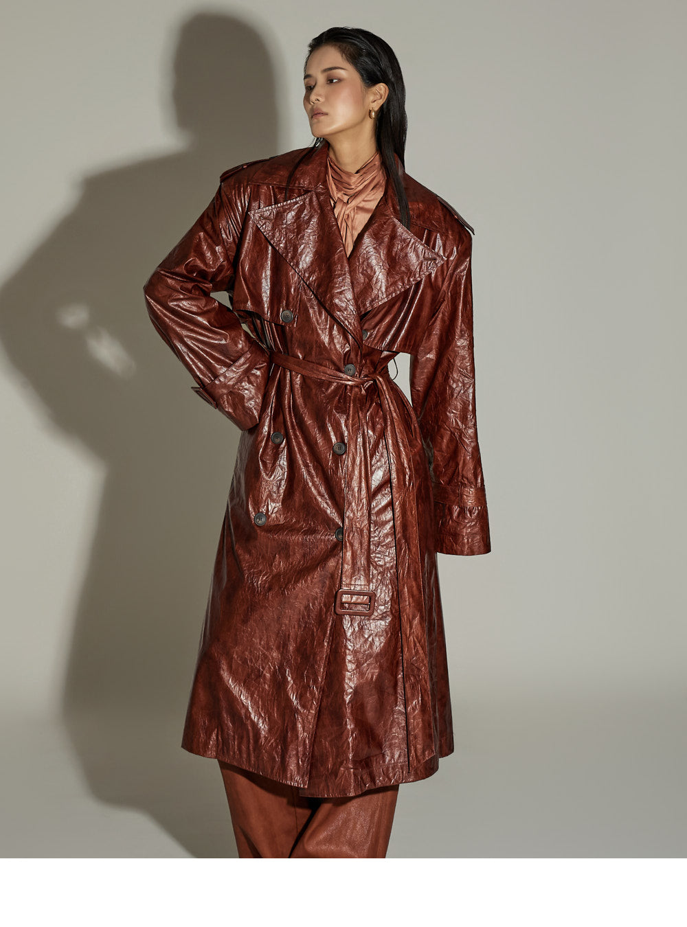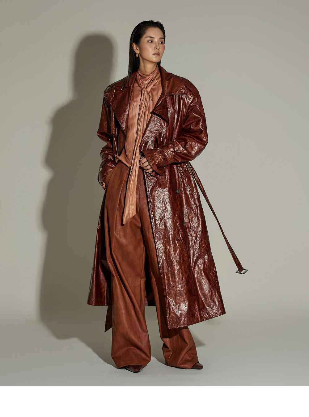 creates a stylish silhouette, and the integrated scarf detail at the neck